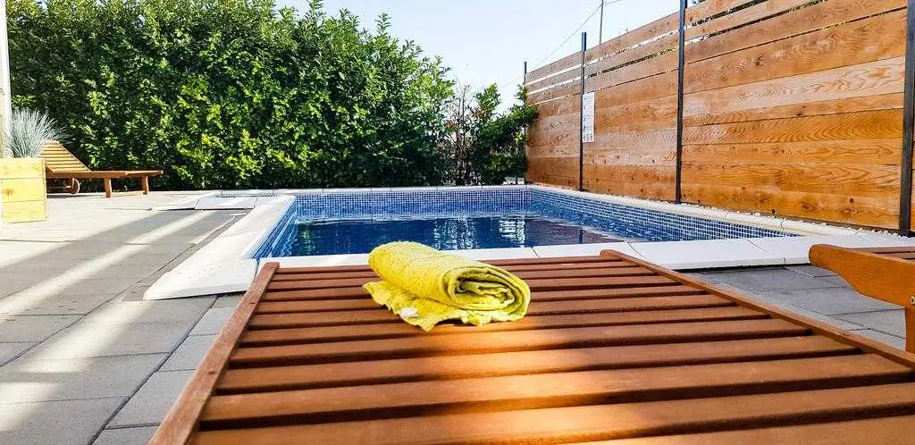 ☀Iznajmljujemo dva apartmana, 5km od Biograda na moru☀ U ponudi apartmani imaju: -Bazen, klime, Wi-Fi, free parking u dvorištu, roštilj-grill, trampolin za djecu Apartmani se nalaze u Kakmi, malenom, mirnom i opuštajućem mjestu, udaljenom samo 5-6 minuta vožnje autom od prekrasnih Biogradskih plaža (pješčane, šljunčane) . Naši apartmani su potpuno uređeni i nude sve što je potrebno da se naši gosti osjećaju dobro i ugodno. APARTMAN 1 - (2+2) - Spavaća soba s bračnim krevetom, kupaonica s tušem, kuhinja i dnevni boravak sa sjedećom garniturom koja se razvlači u ležaj za dvije osobe, TV, internet i balkon 6 m2. APARTMAN 2 - (2+2) - Spavaća soba s bračnim krevetom, spavaća soba s dva kreveta za dvije osobe (odvojeno), kupaonica s tušem, kuhinja i dnevni boravak, TV, internet i balkon 6 m2.U blizini apartmana nalazi se novi zabavni Fun park Mirnovec, Adventure park Biograd i Park prirode Vransko jezero, za one koji vole netaknutu prirodu i uživavaju u pjevu ptica i svježoj vodi. Naše maleno mjesto će te zavoljeti zbog ljudi, ambijenta, položaja, mira i svježeg zraka.