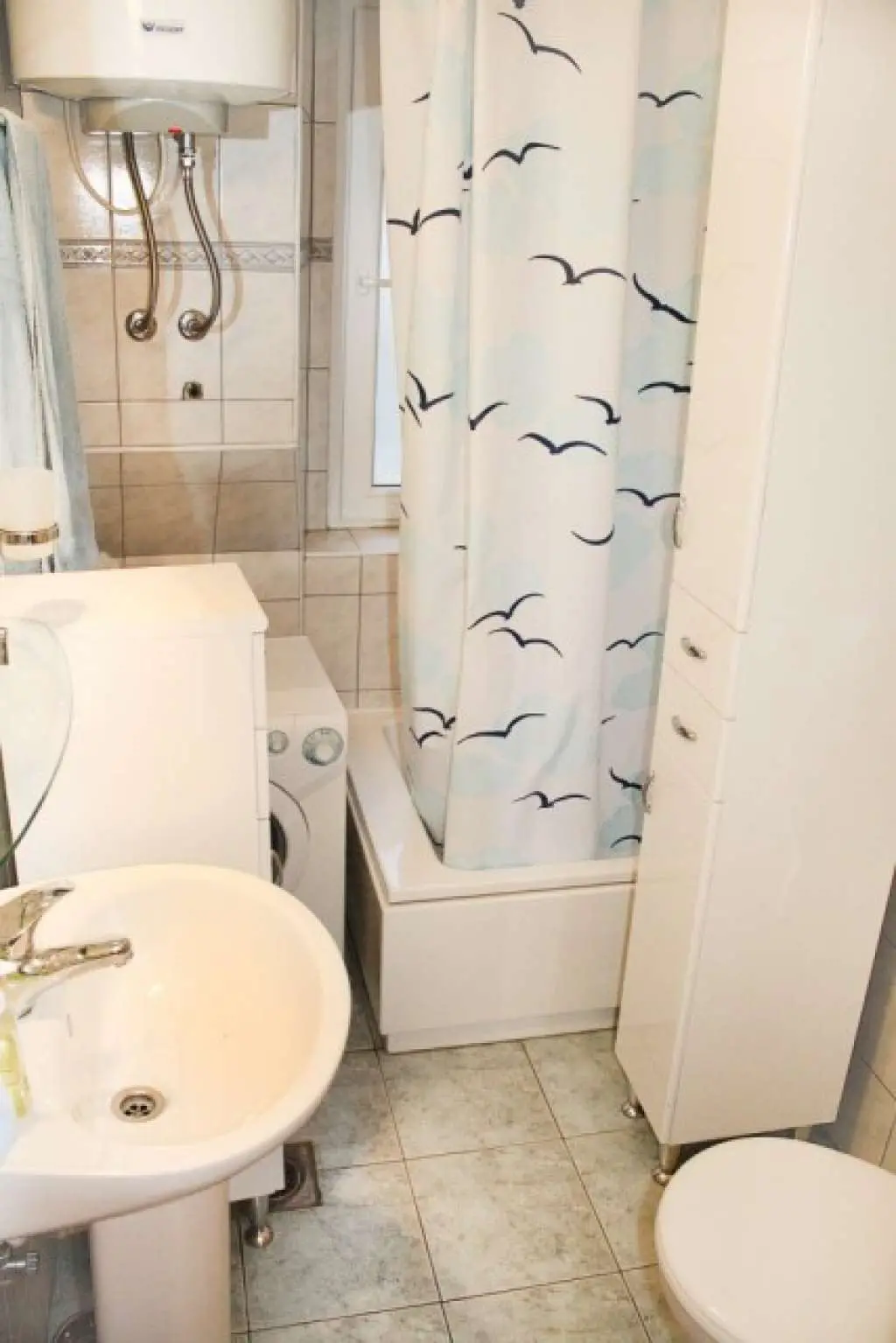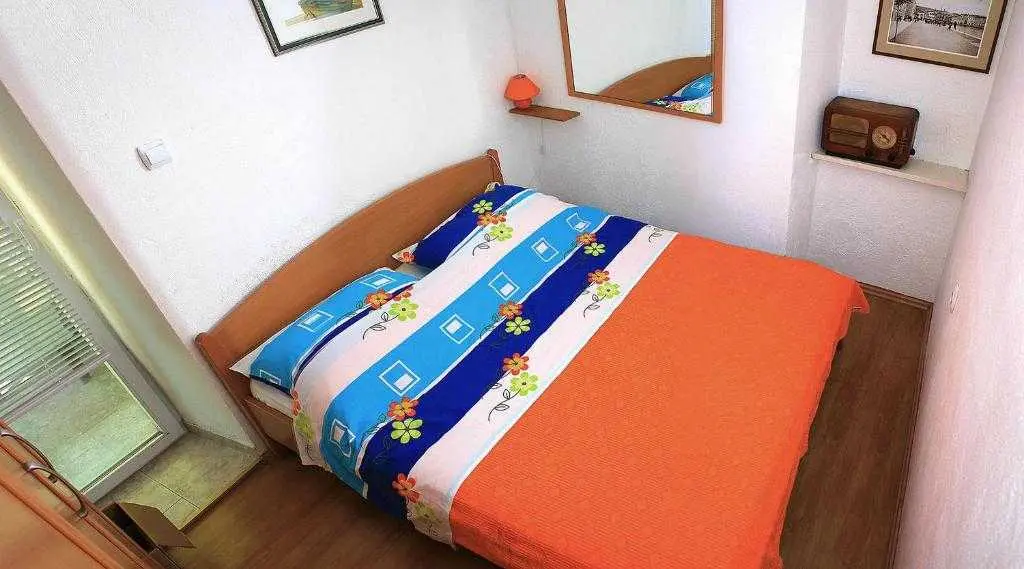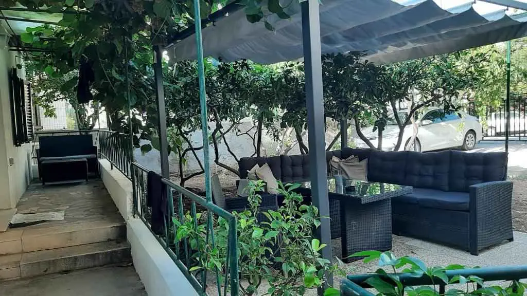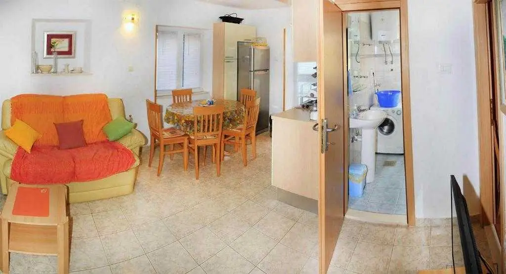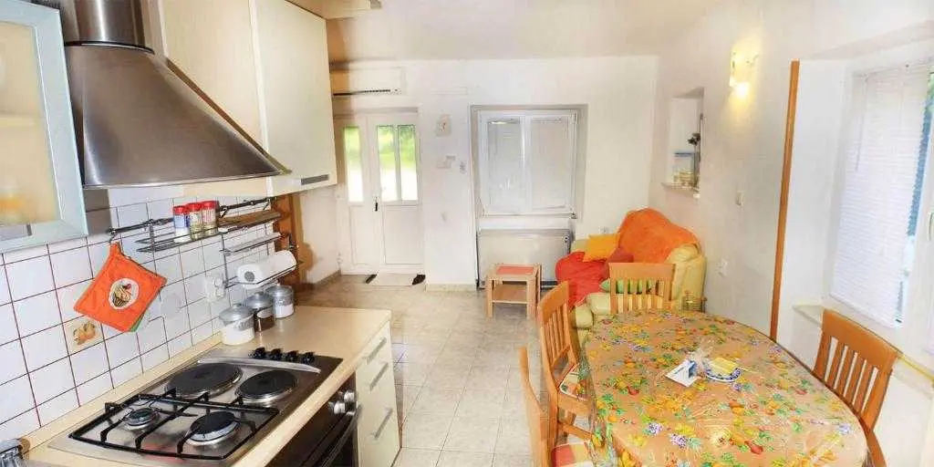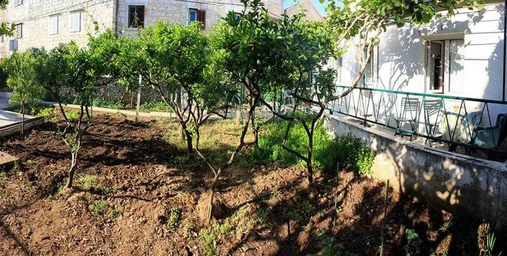 Samostojeca kuca u mirnom dijelu centra, okruzena vrtom, s vlastitim parking mjestom. Kompletno opremljena. Sastoji se od kuhinje s blagavaonom i dnevnim prostorom, kupatila i dvije spavace sobe (max. 4 osobe). Boravisna taksa je ukljucena u cijenu.