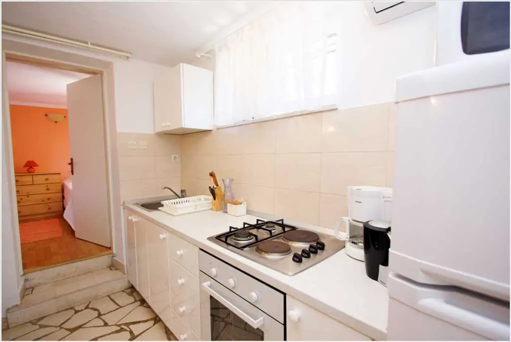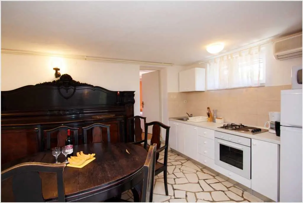 Dragi gosti U Supetru na otoku Bracu glavnom otočkom sjedištu smješten je apartman "MARTINA". Supetar je sa Splitom povezan velikim brojem trajektnih linija. Supetar je glavno turističko središte koje osim bezbroj kvalitetnih restorana i konoba ima i prekrasne pješčane i šljunčane plaže vrlo pogodne za boravak s djecom. U ljetnim mjesecima u Supetru se održavaju svakodnevne animacije, koncerti, izložbe i fešte u kojima naši gosti mogu uživati. Apartman "MARTINA" se nalazi u samom centru Supetra u prizemlju prekrasne obiteljske kuće u mirnom i tihom okruženju, a udaljen od prehrasne šljunčane i pjeskovite plaže samo 10 minuta hoda. Ukoliko želite popiti kavu u jednom od naših kafića ili možda kupiti hranu, voće, povrće ili pojesti neki obrok, za to će vam trebati svega 5 minuta hoda, a ukoliko želite pojesti neki tradicionalni obrok, u našoj ulici samo 2 minute hoda od apartmana nalazi se najbolji restoran. Apartman je veličine 75 m2. Apartman se sastoji od dvije dovrevetne sobe, od kojih jedna ima veliki bračni krevet, a druga dva odvojena kreveta koja se po želji mogu spojiti u jedan. U velikom dnevnom boravku koji je spojen s blagovaonicom i kuhinjom možete uživati na kauču, a u blagovaonici u prekrasnom stilskom namještaju. Kuhinja je kompletno opremljena. U kupaoni se nalazi kada. Iz apartmana izlazite u veliki vrt uređen u dalmatinskom stilu, prepun cvijeća i zelenila. U vrtu se nalazi stol sa 6 stolica, vrt je kompletno ograđen velikom zidom te je skriven od znatiželjnih pogleda a vrlo pogodan za boravak sa djecom. Ukoliko želite koristiti grill možemo Vam ponuditi grill na ugljen, struju ili plin. Isto tako na raspolaganju Vam je praona s perilicom rublja. Apartman posjeduje vlastiti parking, a u cijenu je uključeno korištenje klima uređaja i besplatni internet. U apartmanu također imate muzičku liniju, SAT TV i društvene igre za Vašu djecu. Dozvoljavamo boravak sa kućnim ljubimcima s obzirom da je vlasnik apartmana veterinar.