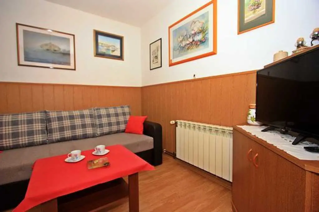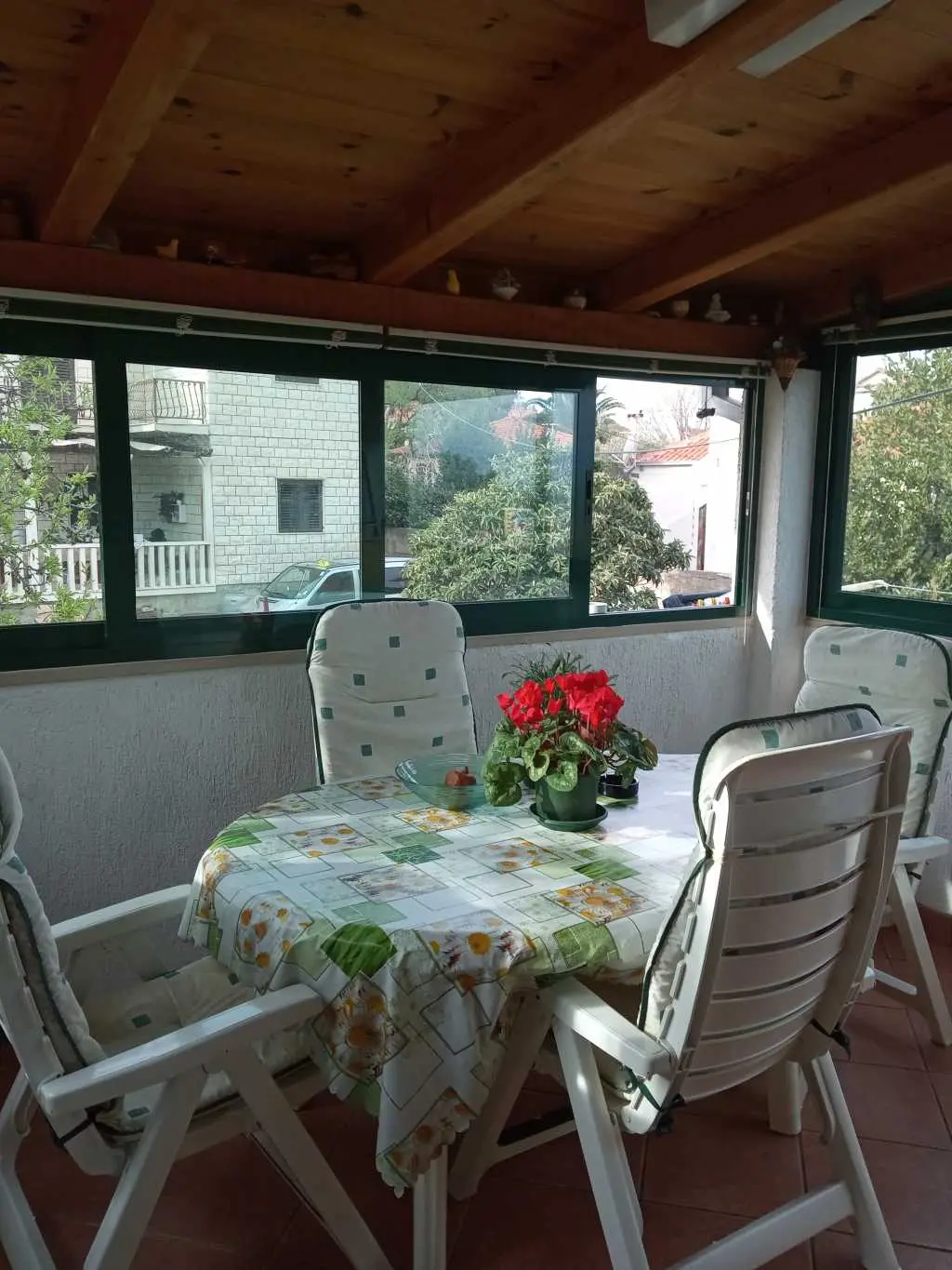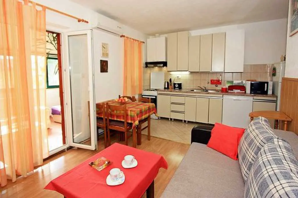 Apartman se nalazi u mirnom dijelu Supetra na otoku Braču u privatnoj kući sa dvorištem. Udaljen od šljunčane plaže sa restoranom picerijom sjenicom i igralištem za djecu 20 m. Sastoji se od 3 spavaće sobe, boravaka, kuhinje i velike ostakljene terase. Oprema: klima, perilica suđa, perilica rublja, mikrovalna dva tv-a,internet WiFi. Natkriveni parking, tuš i roštilj u dvorištu. Udaljen od centra trgovine tržnice ribarnice trajekta banke bolnice autobusnog kolodvora 300 m. Pogledati na youtube APARTMAN RINA SUPETAR.