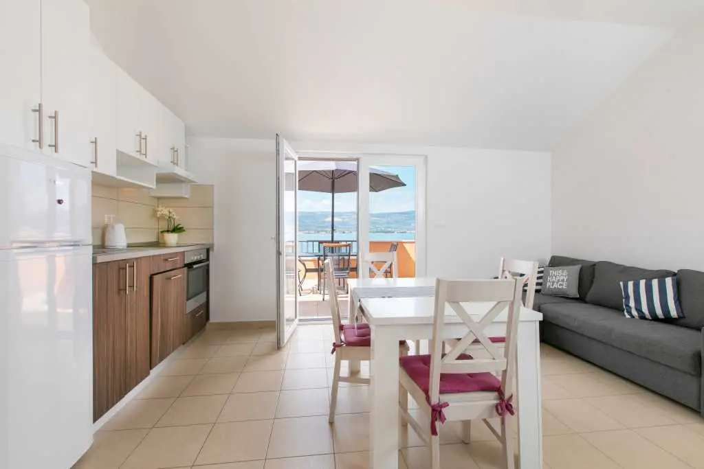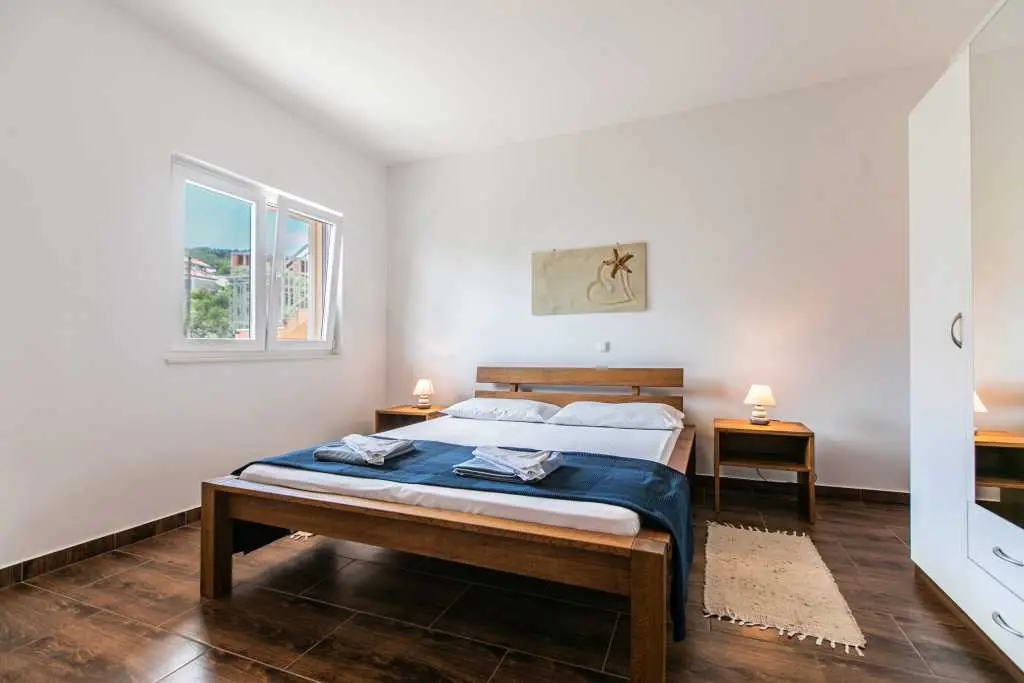 Smješteni smo u prekrasnom malom mjestu Arbanija na otoku Čiovu. Apartmani Bela su u kući koja se nalazi prvi red do mora. U dvorištu se nalazi ljetna kuhinja s kaminom koji su dostupni na korištenje gostima. Apartmani su komforni i suvremeno opremljeni. Apartmani 4+1 se sastoje od dvije spavaće sobe i kauča na razvlačenje u dnevnom boravku. Apartman 2+1, smješten u potkrovlju kuće ima jednu spavaću sobu, te kauč na razvlačenje u dnevnom boravku. Svi apartmani pored kupaonice imaju odvojen mali WC. U svim apartmanima je besplatan bežični pristup internetu. Provedite s nama vaš obiteljski odmor! Dobrodošli na otok Čiovo!