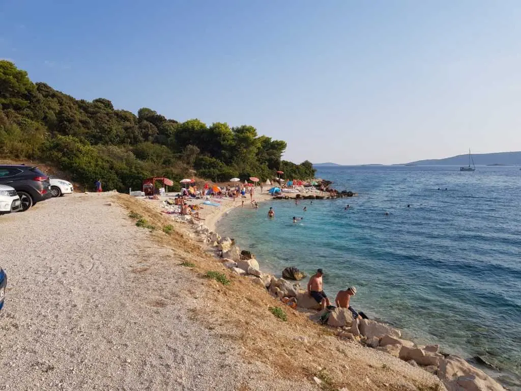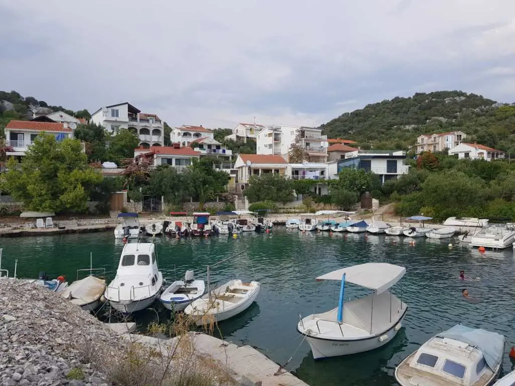 Apartman Okrug Donji blizu Trogira 2+2, prvi red do mora, velika terasa sa pogledom na more, klima, wifi, parking, vanjski tuš u dvorištu, olaža udaljena cca 40 m, mirno mjesto blizu gradića Trogira