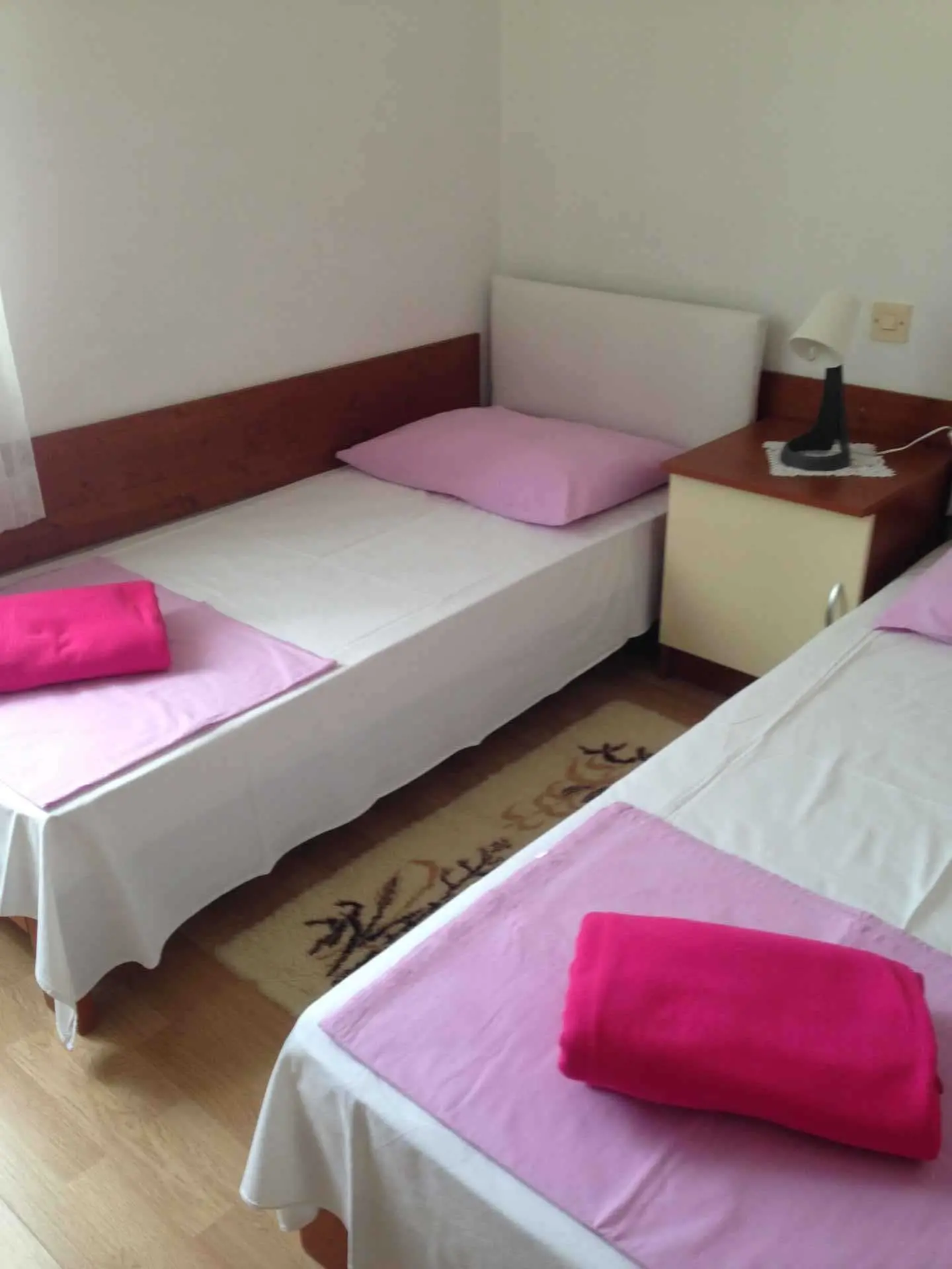 U objektu su 3 dvosobna apartmana. Svi apartmani imaju pogled na more. 2 apartmana su na 1.katu kuće a jedan je u visokom prizemlju. Svaki apartman ima zaseban ulaz. Apartmani na 1. katu imaju balkone. Apartman u prizemlju ima veliku terasu.Klima uređaji u apartmanima.. Parking je u sklopu objekta, nalazi se ispod velike terase i svaki apartman ima svoje parkirno mjesto. Apartmani su kompletno opremljeni. WI-FI je besplatan. Plaža je udaljena od objekta cca 300m a centar grada cca 500m. Dobrodošli!