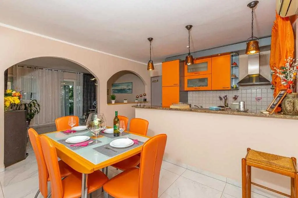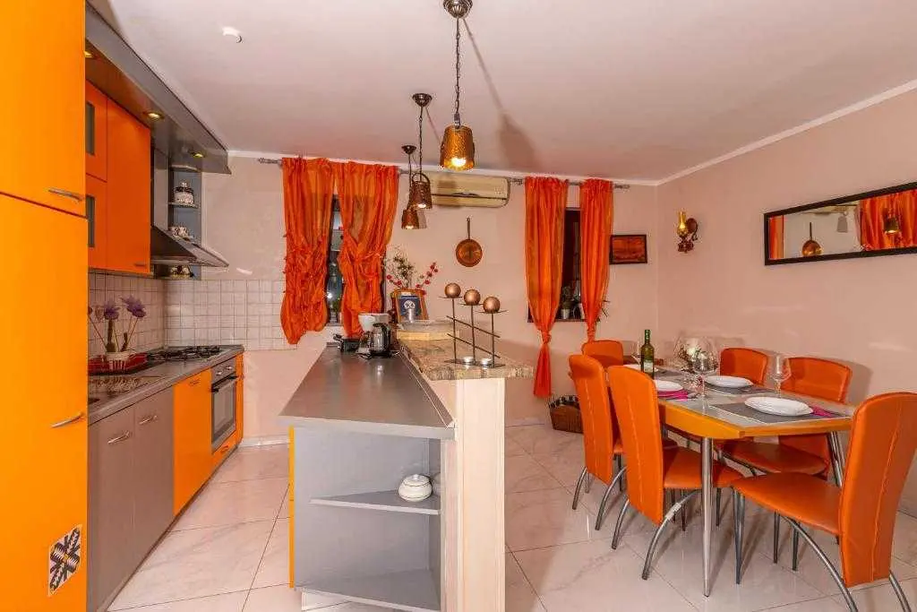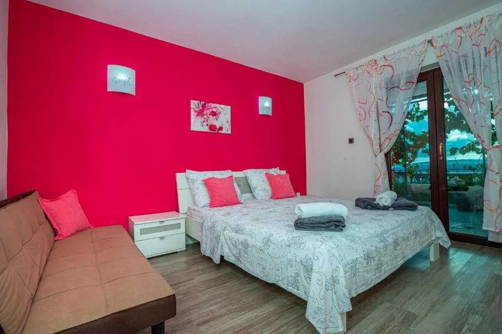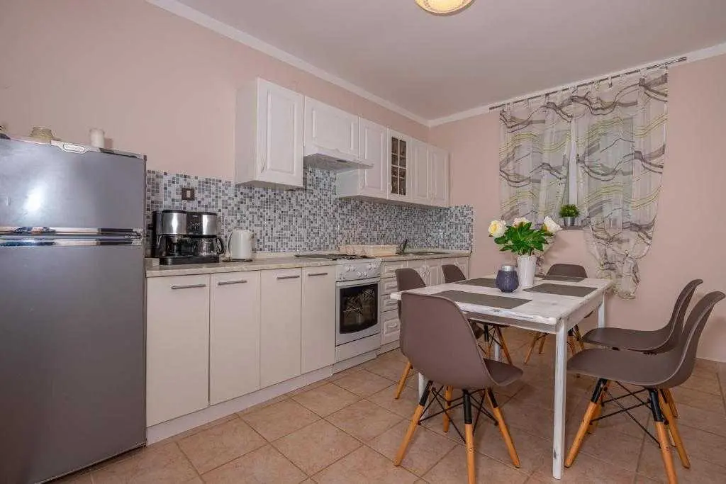 APARTMAN 1. (2-6 osoba) 1 spavaća soba s bračnim krevetom 1 pomoćni ležaj. Dnevni boravak s velikim krevetom 3 metra jedna sofa kuhinja, perilica za suđe, kupaonica sa tušem TV, Wi-Fi, velika terasa, roštilj, klima moru. Pogledaj Apartman 2 (2 + 1 osoba) 1 spavaća soba s bračnim krevetom, pomoćni ležaj za 3. osoba - dijete kuhinja, kupaonica s tušem, terasa, Wi-Fi, klima-uređaj. Pogled na more. Apartman 3 (2 osobe) 1 spavaća soba s bračnim krevetom kuhinja, kupaonica, Wi-fi, terasa