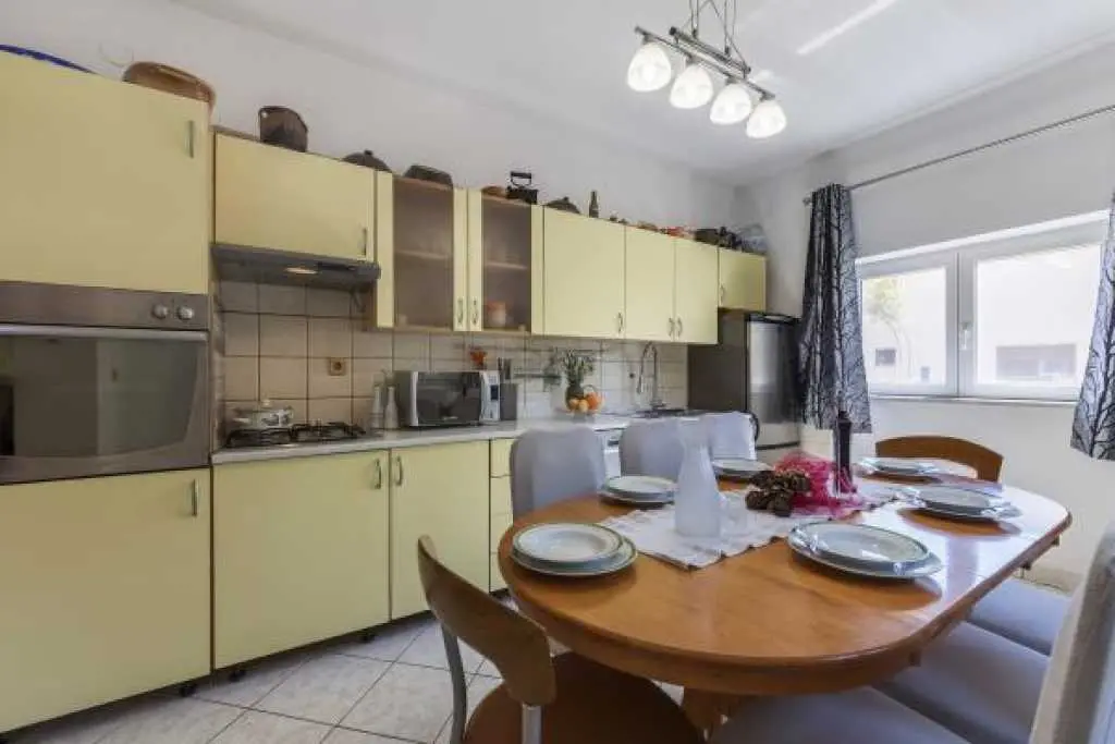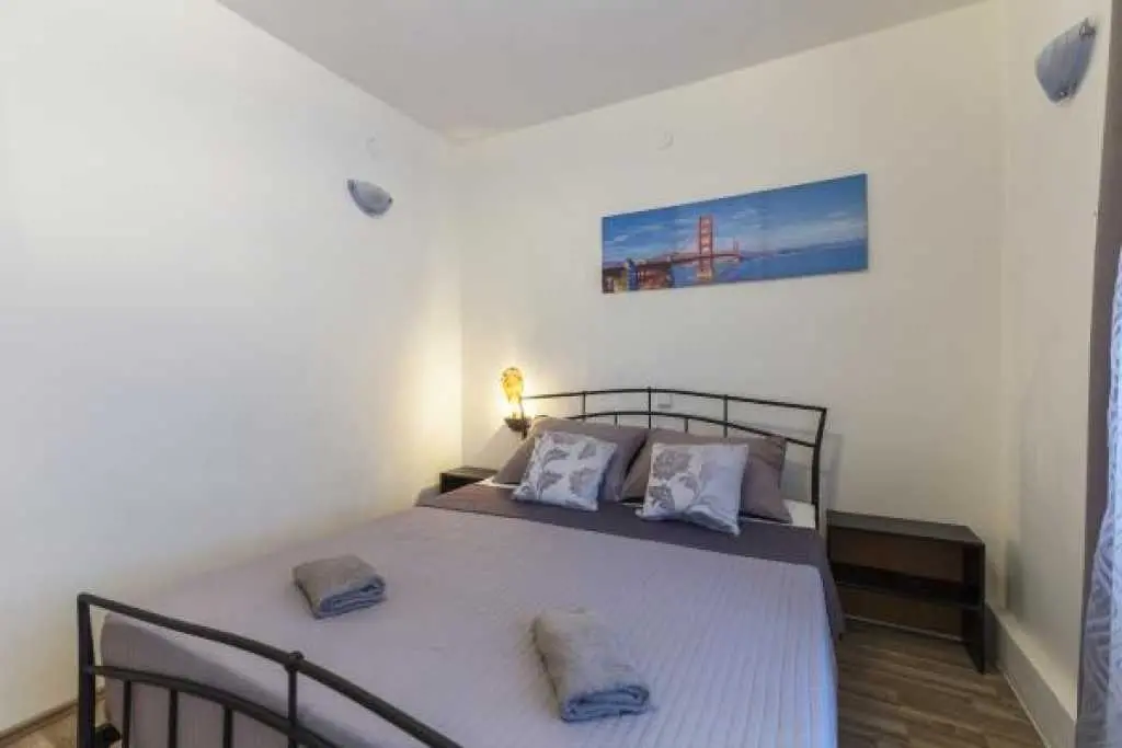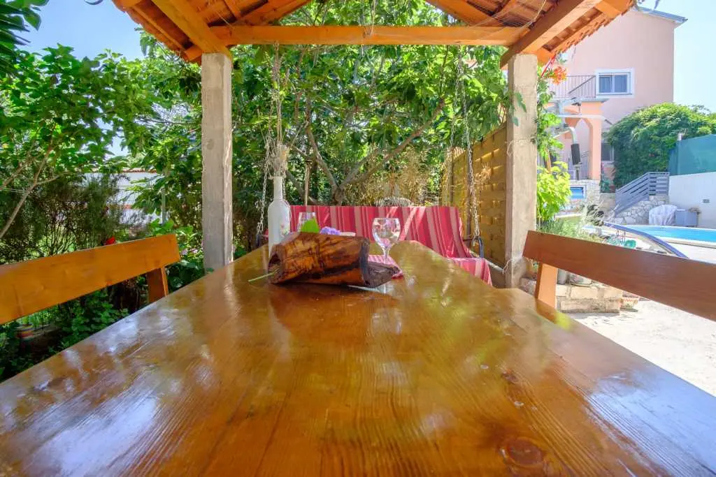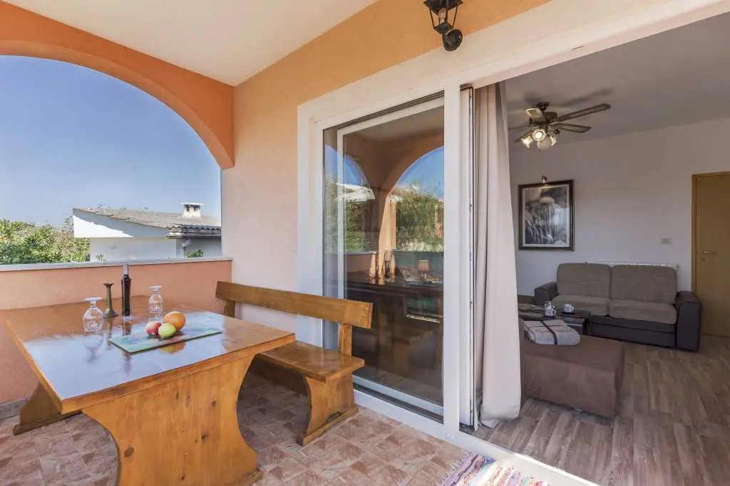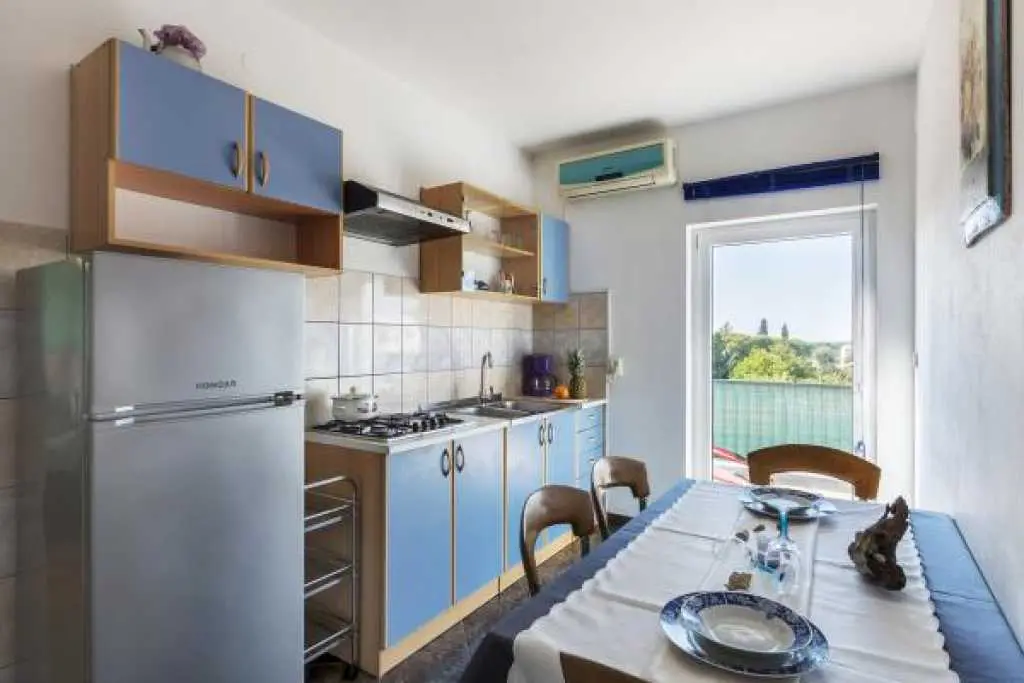 Kuća sa bazenom i okućnicom. Kuća ima tri apartmana, od kojih svaki apartman ima zaseban ulaz .Apartman 1 nalazi se na prvom katu površine 58 m2. Ima veliku terasu te dvije spavaće sobe, kuhinju sa blagovaonicom te kupatilo sa tuš kabinom. Idealno za smještaj 4 odrasle osobe ili obitelj sa dvoje djece, jer ima dvije odvojene spavaće sobe. Apartman 2 nalazi se na prvom katu ima spavaću sobu te kuhinju sa blagovaonicom i dnevnim boravkom. Ukupne površine 45 m2. Apartman 3 nalazi se u prizemlju te ima 103 m2. Ima 3 spavaće sobe, kuhinju sa blagovaonicom te velikim dnevnim boravkom te dva kupatila. Idealno za smještaj 8 osoba (6+2). Kuća ima veliko dvorište sa bazenom koje je na raspolaganju gostima, vanjski roštilj, te veliki trampolin za djecu. Gostima je na raspolaganju i konoba sa unutarnjim roštiljem. Kuća se nalazi u mirnom dijelu naselja Valbandon koji je idealan za obiteljski odmor . Apartmani imaju pogled na bazen i dvorište. U blizini je lijepo uređenih plaža i nacionalnog parka Brijuni .Svi apartmani imaju osigurano parkirno parkirno mjesto u sklopu objekta.
