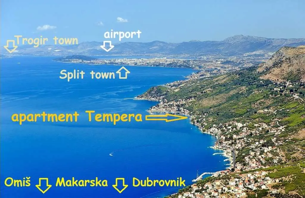 Apartmani Tempera se nalaze u malom mjestu Krilo Jesenice, uz šljunčanu plažu na jadranskoj obalnoj cesti od Dubrovnika i Makarske do Splita. Od povijesnog grada Splita i palače rimskog cara Dioklecijana udaljeno je 16 km, od starog gusarskog grada Omiša 9 km, od Makarske 45 km, a od Dubrovnika 200 km. Apartman se nalazi 27 km od zračne luke i 16 km od luke (za jednodnevni izlet na jadranske otoke, a posebno Hvar). Apartmani se nalaze u domaćoj turističkoj kući, okrenutoj prema moru s panoramskim pogledom na otoke s balkona. Plaža je udaljena 30 metara od apartmana, pa naš smještaj nudi cijeli dan za uživanje u kupanju, ribolovu, ronjenju i drugim sportovima na vodi. Također nudimo besplatno korištenje kajaka svim gostima tijekom boravka u kući. vrlo je pogodan za obitelji s djecom. Parking je osiguran i besplatan. U neposrednoj blizini apartmana nalazi se tržnica, restoran, caffe bar, bar na plaži i autobusna stanica. Kuhinja je opremljena svim potrebnim aparatima, prostran dnevni boravak u kojem se nalazi sofa. Split i Omiš nude brojne mogućnosti za vrhunsku zabavu i mnoštvo kvalitetnih restorana u kojima možete kušati i uživati u domaćoj hrani. Također od tamo možete rezervirati mnogo različitih jednodnevnih izleta na otoke. Ako ste više zainteresirani za sportske aktivnosti, onda možete uživati u kanjonu rijeke Cetine s brojnim mogućnostima kao što su rafting, zip line i canyoning. Rafting traje oko 4-5 sati. Sudjelovati mogu odrasli svih dobi i djeca starija od 8 godina. Oko 65 kilometara od apartmana nalazi se Nacionalni park Krka, koji je jedan od najljepših i najatraktivnijih u Europi. Porez je uključen u cijenu. Svaki gost dobiva besplatno piće dobrodošlice i osmijeh kako bi vaš odmor bio savršen. Dobrodošli!