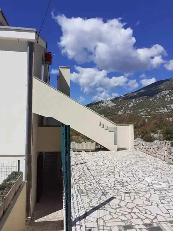 Prostran apartman suvremeno opremljen u mirnom predjelu Ribarice u neposrednoj blizini Karlobaga sa pogledom na Jadransko more s jedne strane, te na planinu Velebit s druge strane. Pozicija apartmana pruža uživanje u odmoru u kristalno čistom moru i zraku koji je između mora i planine idealan za ljude koji imaju teškoće sa dišnim tegobama. Mirno okruženje pruža odlične uvjete za odmor uz upijanje sunčevih zraka i izmicanje od svakodnevne vreve. Objekt se nalazi 3 minute hoda privatnom stazom do mora i plaže. Apartman se prostire na 104 m2, u kojima sadrži dvije spavaće sobe sa po 2 kreveta, prostranu kuhinju s blagavaonom, prostrani dnevni boravak sa dva pomoćna ležaja, dvije kupaonice, dva hodnika i prostranu terasu s pogledom na more. Apartmanu pripadaju dva parkirna mjesta. Apartman je klimatiziran s dva klima uređaja. Spoj mora i planine pružaju mogućnosti plivanja, ronjenja, najma brodice za obilazak okolnih plaža i uvala, planinarenje, bicikliranje i šetnju šetnicom uz more. Kod rezervacije apartmana potrebno je uplatiti 30% ukupne cijene. Završno čišćenje se naplaćuje 10 €. Za boravak 1-4 dana cijena se uvećava za 20%. Check in: 14:00 h Check out: 10:00 h Boravišna pristojba je uključena u cijenu. Za otkazivanje dva mjeseca prije termina - povrat akontacije (rezervacije) u cijelosti. Za otkazivanje unutar dva mjeseca prije termina - nema povrata akontacije (rezervacije). 30% akontacije se uplaćuje na račun, a ostali iznos se plaća po dolasku. Vrsta plaže: Šljunčana, Betonska, Stjenovita. U cijenu je uključeno piće dobrodošlice, korištenje ležaljki, korištenje roštilja. Mogućnost posudbe opreme za pecanje.