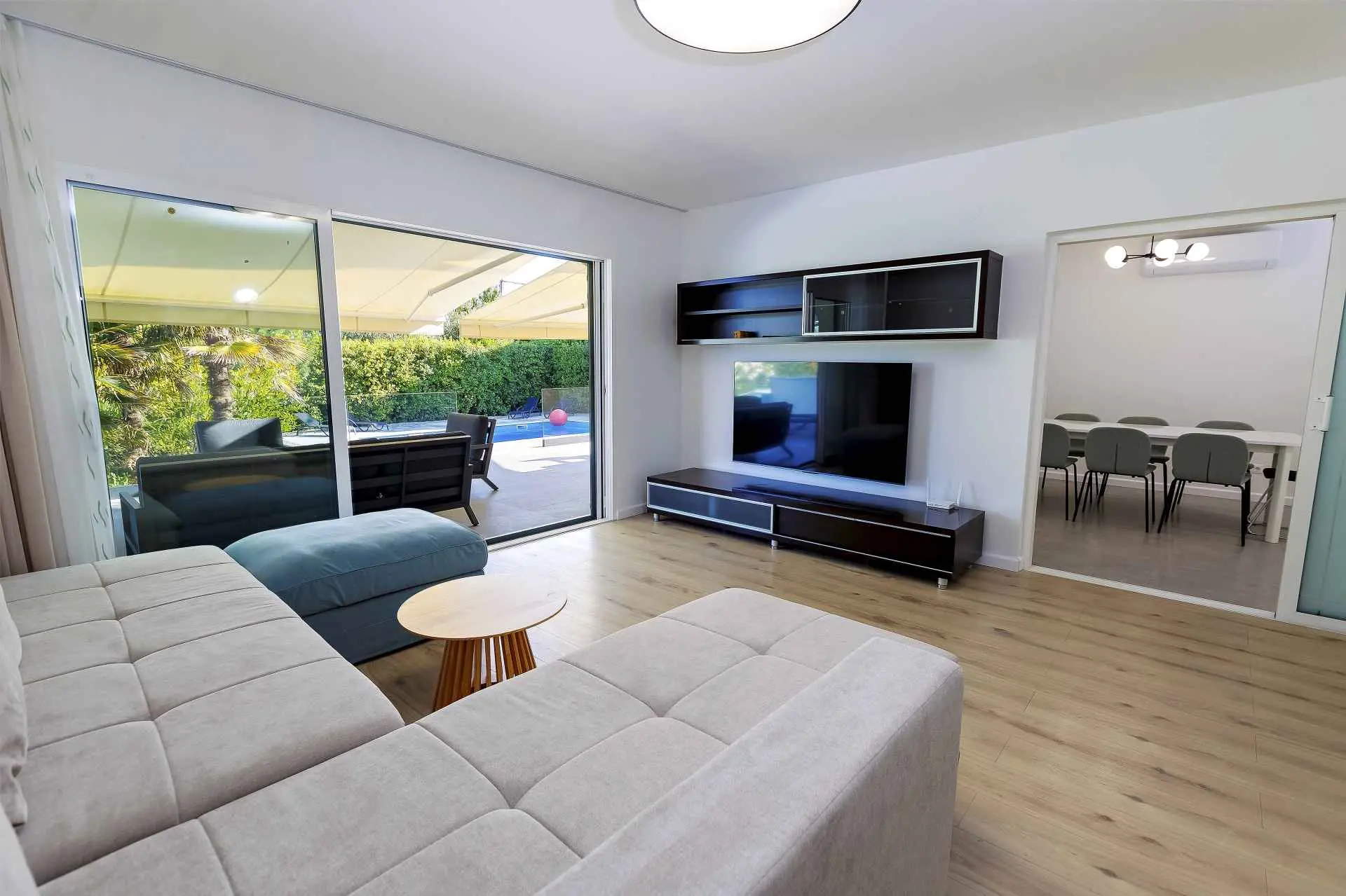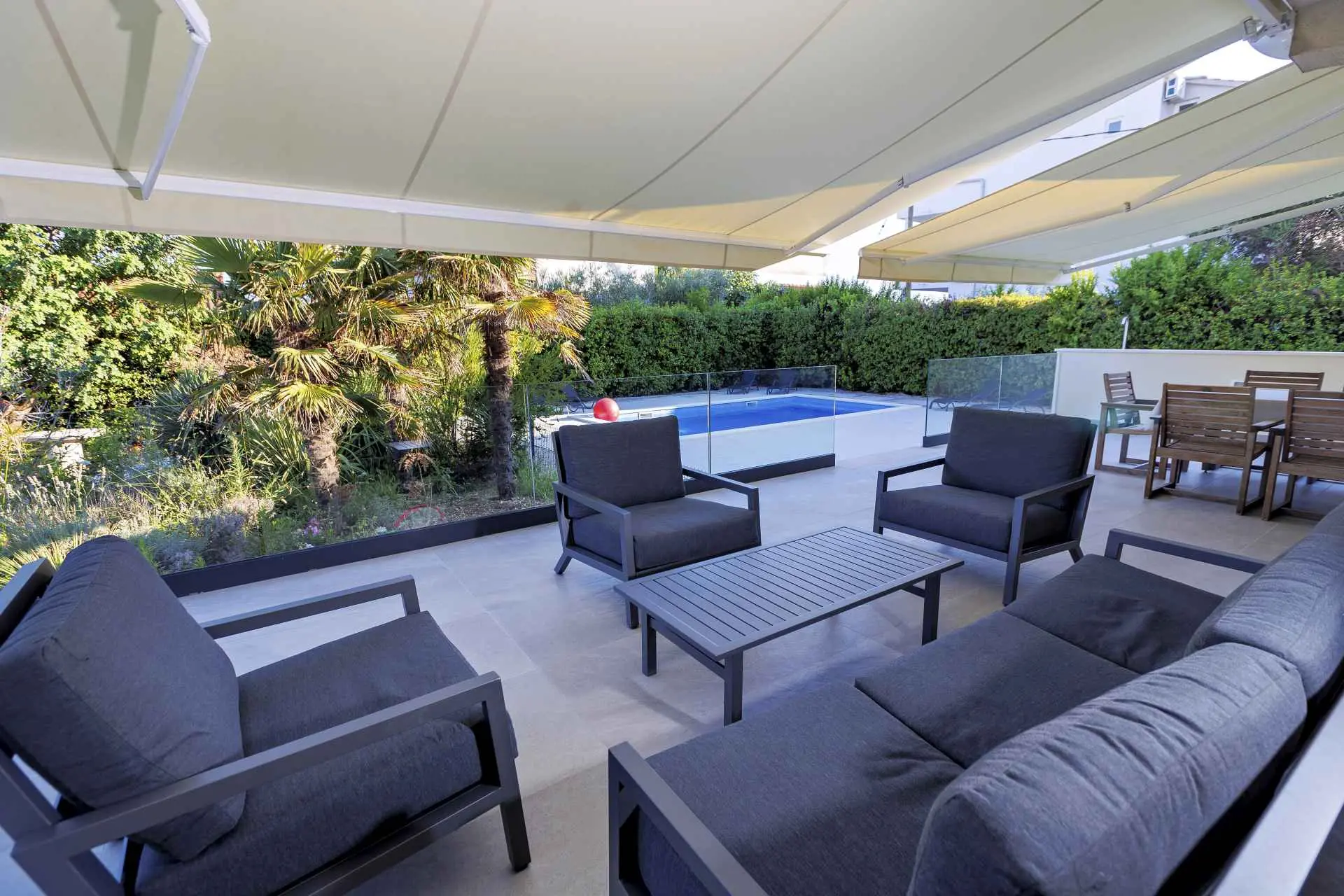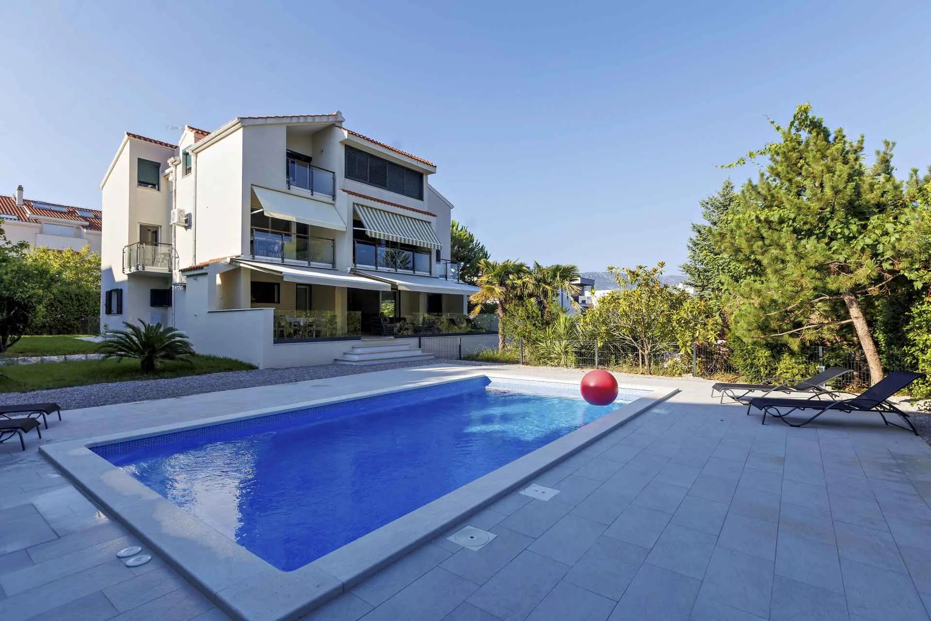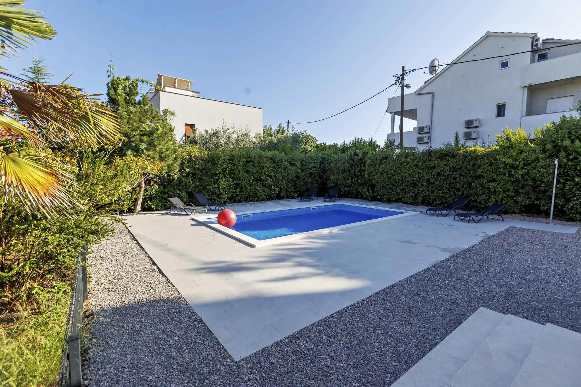 Privatni bazen, terasa, kraj mora, besplatni parking, TV, 3 sobe, 2 wc-a, kuhinja, hladnjak, mikrovalna, pećnica, spaher, perilica za suđe, perilica za robu, pomoćni ležaj, vrtni tuš, privatnost, sredena okućnica, besplatni WiFi, programi na svim jezicima, kuhalo, aparat za kavu, klima u svim prostorijama