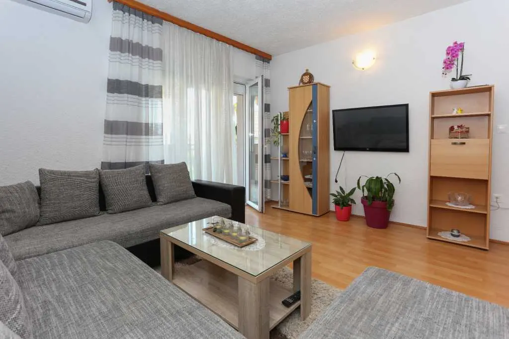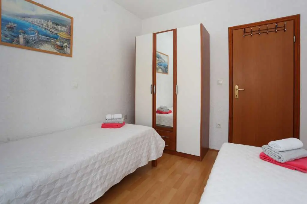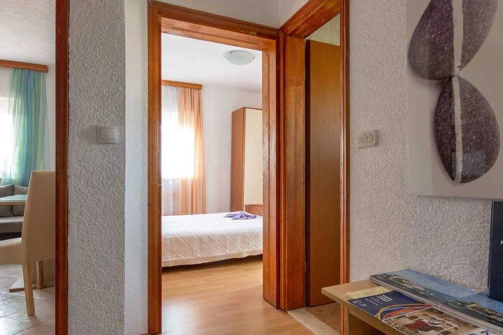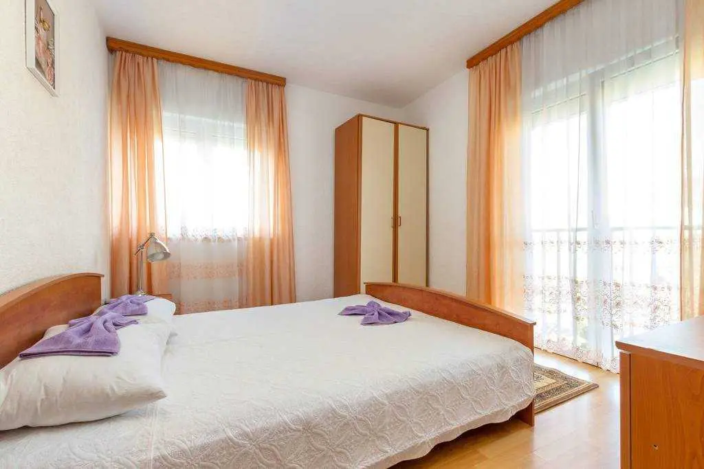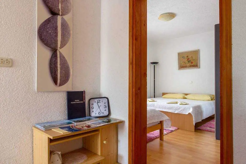 Veľmi milí domáci...ochotne nás vyzdvihli pri príchode na autobusovej stanici v Trogire a pri odchode odviezli na vlakovú stanicu. Po celý čas sa k nám správali ako k rodinným priateľom. Jediným drobným problémom bolo, že cestu k moru komplikuje hustá zástavba ... Uličky pomedzi apartmány sú často slepé