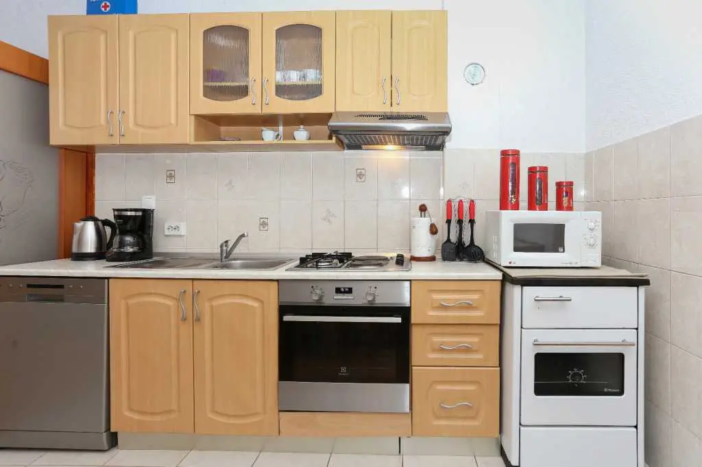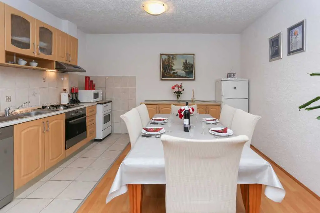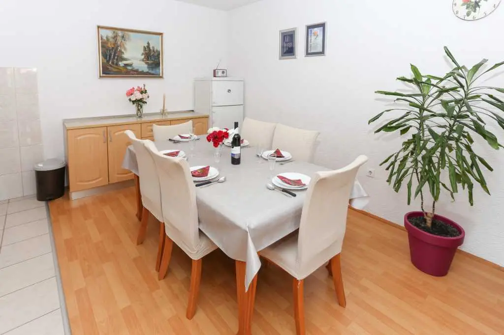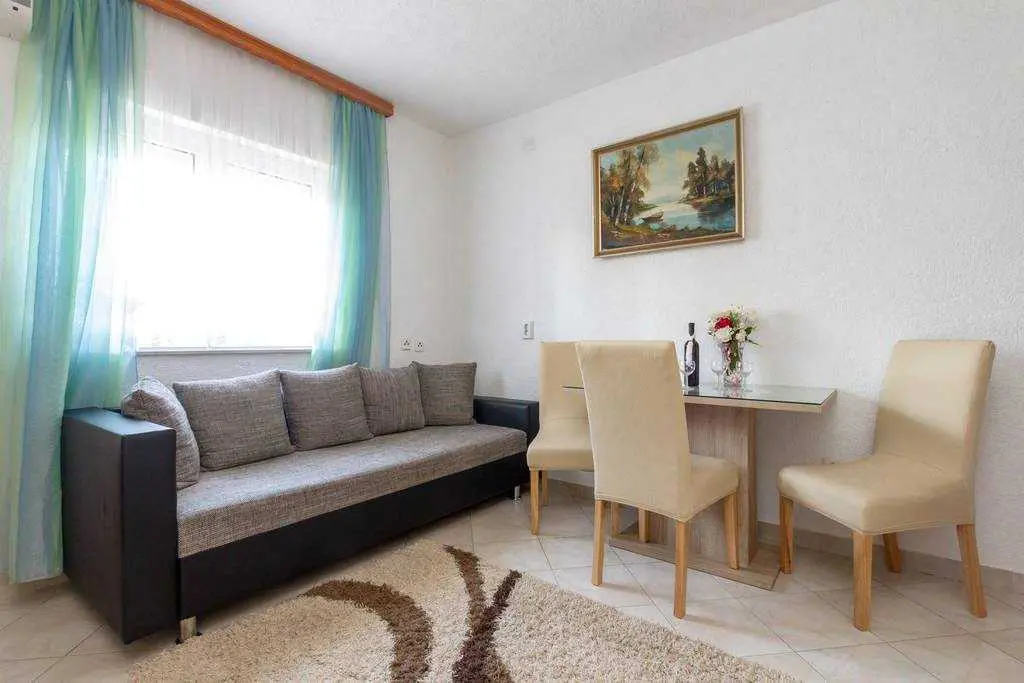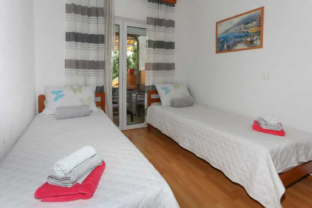 Veľmi milí domáci...ochotne nás vyzdvihli pri príchode na autobusovej stanici v Trogire a pri odchode odviezli na vlakovú stanicu. Po celý čas sa k nám správali ako k rodinným priateľom. Jediným drobným problémom bolo, že cestu k moru komplikuje hustá zástavba ... Uličky pomedzi apartmány sú často slepé