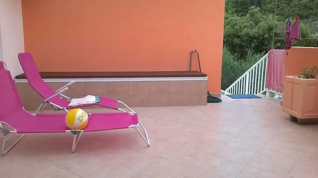 Apartman Rubin nalazi se u mirnoj uvali Repić , 950m od turističkog naselja Klek , Dubrovnik je 70 km od Čilipi DBK 85 km najbliže zračne luke , priključak na autocestu 25 km ( Ploče ) . Površina je 45m2+ terasa 25m2 . Terasa je natkrivena sa mediteranskim gredama i tendom . Na terasi se nalazi kamin za roštiljanje . Stan ima parkirno mjesto i vez za brod do 5m . Apartman 2 + 2 kategoriziran sa 3 * Uključuje TV, SAT TV , Wi- Fi, klima uređaj , kuhinja je opremljena hladnjakom , štednjakom , mikrovalnom . Kuhalo za vodu Kupaonica , tuš , sušilo za kosu , stroj za pranje rublja. Apartman ima 4 ležaljke i mjesto na plaži