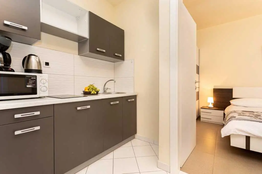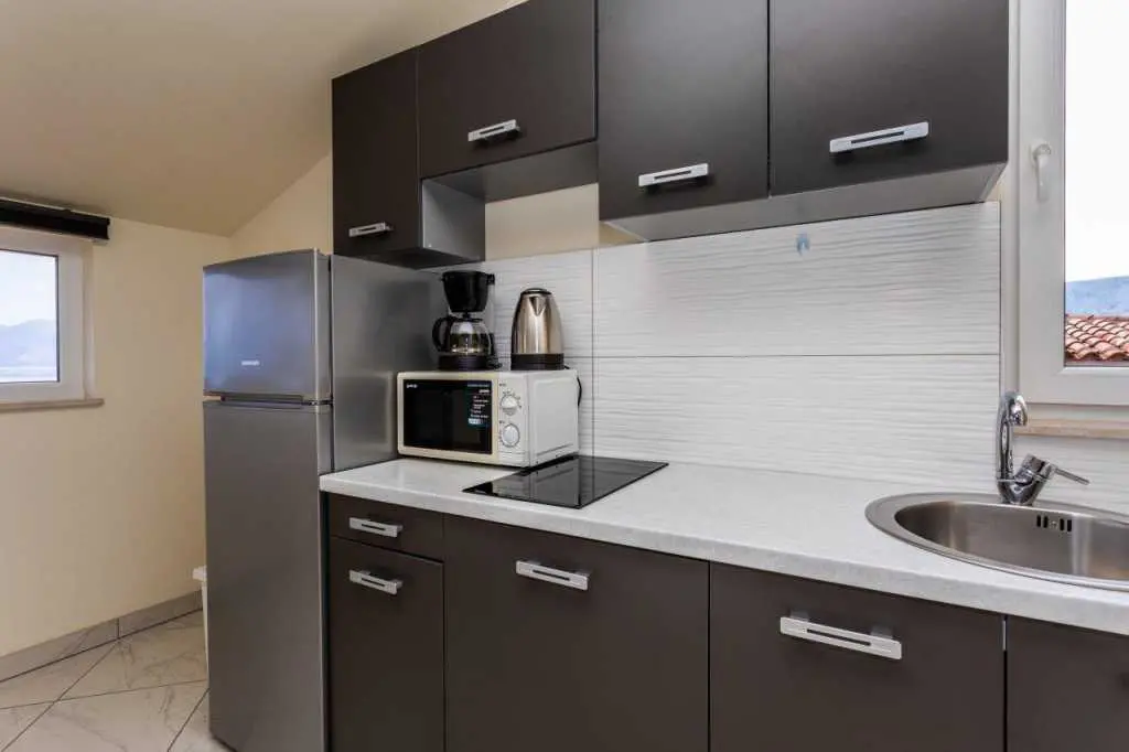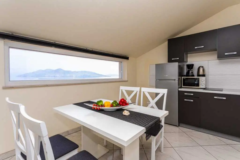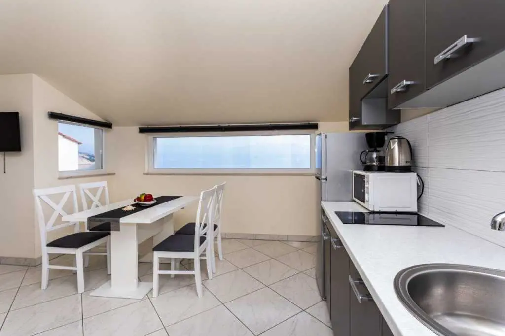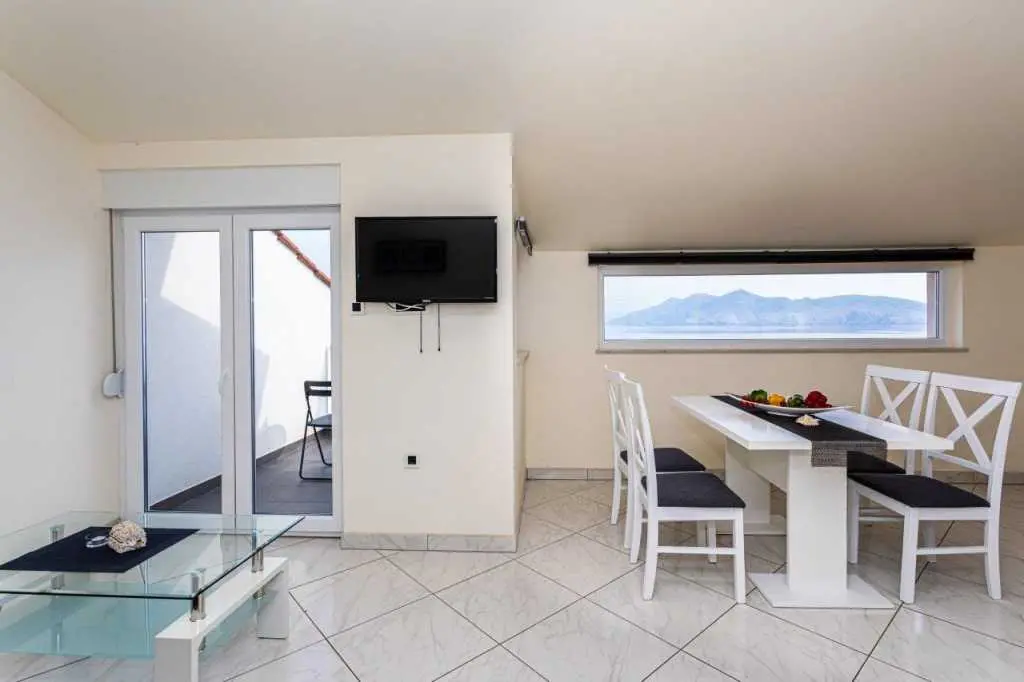 Apartmani se nalaze 10 metara od mora i plaze! Apartmani su novi i sastoje se od dnevog boravka, kuhinje, bladavaone, spavace sobe, kupaone i balkona. U svaki apartman stane 2+2 covjeka. Parking ispred kuce je besplatan. U centar se ne moze sa autom. Do centra vodi setnica lungo mare. Apartmani su u samoj blizinu autokampa Boncluka. U vili se nalazi 6 apartmana!