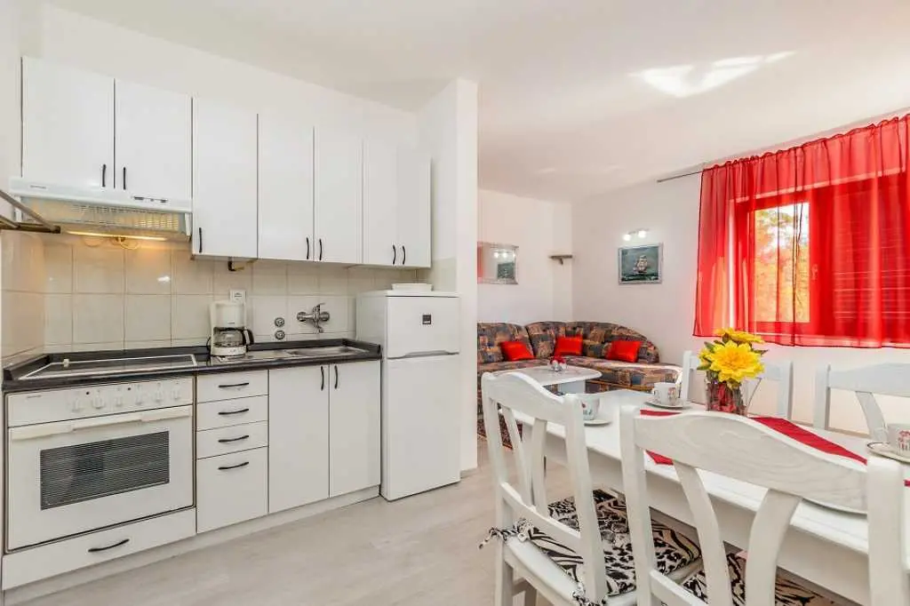 Apartman Dino, novouređeni apartman s balkonom, udaljen 300 metara od mora, nalazi se u mirnoj ulici. Udaljen je par minuta hoda od najljepše plaže na otoku Krku, od šetnice, od biciklističkih staza i netaknute prirode. Trgovine, restorani udaljeni su 250 metara od apartmana. 2 spavaće sobe ( 1 soba bračni ležaj, 2 soba krevet za jednu osobu)pomoćni ležaj u dnevnom boravku. Apartman je potpuno opremljen ( TV, wifi, satelitska antena, opremljena kuhinja....) Baška je idealno mjesto za ljude koji žele uživati u prirodnim ljepotama i zvjezdanom nebu. Kajak i SUP daska za naše goste koji žele uživati u moru i odlaziti na malene udaljene plaže u blizini Baške. Gosti koji borave duže od 7 dana, besplatno korištenje Kayaka ili Sup-a na jedan dan. Za goste koji borave kraće mogućnost iznajmljivanja Kayaka ili Sup-a, dodatno se naplaćuje. Apartman se nalazi na odličnoj poziciji za ljude koji vole biciklizam, planinarenje, penjanje ( Portafortuna), šetanje po okolnim planinama i iznad predivnih morskih plaža. Dalekozor za gledanje nedirnute prirode, planina ili nezaboravnog zvjezdanog neba. DOBRO DOŠLI DRAGI GOSTI !!!
