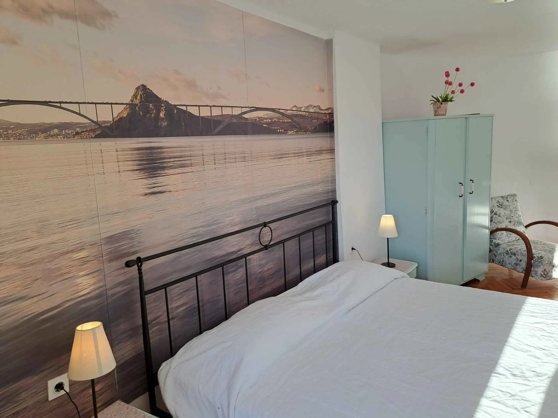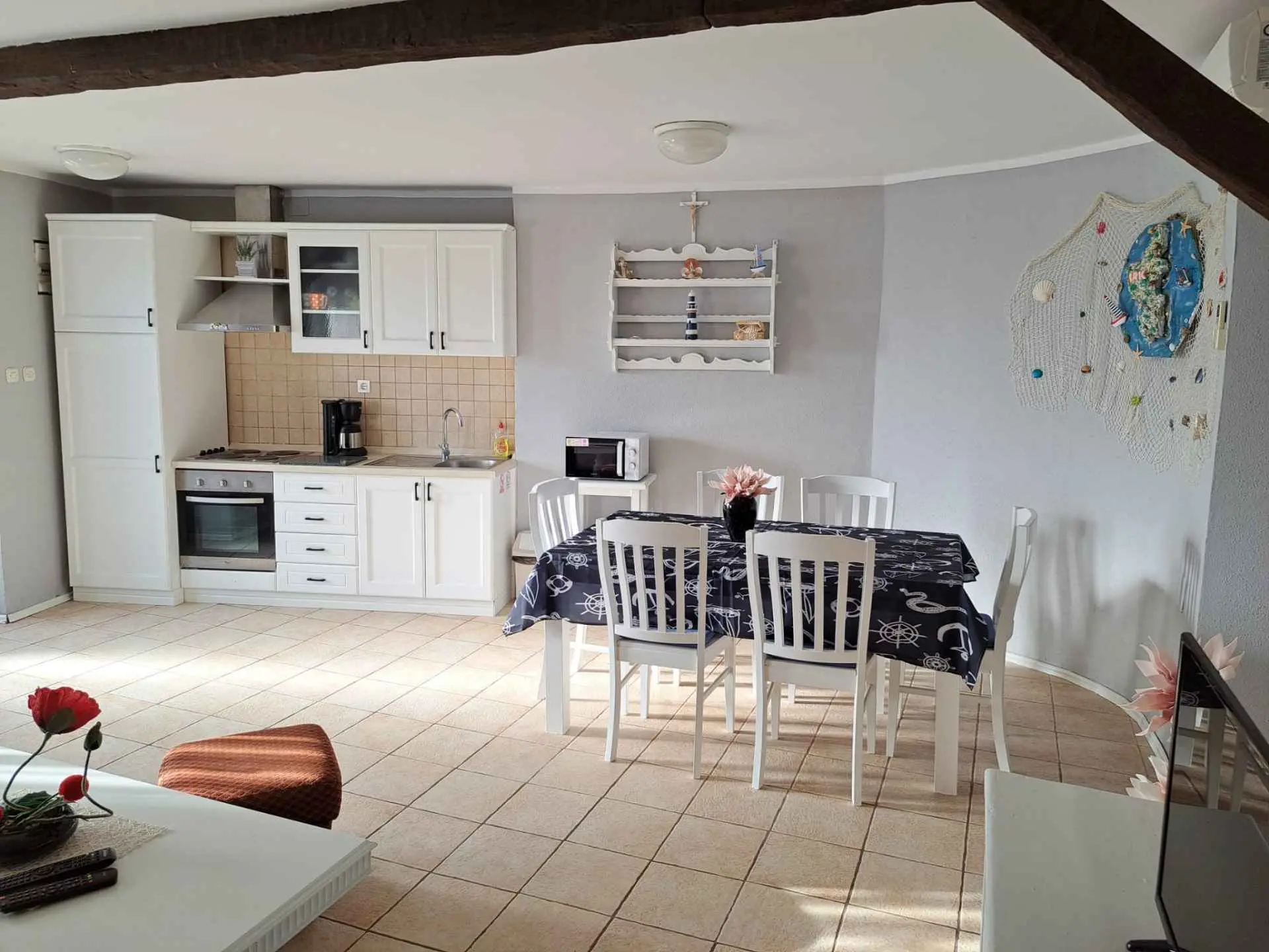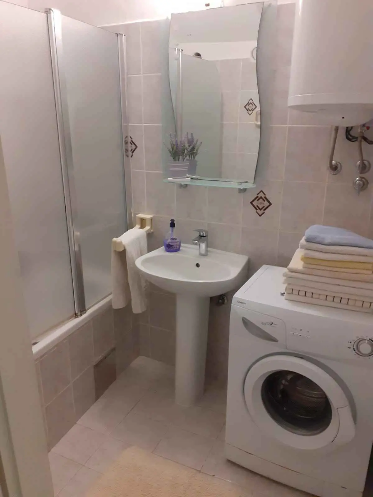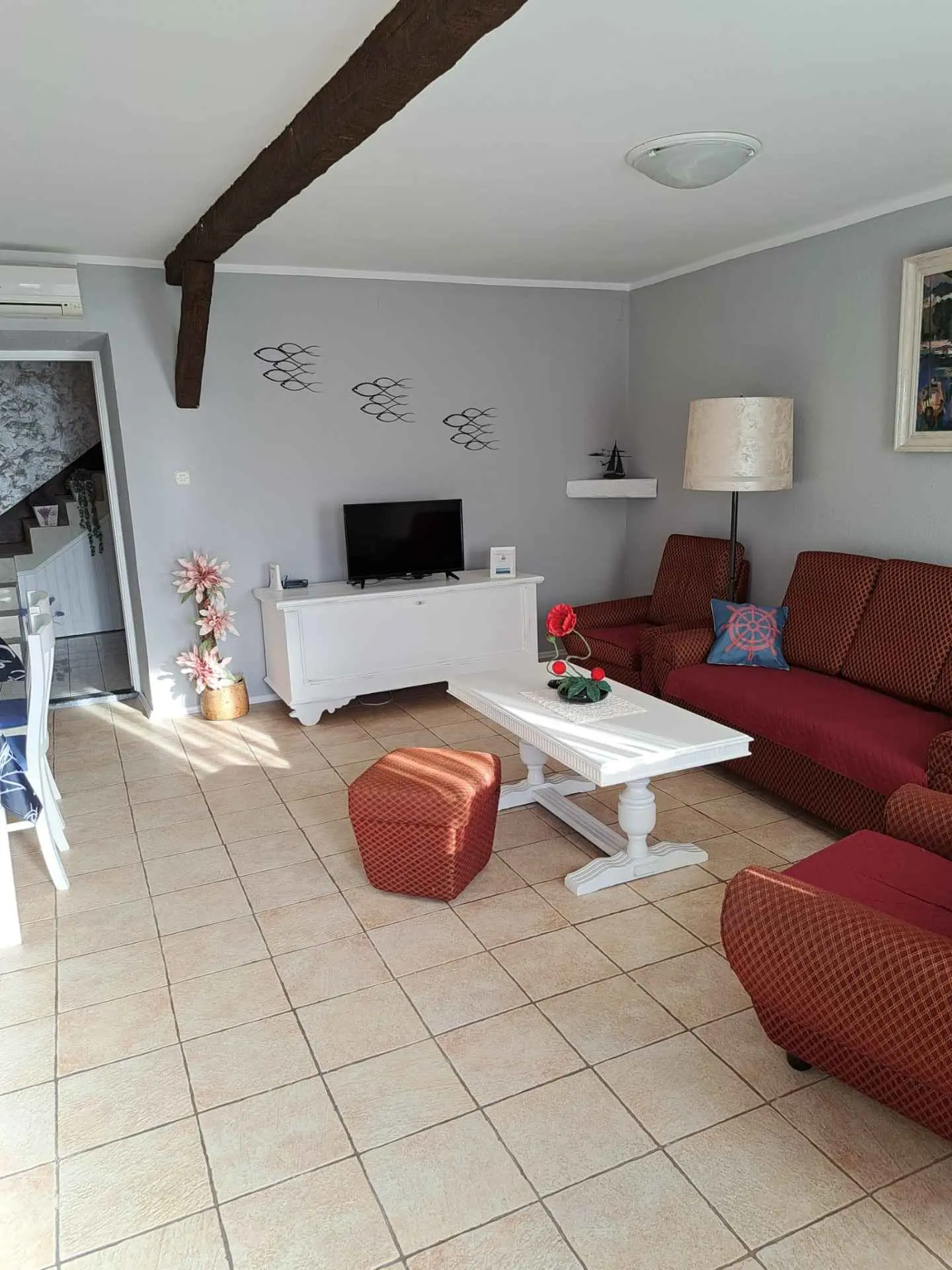 Apartman je za 4+1 (najviše 4 odrasle osobe + 1 dijete) Apartman ima dnevni boravak, blagovaonicu i kuhinju. Na istom katu je kupaona i odvojeni wc. Na katu apartman ima 2 spavaće sobe sa bračnim krevetima i pomoćni ležaj ( fotelja na razvlačenje u jednoj spavaćoj sobi) i kupaona sa wc. Na krovu apartmana nalazi se terasa Apartman se nalazi u staroj jezgri prvi red do mora. Apartman je udaljen 100m od prve plaže koju naši gosti rado koriste. Imate osigurano parkirno mjesto za dva automobila udaljeno od apartmana 10 minuta ili cca 500m. Apartman je smješten u pješačkoj zoni.