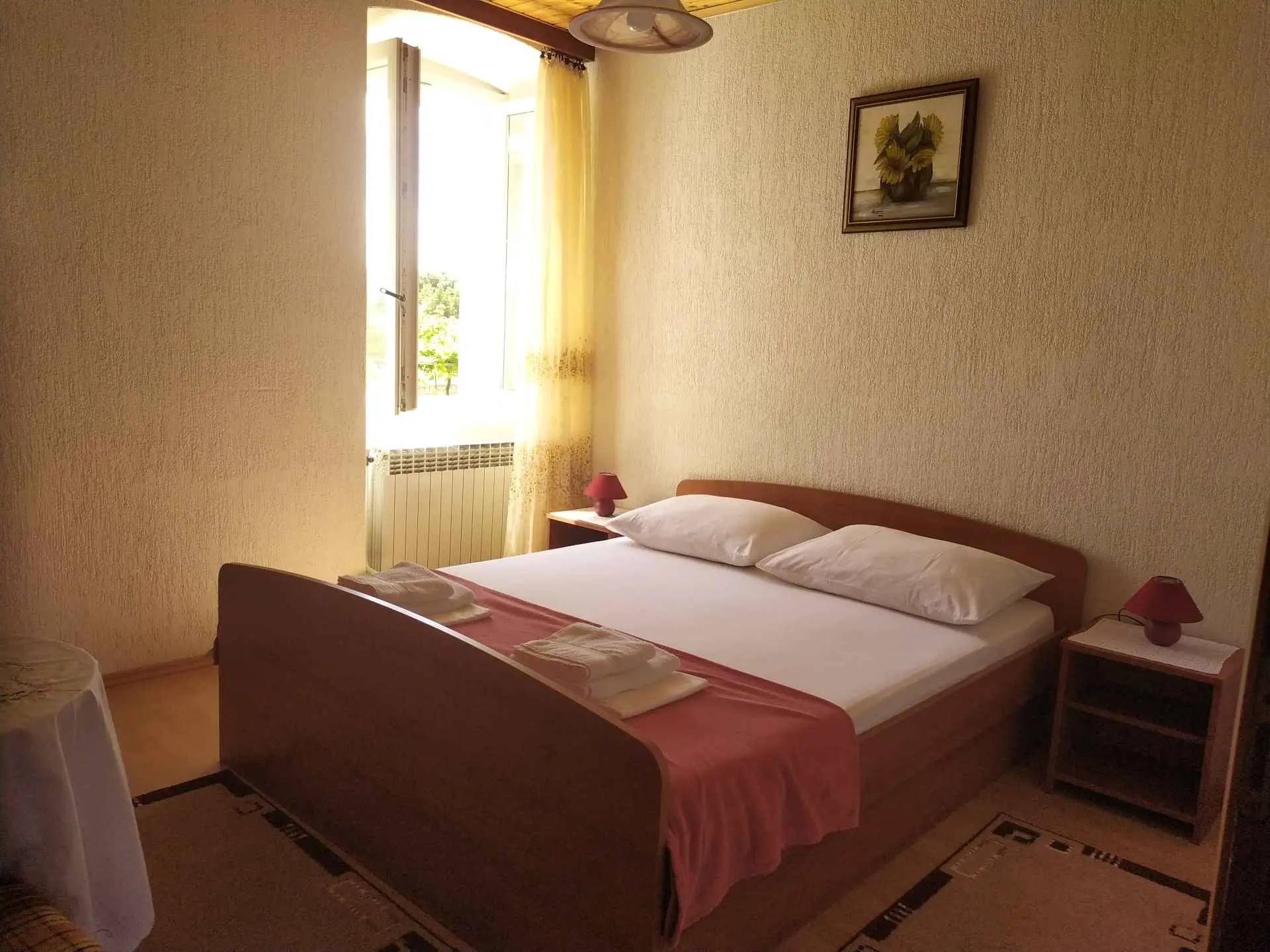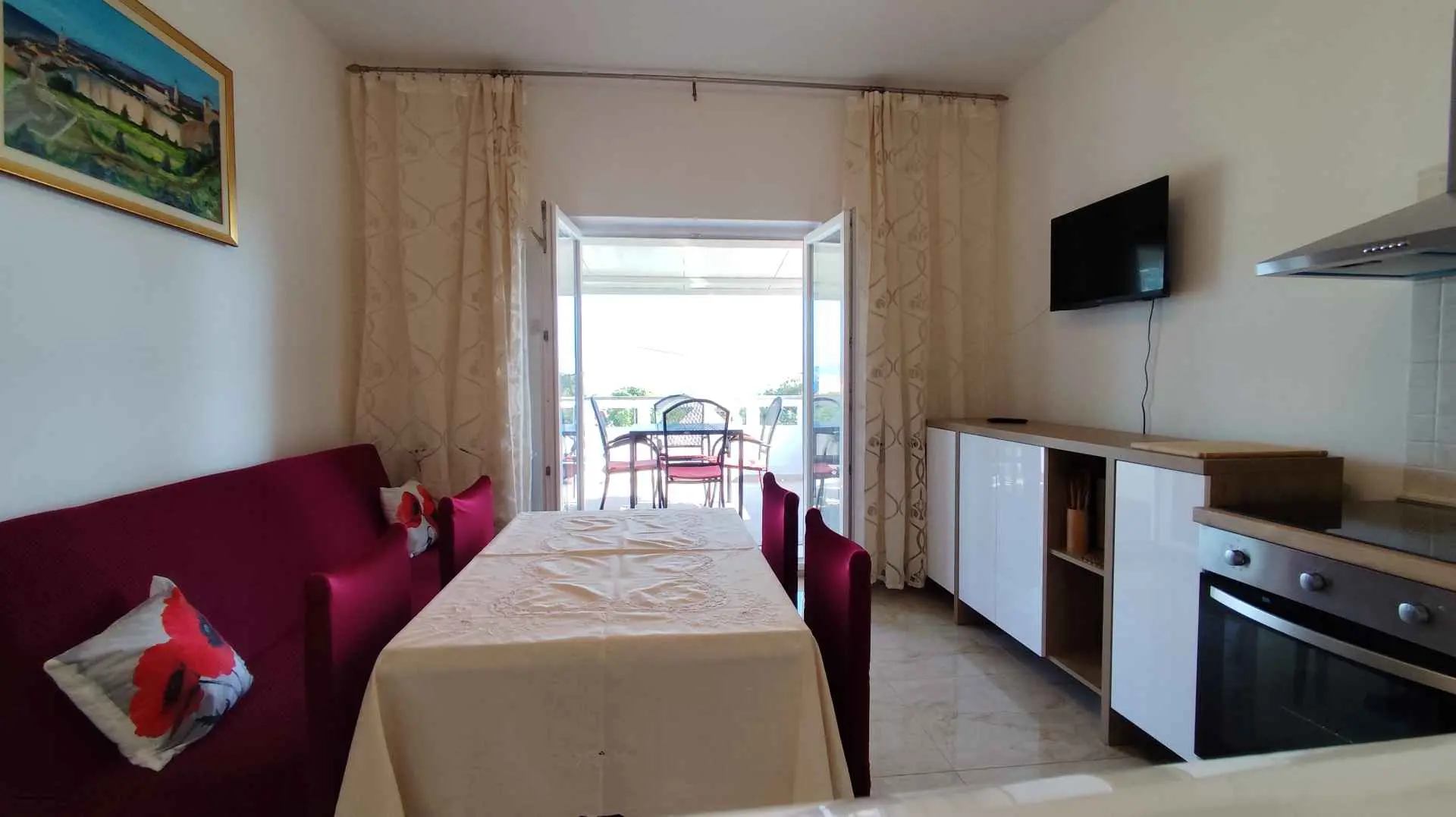 Jako smo zadovoljni apartman om. Cisto, uredno i prostrano. Kuhinja opremljena dobrim izborom posudja odlicnog kvalitet. Gazdarica Milena je jako ljubazna i gostoljubiva. Vrt oko apartmana je lep i daje hladovinu. Parking u dvoristu u sjeni. Bakon sa pogledom na more bez uvida iz kuca okolo. Od srca preporucujem!