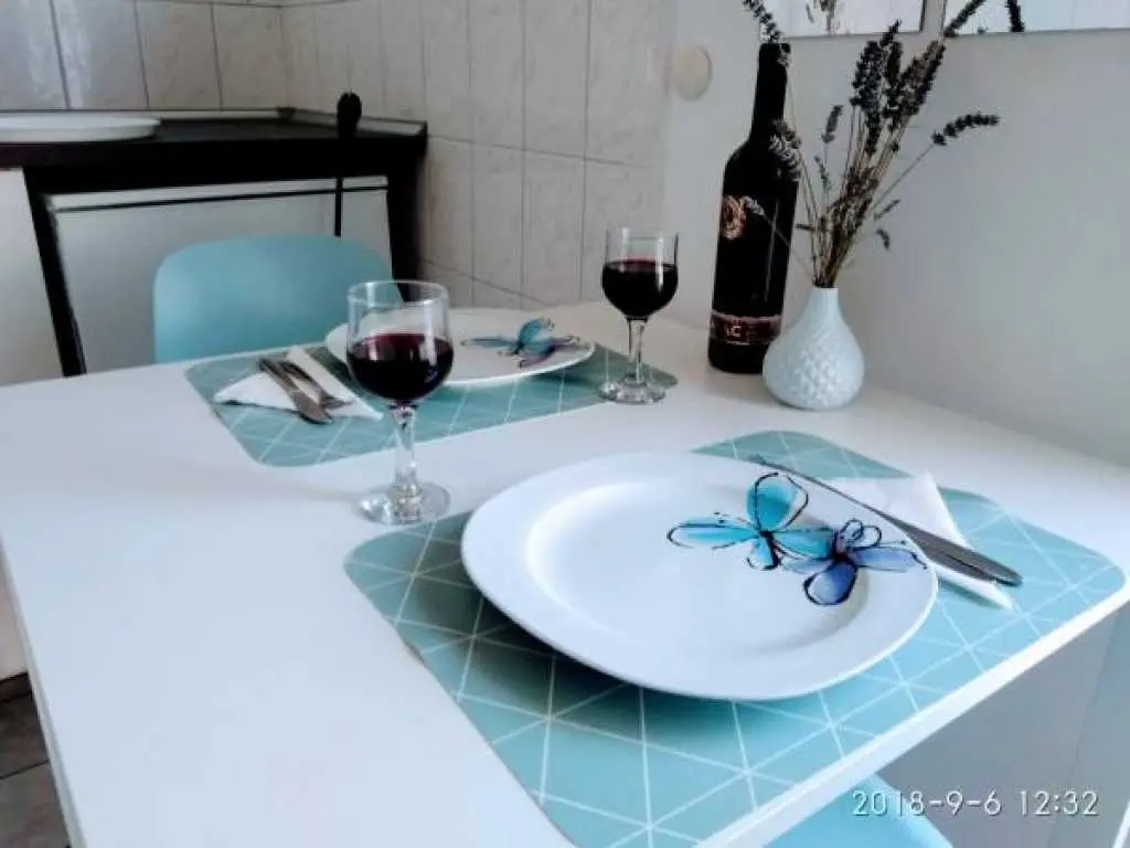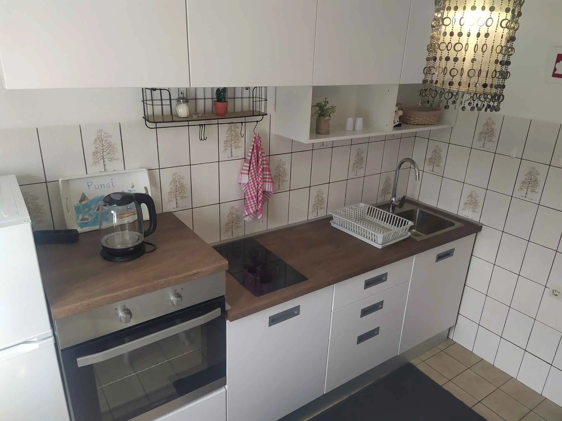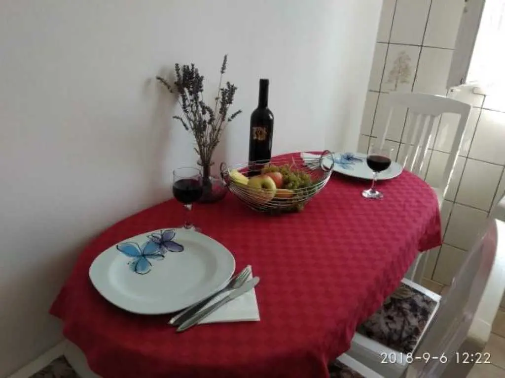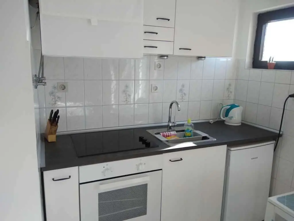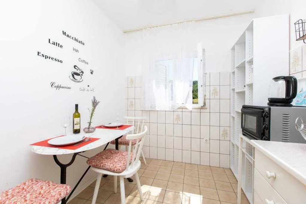 Kuća se sastoji od 2 odvojene cjeline. Studio 1/2+1. Smještaj se sastoji od spavaće sobe (bračni krevet i kauč na razvlačenje), nove kuhinje (pećnica, hladnjak sa zamrzivačem, toster, aparat za kavu, kuhalo za vodu), kupaonice s tušem i balkona. Studio 1/2. Smještaj se sastoji od sobe s bračnim krevetom, kuhinje (pećnica, toster, aparat za kavu, kuhalo za vodu, hladnjak sa zamrzivačem) i balkona s pogledom na more.