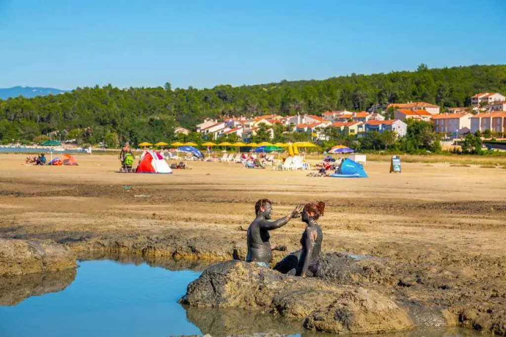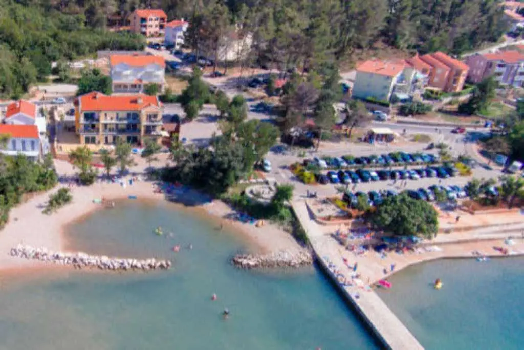 Objekt je smješten u sredini uvale Soline, odmah iznad poznate pješčane plaže Meline sa ljekovitim blatom, sa dugačkim povijesnim betonskim mulom i vrlo plitko i toplo more. Prostire se na 630 m dužine i 140 m širine, od nas udaljena 5 min pješke, 450 m. Još je bliže plaža sa hladovinom i šljunkom, pješice 4 min odnosno 350 m, a 50 m dalje je javna, betonska plaža sa plavom zastavom kvalitete. Najbliža trgovina je udaljena 450 m, najbliži lokal sa pićem i roštiljem 350 m. U blizini je i špilja Biserujka te stari povijesni gradić Dobrinj sa restoranom sa lokalnim specijalitetima. Šetnice u šumi sa arheološkim znamenitostima. Područje Soline je mirno i pitomo, idealno za obitelji i ljude koji traže odmor. Sezona kupanja od svibnja do listopada! Apartmanska kuća na tri etaže - prizemlje, prvi i drugi kat sa unutarnjim stubištem. Na svakom katu nalazi se po jedan zaseban apartman od 55 m2 sa 1 sobom sa bračnim krevetom za 2 osobe i 1 sobom sa 2 kreveta za 2 osobe koji se mogu spojiti, kupaonom sa tušem i WC, sušilo za kosu, kutija prve pomoći, perilica rublja, sef. Opremljena kuhinja sa kuhalom za vodu, 2 ploče za kuhanje, perilica posuđa, hladnjak sa ledenicom, mikrovalnom pećnicom te posuđem i priborom za jedenje i pripremanje hrane. Posteljina i ručnici osigurani i mijenjaju se tjedno, a i ranije na zahtjev gosta. Svaki apartman ima natkriveni balkon, a apartman A i dodatnu terasu u zavjetrini i popodnevnoj hladovini. U apartmanima su dostupni higijenski papir, tekući sapun, deterdžent za posuđe, krpa i spužva za suđe i krpa i metla za podove. Domaćin ne živi u zgradi ali je dostupan 24 sata na poziv za sve situacije i usluge. Apartmani imaju svoja parkirna mjesta u dvorištu. U dvorištu je postavljen kamin - roštilj i sjenica za sva tri apartmana. Vrijeme dolaska i odlaska gosta moramo poštivati radi dezinfekcije i čišćenja.