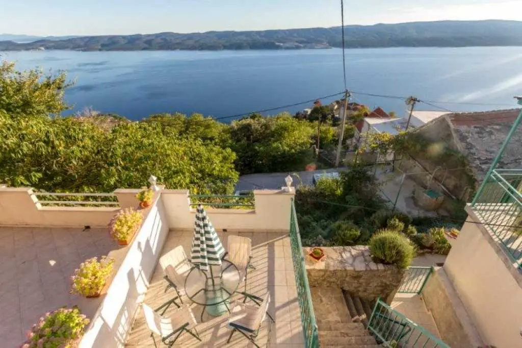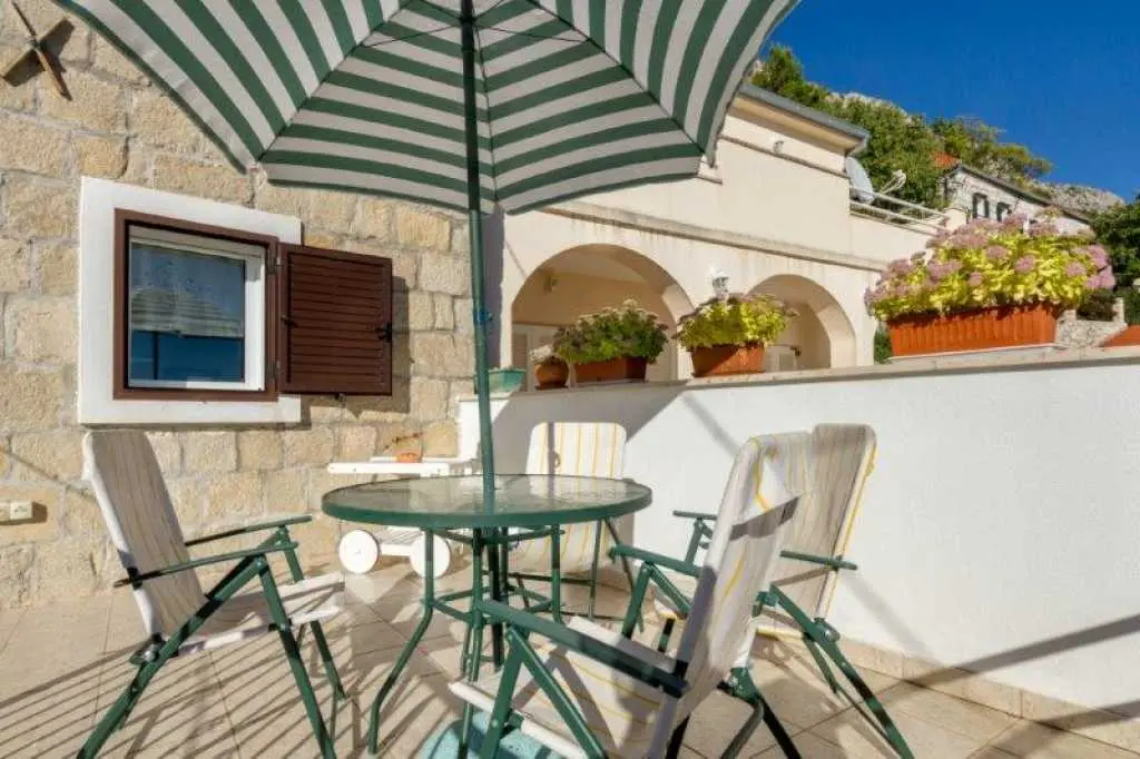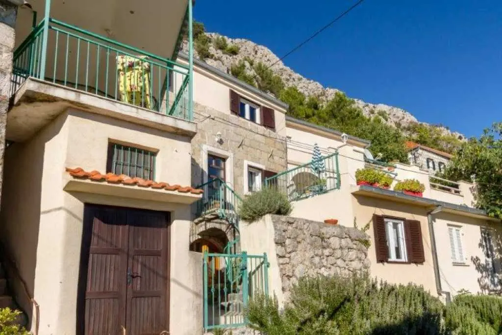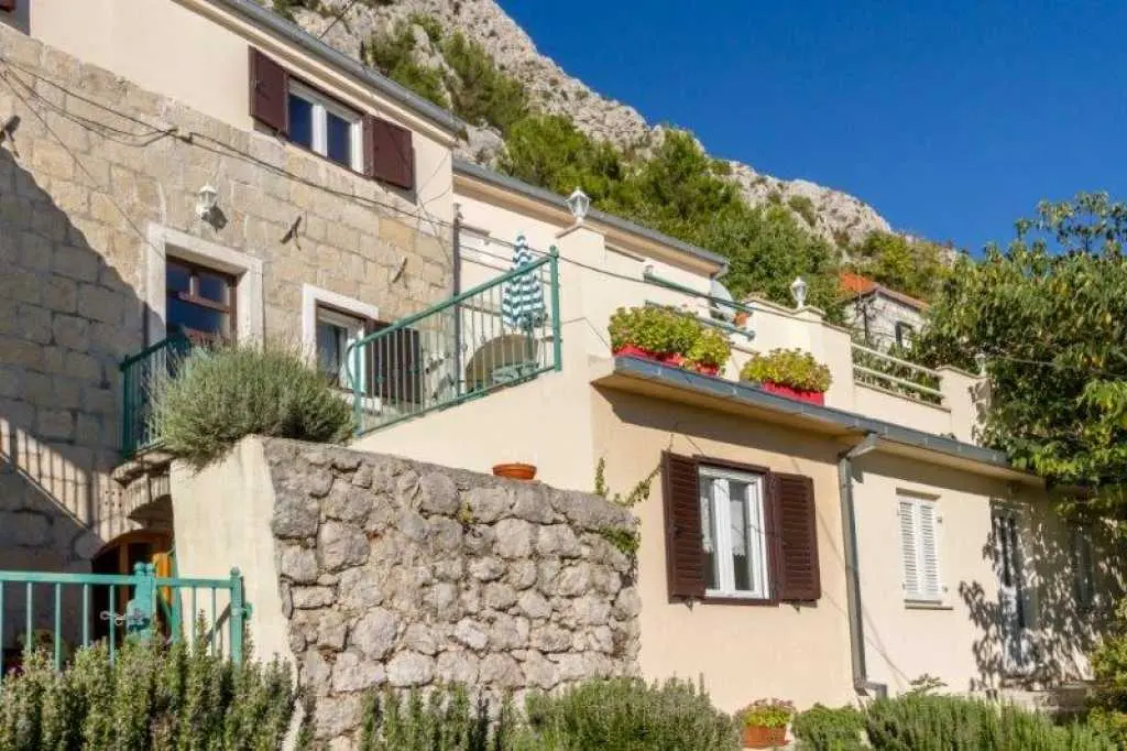 Tradicionalna dalmatinska kuća 165 m2 za udoban smještaj 10 osoba. Nalazi u starom mirnom selu Lokvi Rogoznici na visini od 357 m iznad mora. Udaljena je 2 km od nadaleko poznatih pješćanih plaža i 7 km od Omiša. Sagrađena je 1892 g. i potpuno prilagođena savremenom načinu života. Proteže se na 3 etaže.Na I etaži je dnevni boravak s potpuno opremljenom kuhinjom, blagovaonicom i kupatilom sa tuš kabinom.Na katu su 4 spavaće sobe.U prizemlju je kupatilo sa tuš kabinom, prostor za odlaganje pribora za plažu i stroj za pranje rublja. Ispred kuće su 3 terase opremljene stolovima i stolicama i roštilj. U prizemlju je odvojeni apartman potpuno opremljen sa kuhinjom, blagovaonicom, sjedećom garniturom i kupatilom s tuš kabinom. Spavaća soba je odvojena od dnevnog dijela. Ispred apartmana je ugodna terasa opremljena stolom i stolicama i ležaljkom i roštiljem. U cijelom kompleksu dostupan je besplatni bežični internet. Na raspolaganju su 3 TV prijemnika s kabelskim programima. 2 klima uređaja su u dnevnom boravku na prvoj etaži i 1 u prizemlju. Parking je 30 m od kuće. Do kuće nema javnog prijevoza.