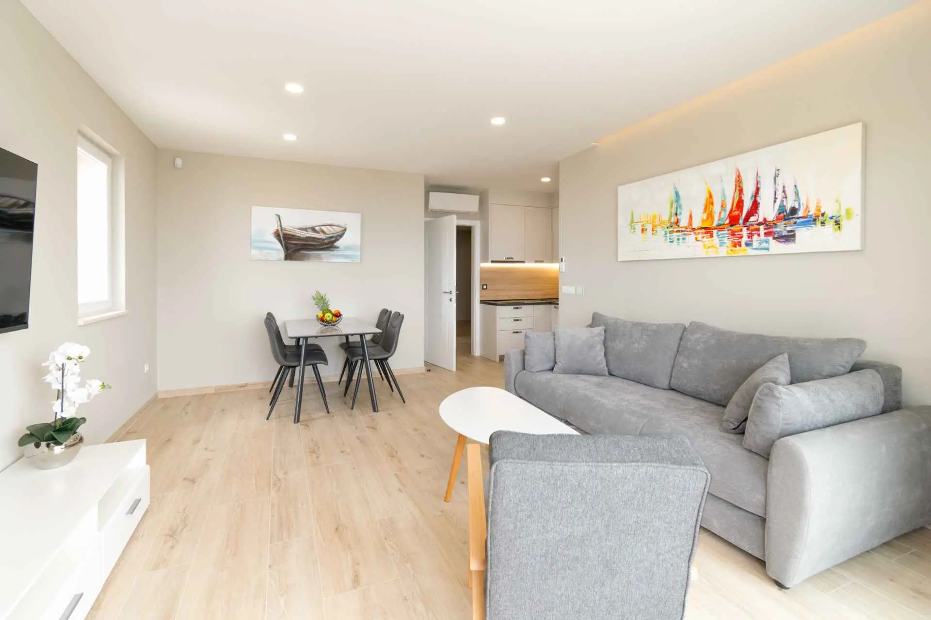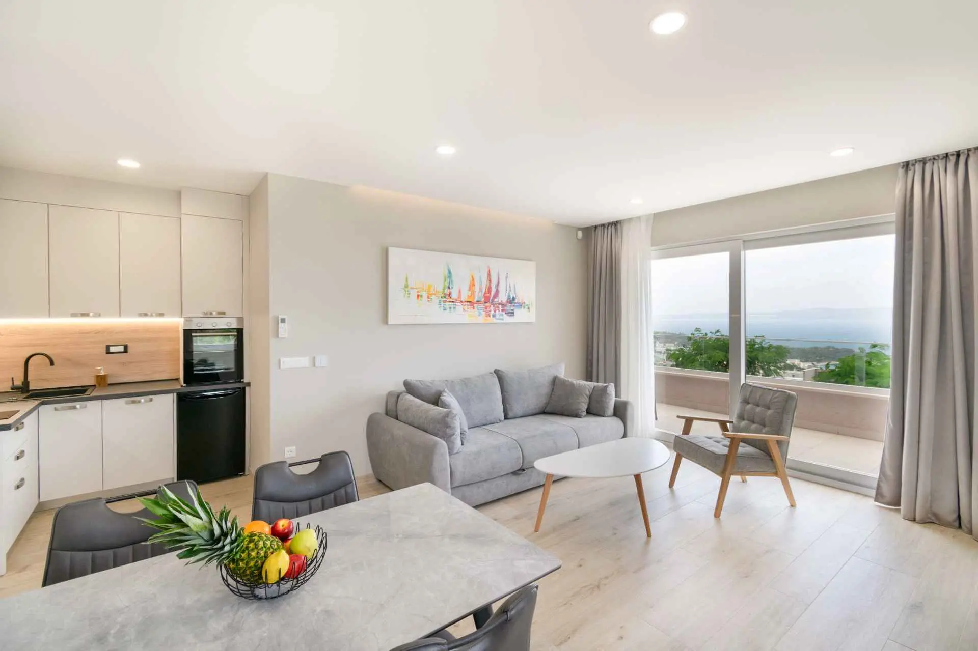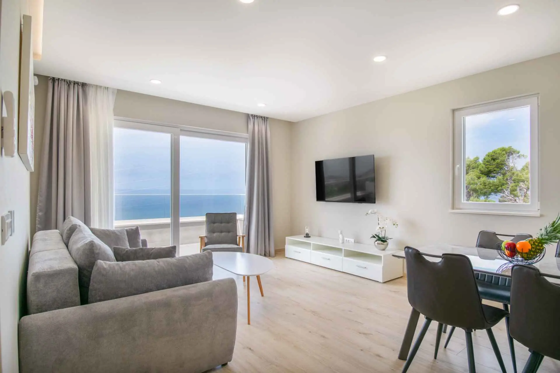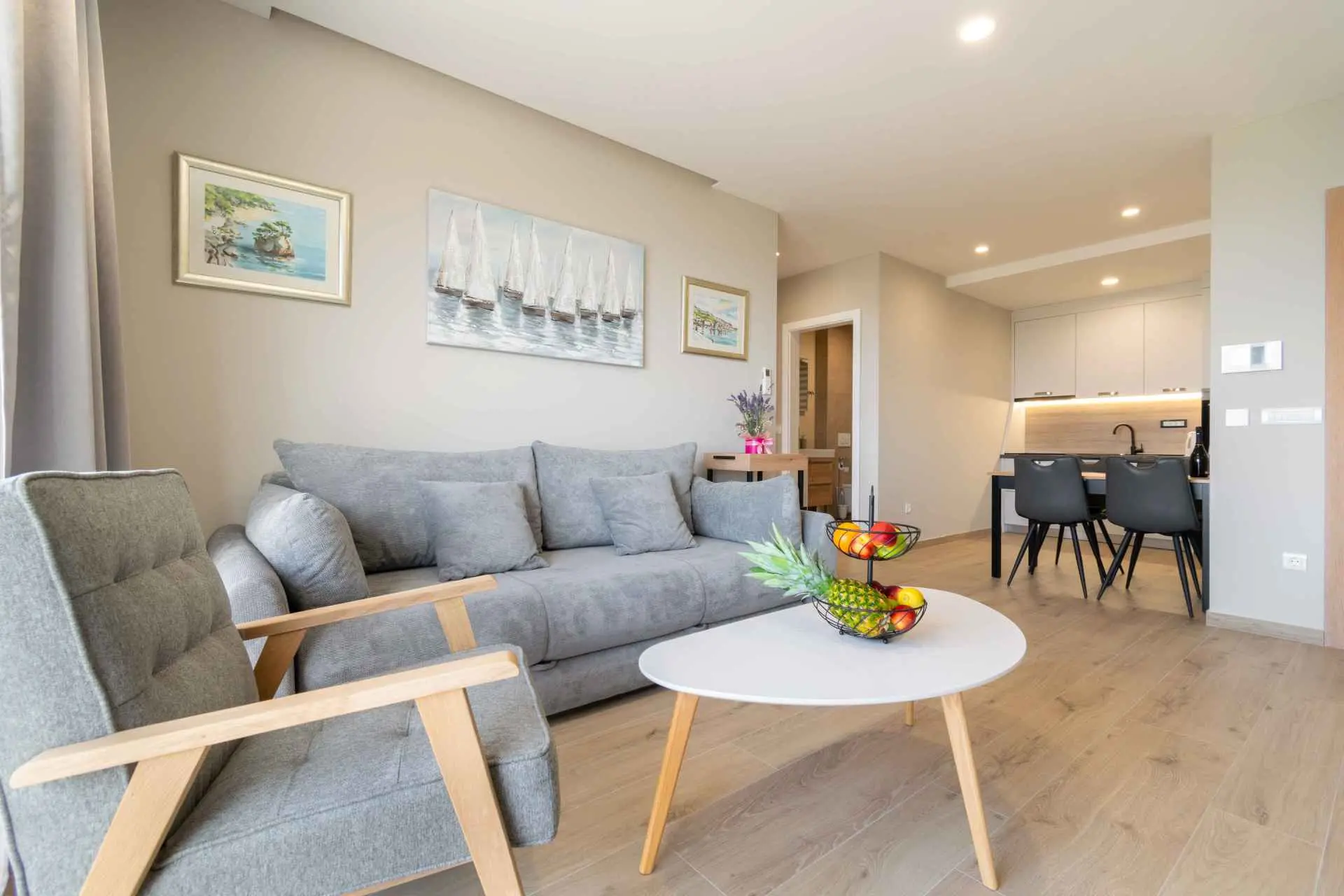 Moderni Apartmani s Pogledom na More u Makarskoj Moderni apartman od 50m². 1 spavaća soba, 1 kupaonica, potpuno opremljena kuhinja. Prekrasan pogled na more. Apartmani uključuju parking mjesto ispred objekta. Dogovorite razgledavanje danas i učinite ovaj apartman svojim novim domom.