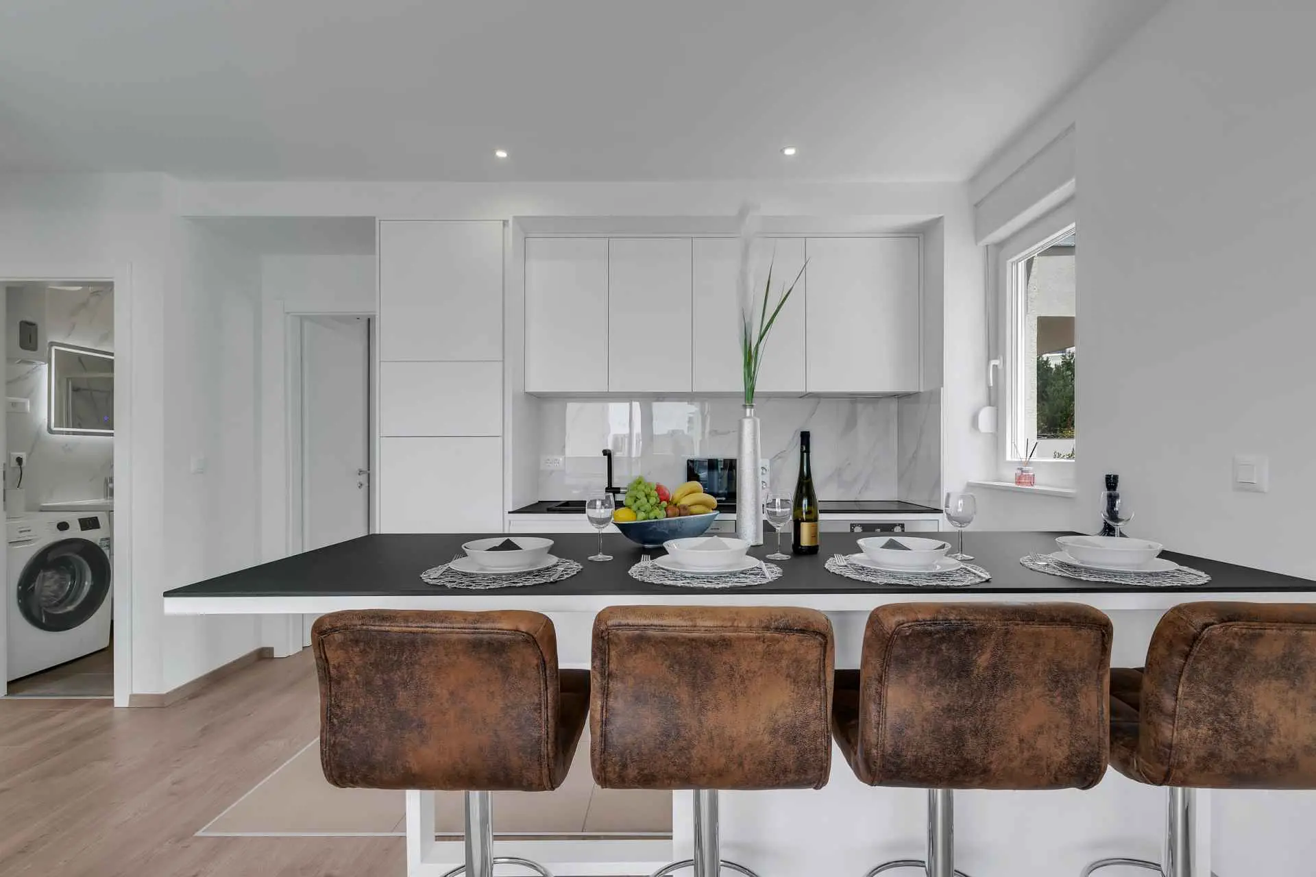 Dobrodošli u "La Mer Adriatique" apartmane u Makarskoj! Naši apartmani nalaze se u mirnoj ulici izvan centra grada i svi imaju prekrasan balkon ili terasu s pogledom na Jadransko more. Apartmani su moderno uređeni, s potpuno opremljenim kuhinjama i kupaonicama za vaš udoban boravak. Za vašu praktičnost, na raspolaganju vam je lift i besplatni parking, dok gosti pojedinih apartmana imaju vlastito garažno mjesto. Naše osoblje vam je na raspolaganju za pomoć i savjete tijekom vašeg boravka. Rezervirajte svoj boravak u "La Mer Adriatique" apartmanima i uživajte u savršenom odmoru u Makarskoj.