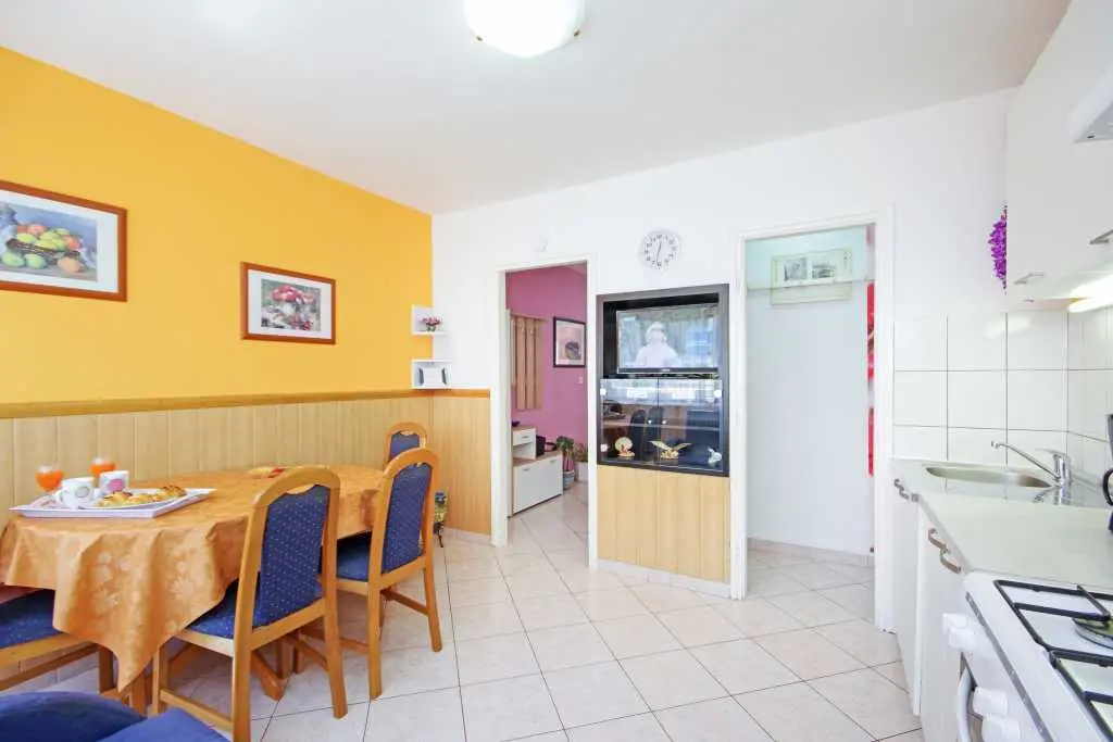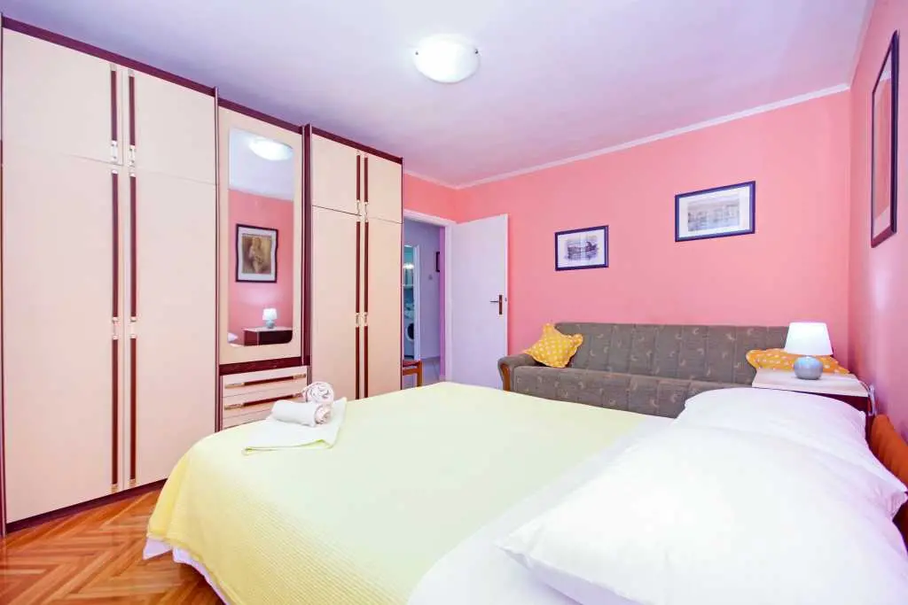 Apartman Miše 4+1 u Makarskoj ima dvije dvokrevetne sobe i pomoćni lezaj (kauč) u jednoj sobi za petu osobu, kuhinju, kupatilo, wc, klima, sat, tv, dvd, parking. Apartman se nalazi 100 m od centralne pješćane plaže koja je posebno idelana za djecu i starije osobe. Također, udaljen je 100 m od gradske marine i šetnice-rive kojom se laganim hodom dolazi do stare jezgre grada i glavnog trga koji je od apartmana udaljen oko 300 m. U krugu od 100m oko apartmana nalaze se market, pekarnica, mesarnica, ribarnica, caffe-bar i restoran. Smješten je na idealnoj poziciji tako da nije potrebno korištenje automobila za vrijeme boravka u Makarskoj. Dobrodošli!