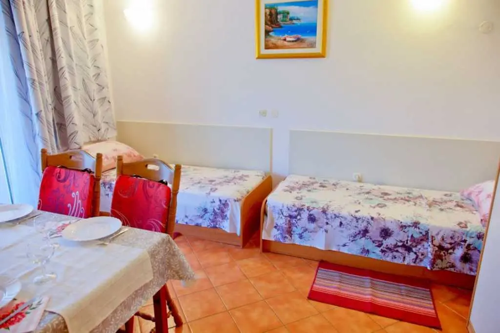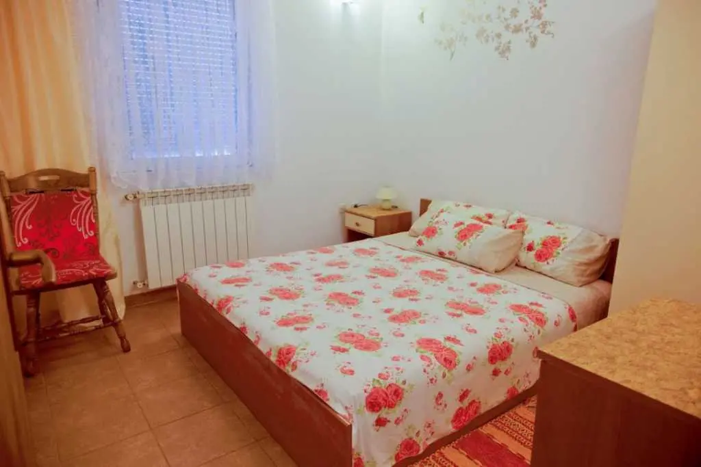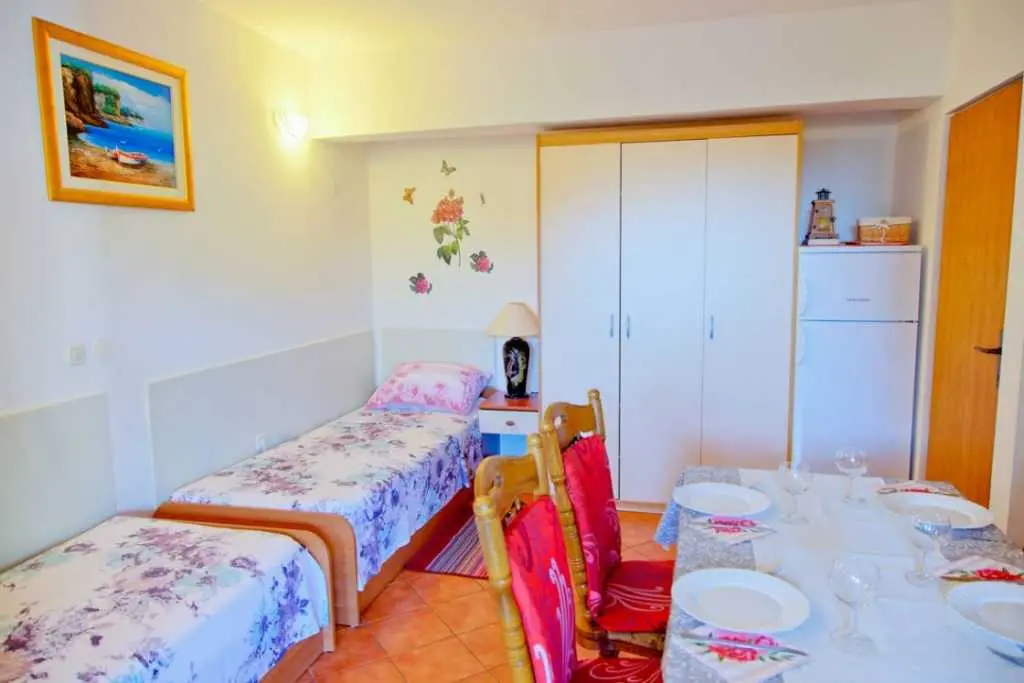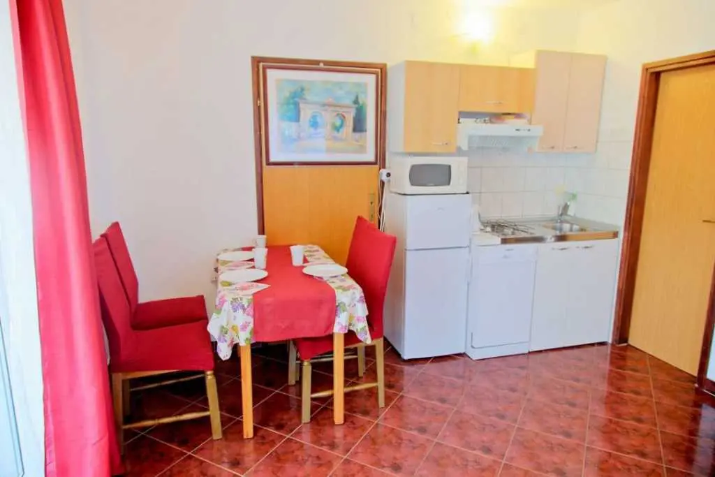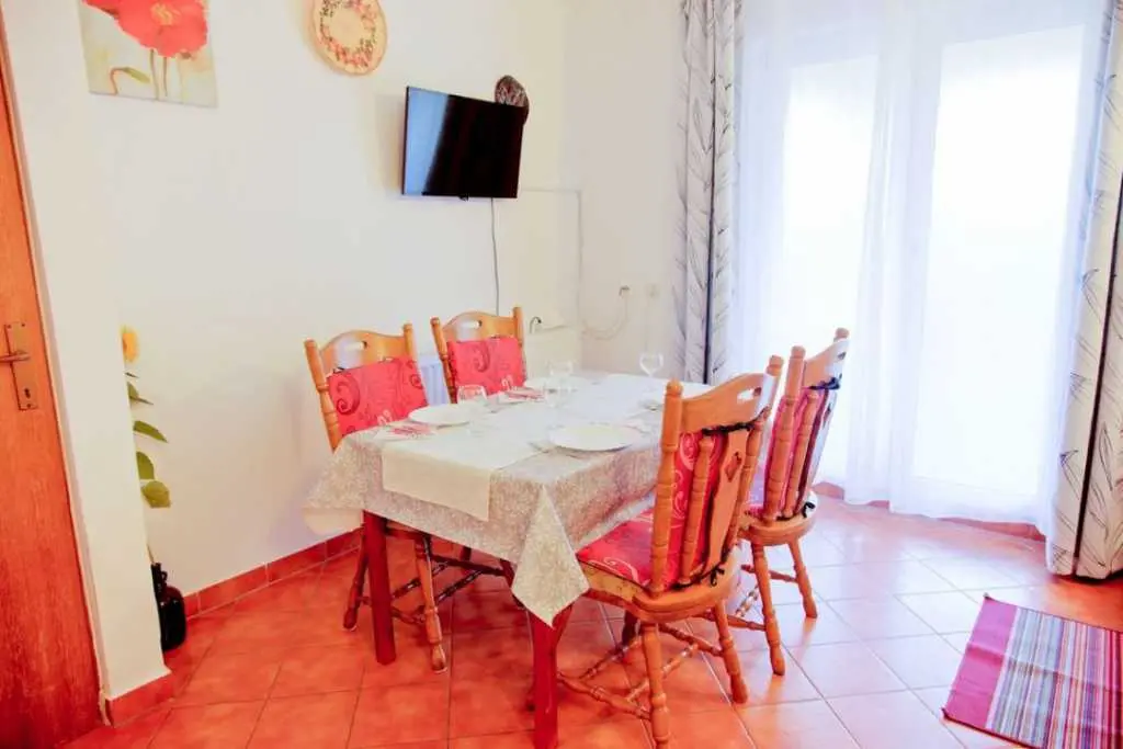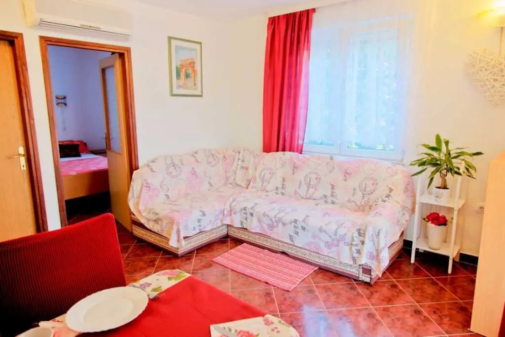 Gospodarze bardzo mili i przyjaźni.Apartament bardzo cysty schludny i przytulny.Jest wyposażony w lodówkę mikrofalówkę kuchenkę zmywarkę pralkę garki itp.Wszysto co potrzeba.Łóżka bardzo wygodne i czysta pościel oraz czyste ręczniki.Po 6 dniach dostaliśmy ponownie czystą pościel ora czyste ręczniki.Apartament jest zacieniony więc można odpocząć po upale.Przed apartamentem wspaniałą weranda również zacieniona gdzie można odpoczywać jeść posiłki pić kawe i podziwiać wspaniały ogród.Ogrod jest bardzo bardzo zielony i zadbany. Są kiście winogron,drzewo cytryny drzewa kasztana pachnącą lawenda drzewka oliwne i wiele innych zadbanych kwiatów i roślin.Wokół apartamentu cisza i spokój.Jezeli wrócimy do Chorwacji w następnym roku to na 100 % tylko do tej rodziny i tego apartamentu.Oceniamy pobyt na 100% polecamy
