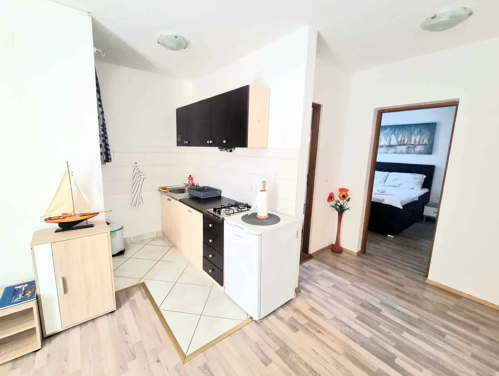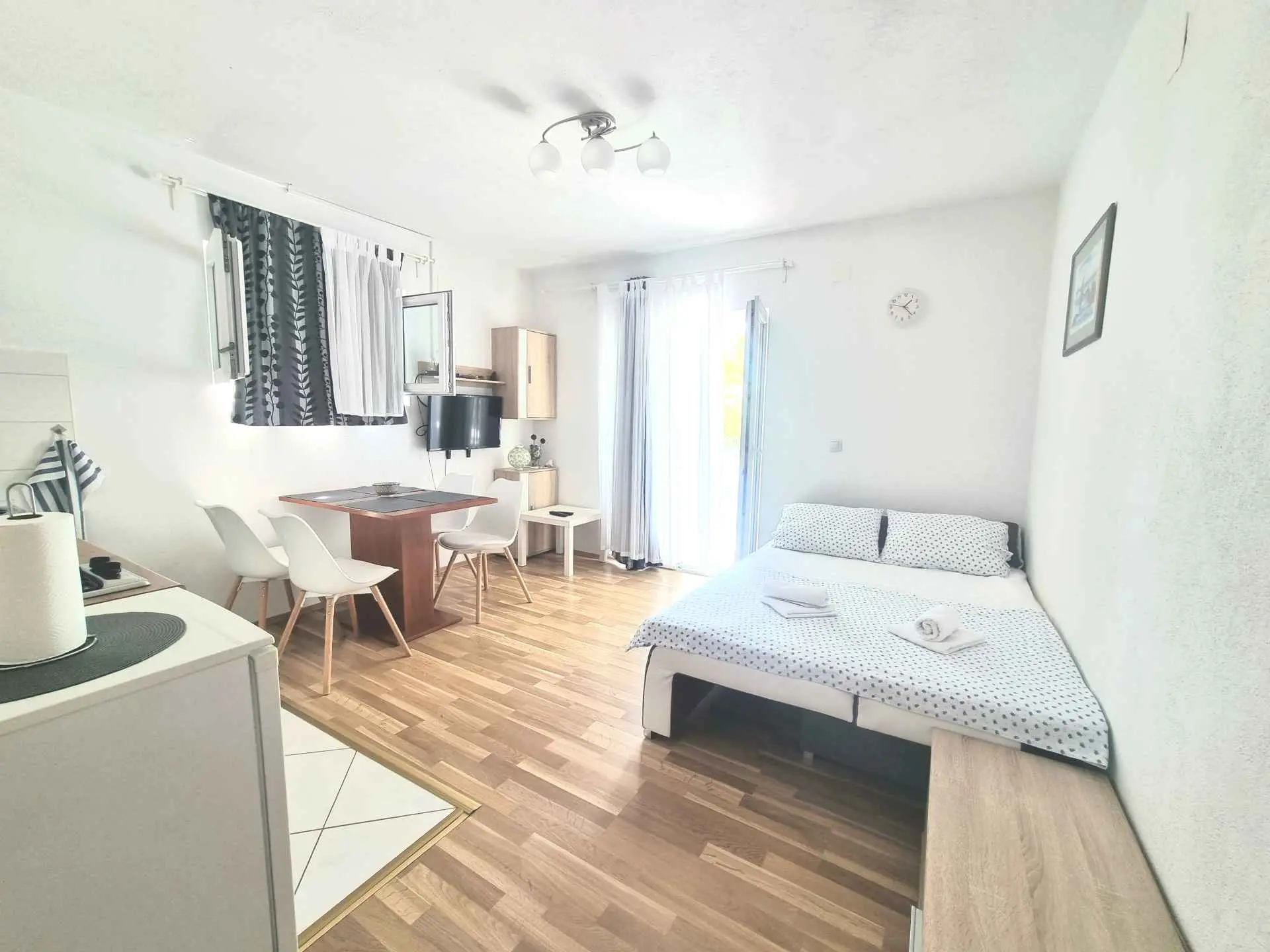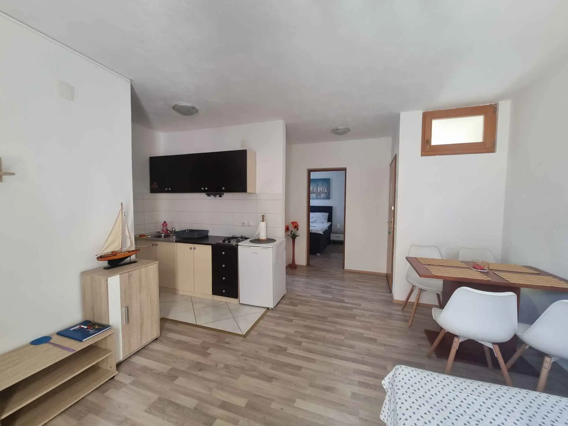 Apartmani obitelji Rotim nalaze se u Uvali Sutmiholjska, oko 4km od glavnog mjesta Babino Polje, na otoku Mljetu. Kuća se nalazi usred prekrasne borove šume, na osamljenom mjestu gdje ćete moći pronaći mir i iskusit čari istinskog odmora. Uz našu, u neposrednoj su blizini još samo četiri kuće. Pogled s terase/balkona Vašeg apartmana pruža se na otvoreno more prema Italiji. Uvala Sutmiholjska jedna je od najljepših plaža na otoku Mljetu, smještena s južne strane otoka. Plaža je šljunčana, okružena stijenama pa po želji možete izabrati najbolje mjesto za sebe. Ispred kuće se također možete kupati na stijenama, roniti, skakati ili se prepustiti meditaciji. Nudimo dva novoopremljena apartmana na prvom katu kuće, namijenjena za boravak po max. 4 osobe (2+2). Svaki apartman sastoji se od jedne spavaće sobe s bračnim krevetom, kupaonicom, kuhinjom i dnevnim boravkom s izlazom na balkon i pogledom na otvoreno more. U dnevnom boravku je sofa koja se može razvući i biti ležaj za dvije osobe. Po potrebi, moguće je postavljanje i dječjeg krevetića. Kuća je kompletno opremljena solarnim sistemom preko kojeg je omogućena struja i topla voda. Iz istog razloga nije dozvoljena upotreba grijaćih kućanskih aparata (pegla, fen, strujno kuhalo i sl.).Koristimo štedne žarulje, a pitku vodu osiguravamo iz gustjerne (cisterne) te od svojih gostiju očekujemo racionalnu potrošnju vode i struje. Odmor u našim apartmanima savršen je za goste s razvijenom sviješću o održivom razvoju i očuvanju prirode i okoliša. Gostima je na raspolaganju vanjski kamin (roštilj) te ležaljke i sjedeća garnitura na terasi. Kao domaćini, svojim smo gostima uvijek na raspolaganju za bilo kakvu pomoć i pružanje savjeta, kako bi njihov boravak na ovom čarobnom, pomalo divljem, otoku bio što ugodniji.