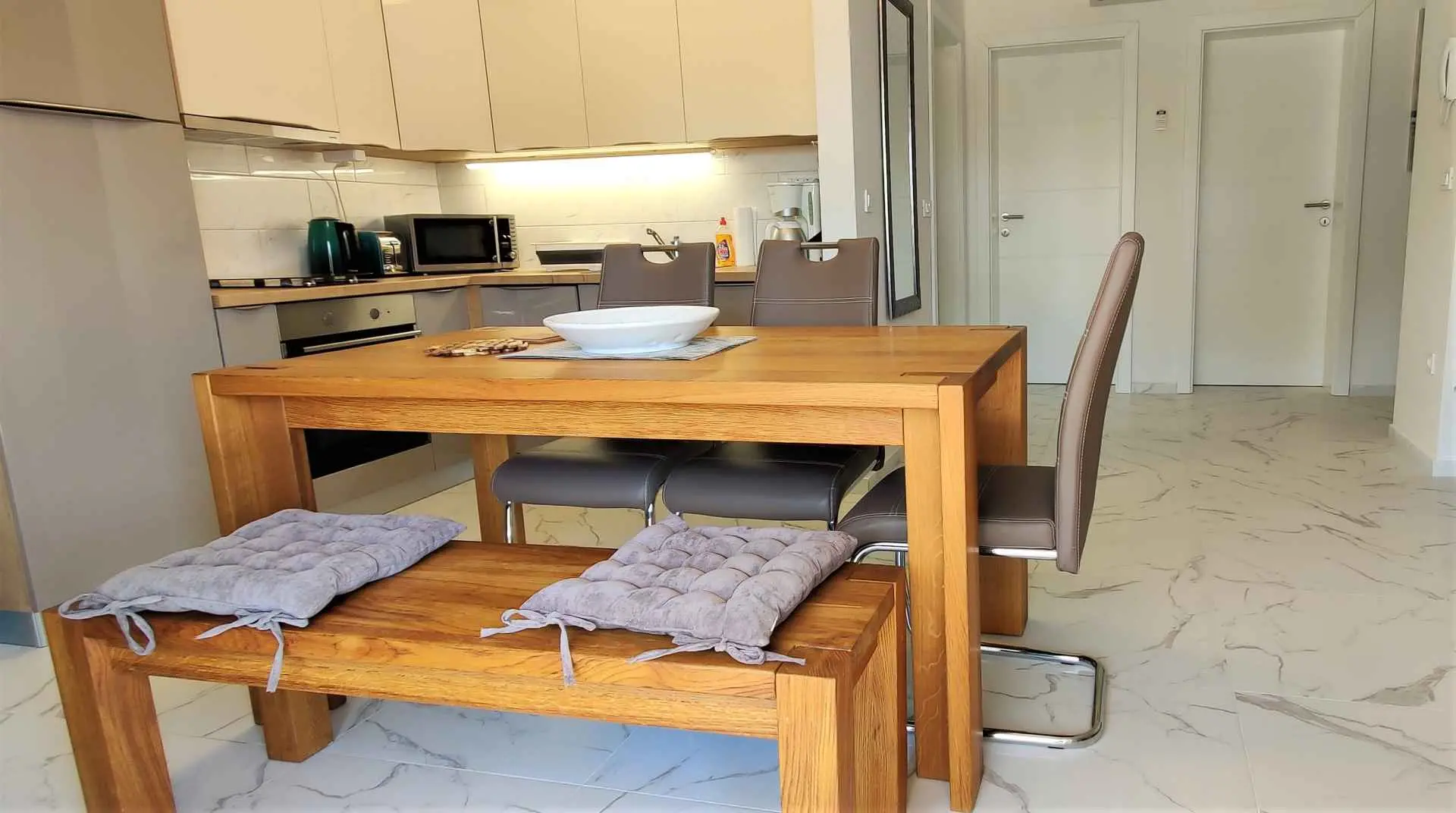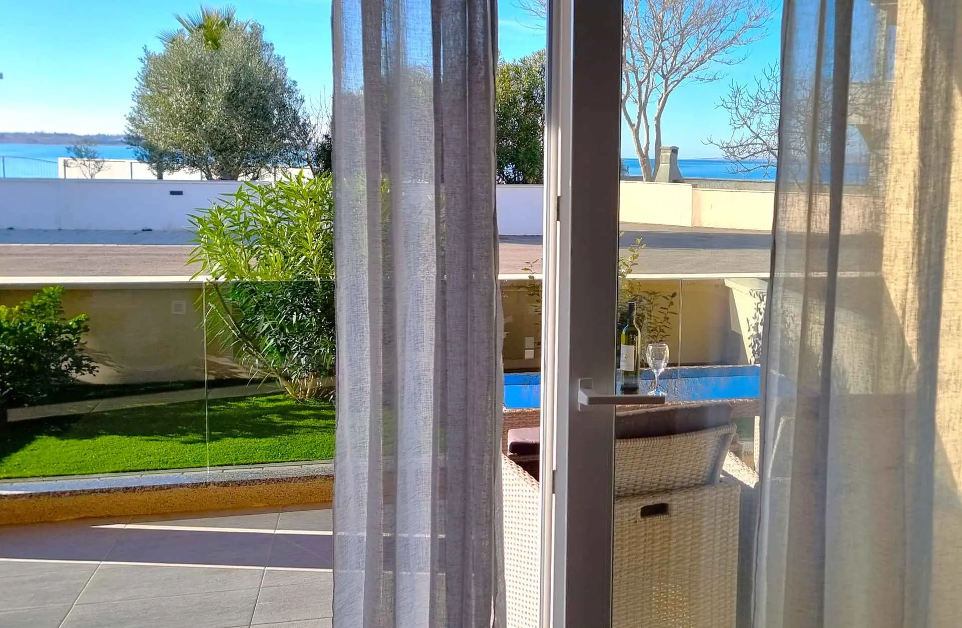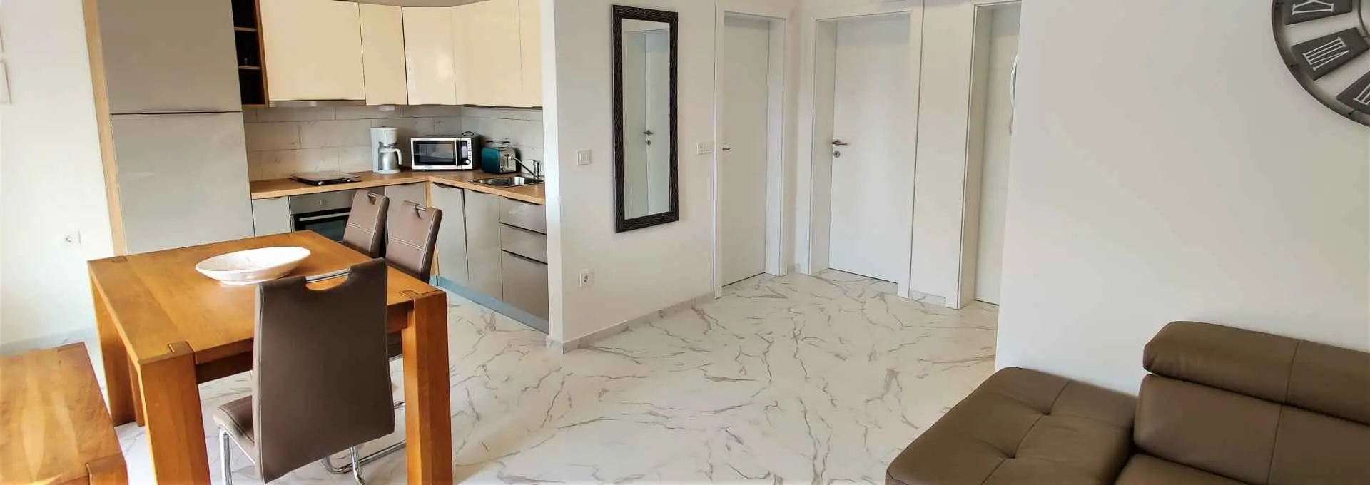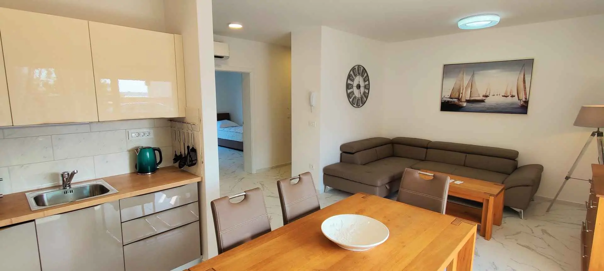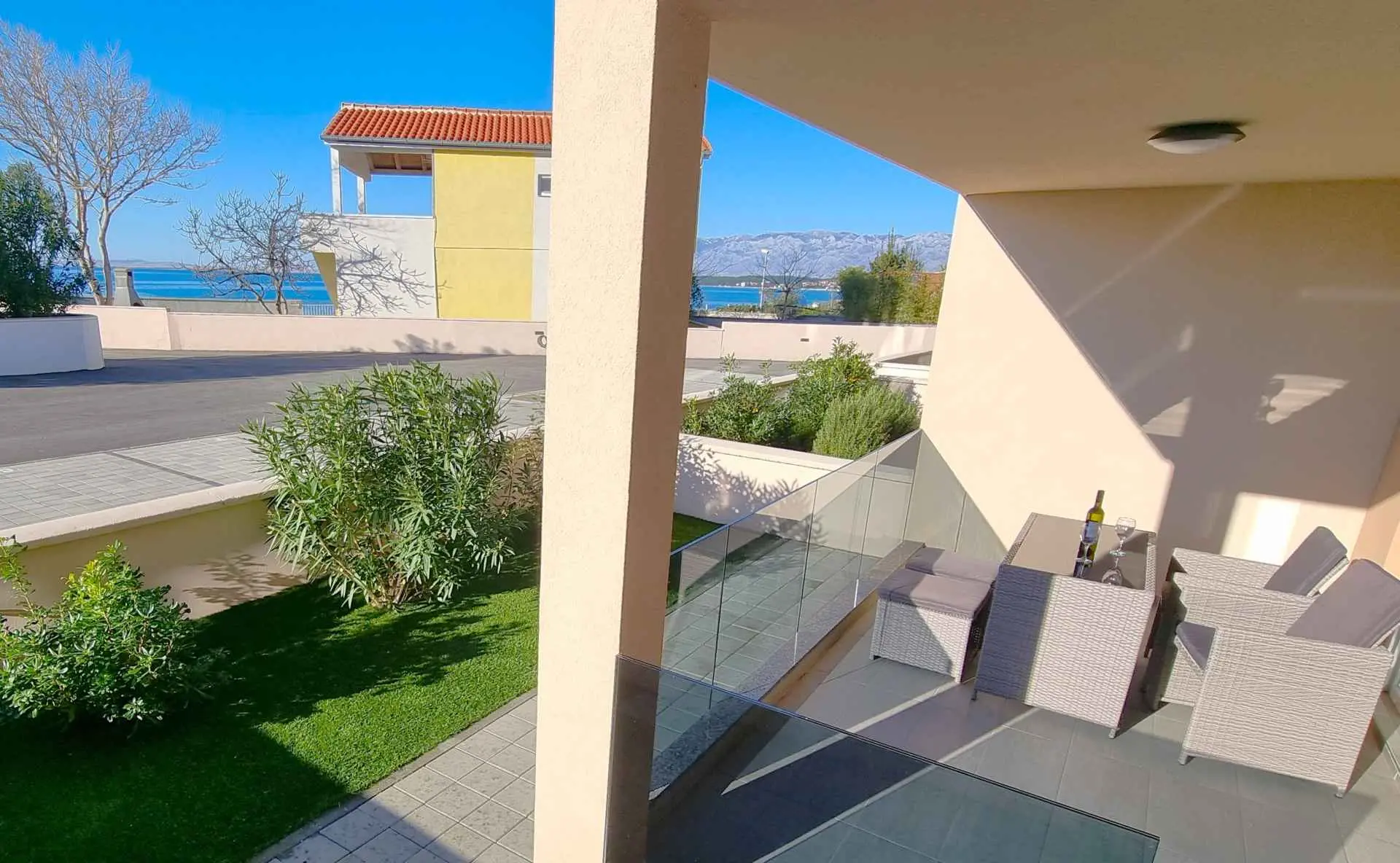Apartman "Le Mare" - NIN - 50 metara od mora - pješčana plaža (prizemlje, max. 4 osobe) Naš novi apartman "Le Mare" iz 2022. godine nalazi se na rubu naselja Nin i udaljen je cca 50 metara od pješčane plaže s Caffè barom. Također ima prekrasan pogled na planine "Velebit" i otok Pag. Ispred apartmana nalazi se privatni parking gdje naši gosti mogu parkirati svoj automobil. U dvorištu iza apartmana se nalaze ležaljke, kao i gril, stol i stolice. Sve sobe posjeduju klima uređaj. U kupaonici je perilica za rublje, a u kuhinja je potpuno opremljena. Sažetak najvažnijih stvari: Spavaća soba sa bračnim krevetom (180*200) Spavaća soba sa dva odvojena kreveta (90*200) kupaonica (tuš kabina) blagovaonica dnevna soba terasa sa pogledom na more parking u dvorištu mali vrt iza stana udaljenost od mora: cca 50 m, pješčana plaža posteljina uključena perilica rublja: da