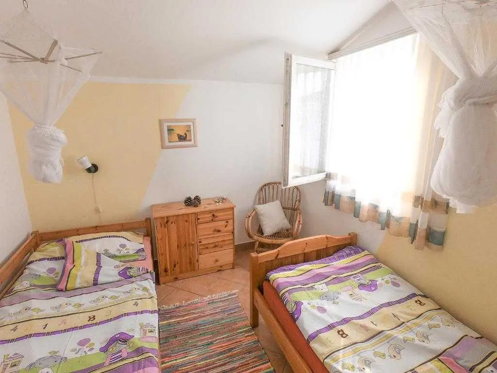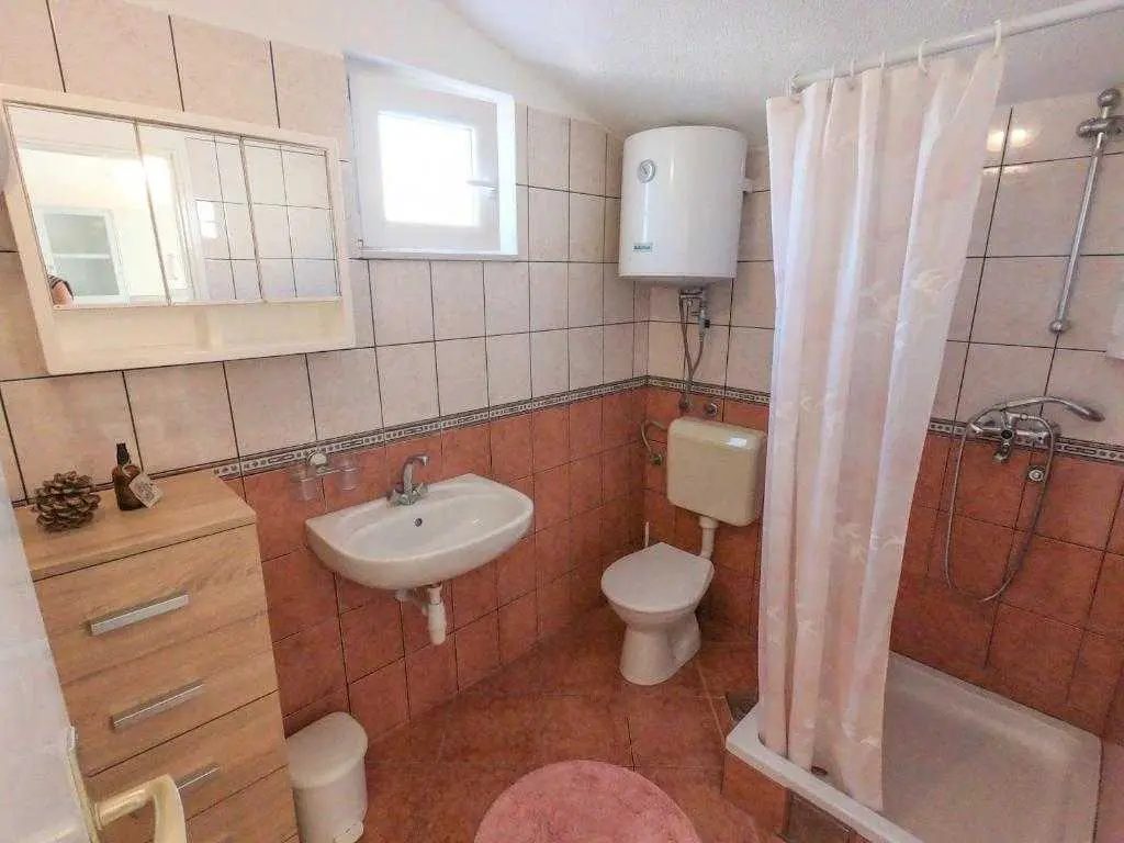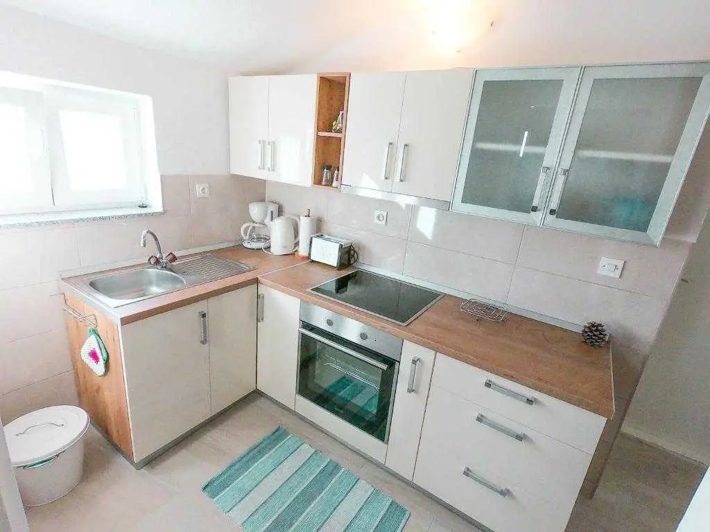 Apartman Zaton, za 4 osobe (max. 5 osoba ukoliko se radi o maloj djeci), u novoj kući 100m od mora, odmah pokraj Turističkog naselja Zaton te blizu grada Nina i Zadra. Potpuno opremljeni s klima uređajem u novo uređenoj kući, s pogledom na more i velikom terasom. Parking osiguran, prekrasna prirodna mala pješčana plaža te 10 minuta hoda do turističkog naselja Zaton. Iza kuće nalazi se mali medicinski vrt i livade s mirisima mediterana. Cijena po noćenju 95€ (01.07. - 31.08.), 85€ (01.06. - 30.06. & 01.09. - 30.09.) plus turistička taksa (1,5 EUR po osobi iznad 12 godina starosti). U apartmanu nije dostupna WIFI mreža. Mi se brinemo za okoliš i plastićno onečišćenje mora, pa je tako apartman opremljen kompostabilnim biorazgradivim vrećicama za smeće, te ekološkim sredstvima za čišćenje.