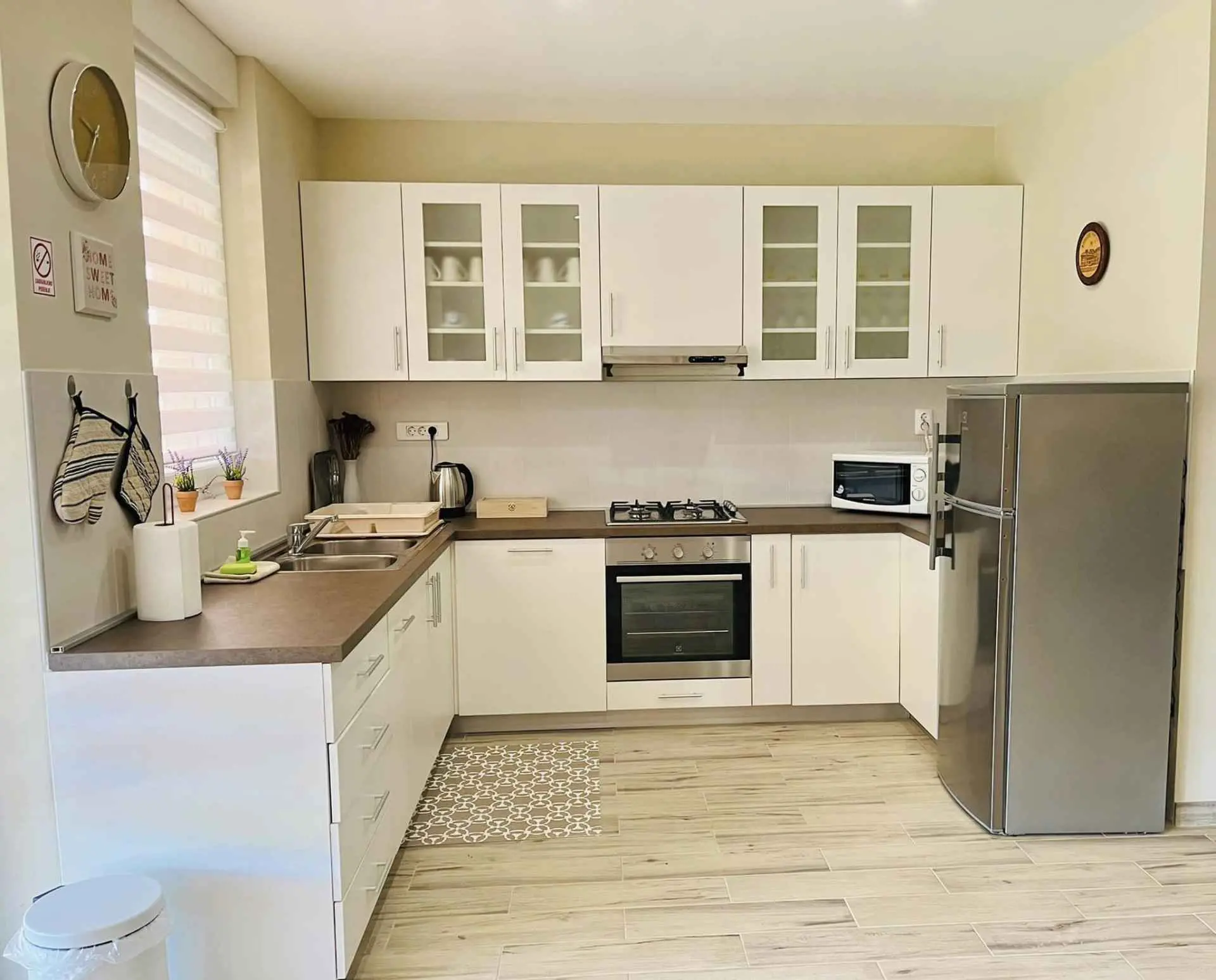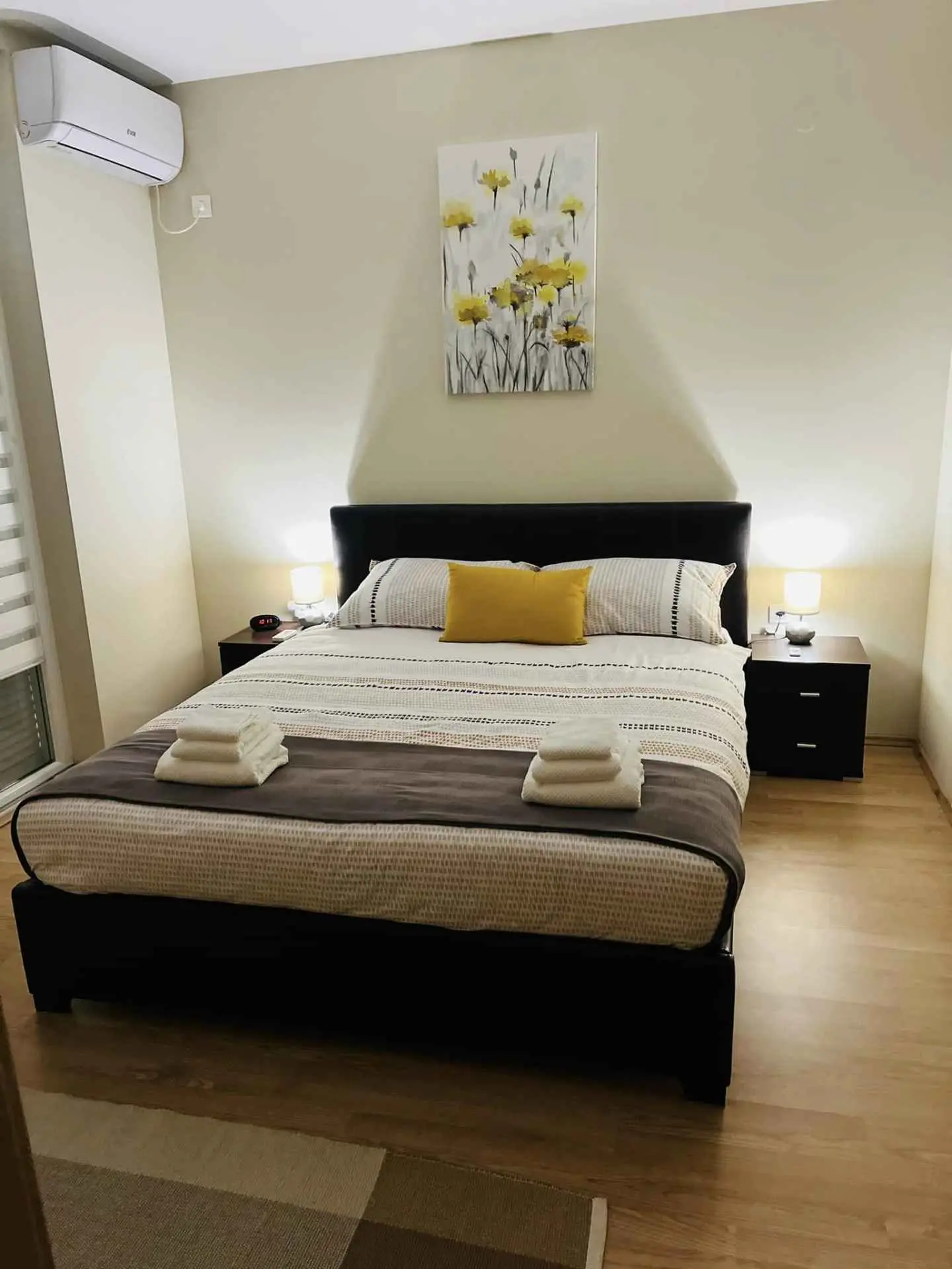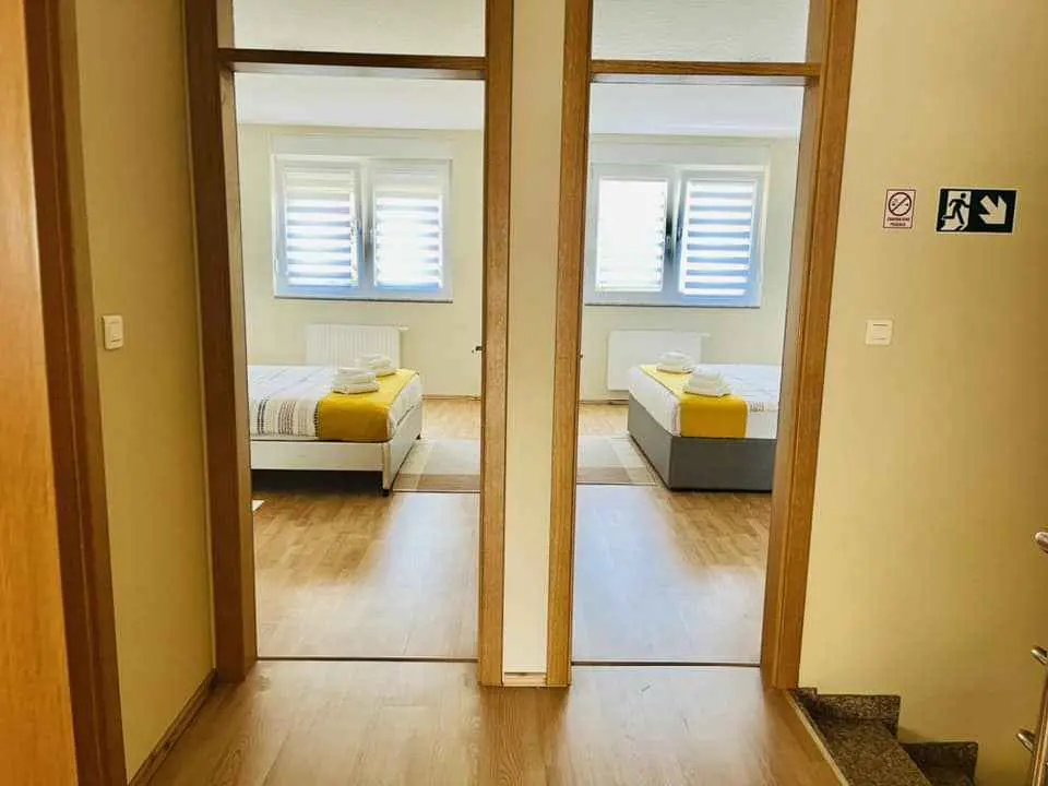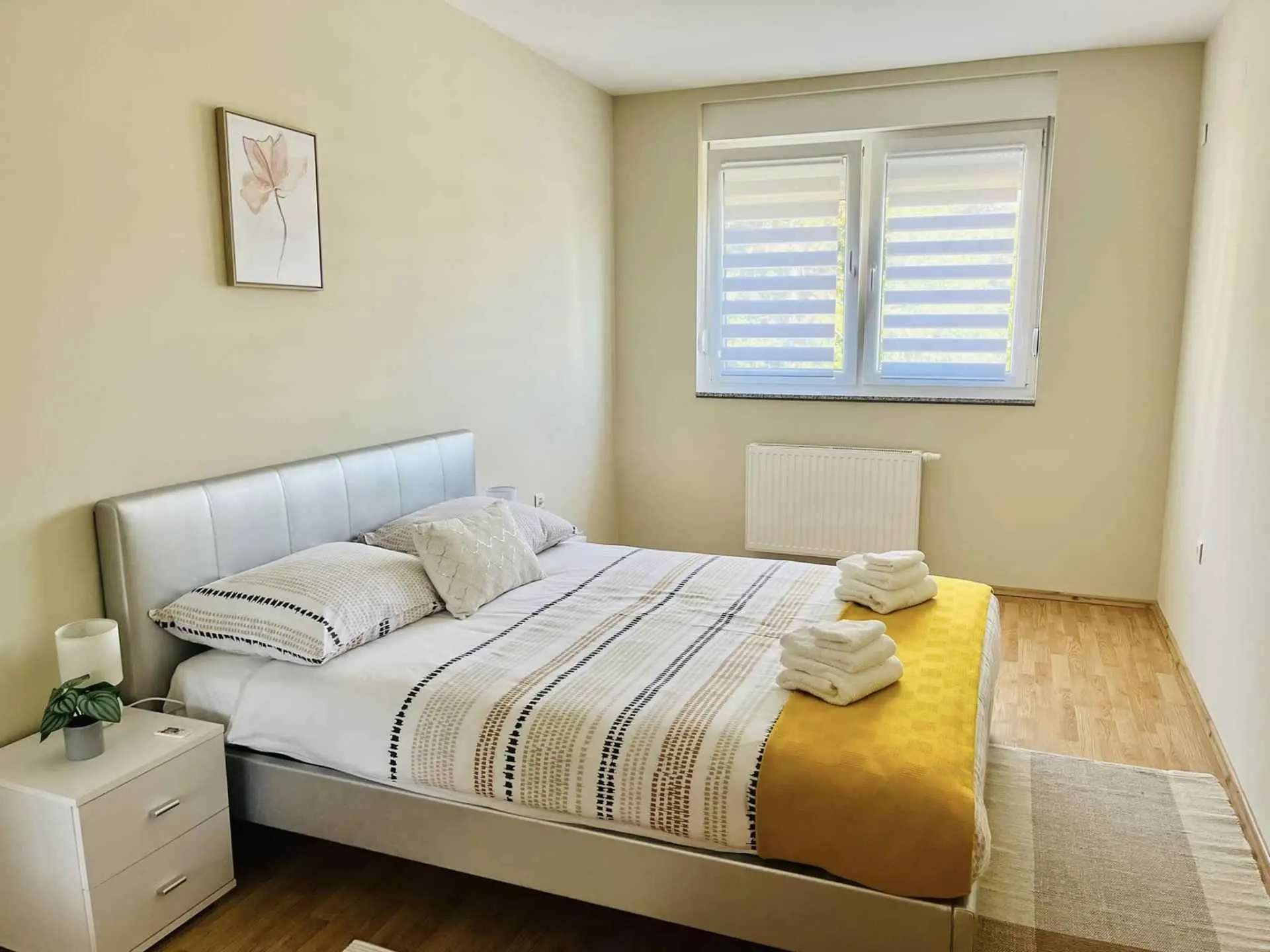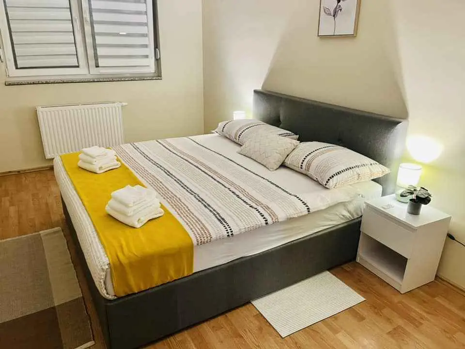 Apartman u jako mirnom dijelu Osijeka. Daleko od buke i guzve ali blizu centru , restoranima i trgovackim centrima. Stan ima tri spavace sobe, balkon,dvije kupaone, tri WC-a,garazu i jos dva mjesta za parkiranje pred kucom. Veliki dnevni boravak, opremljenu kuhinju, veliku terasu u dvoristu, rostilj. Sve je na raspolaganju za ugodan boravak u nasoj prelijepoj Slavoniji.