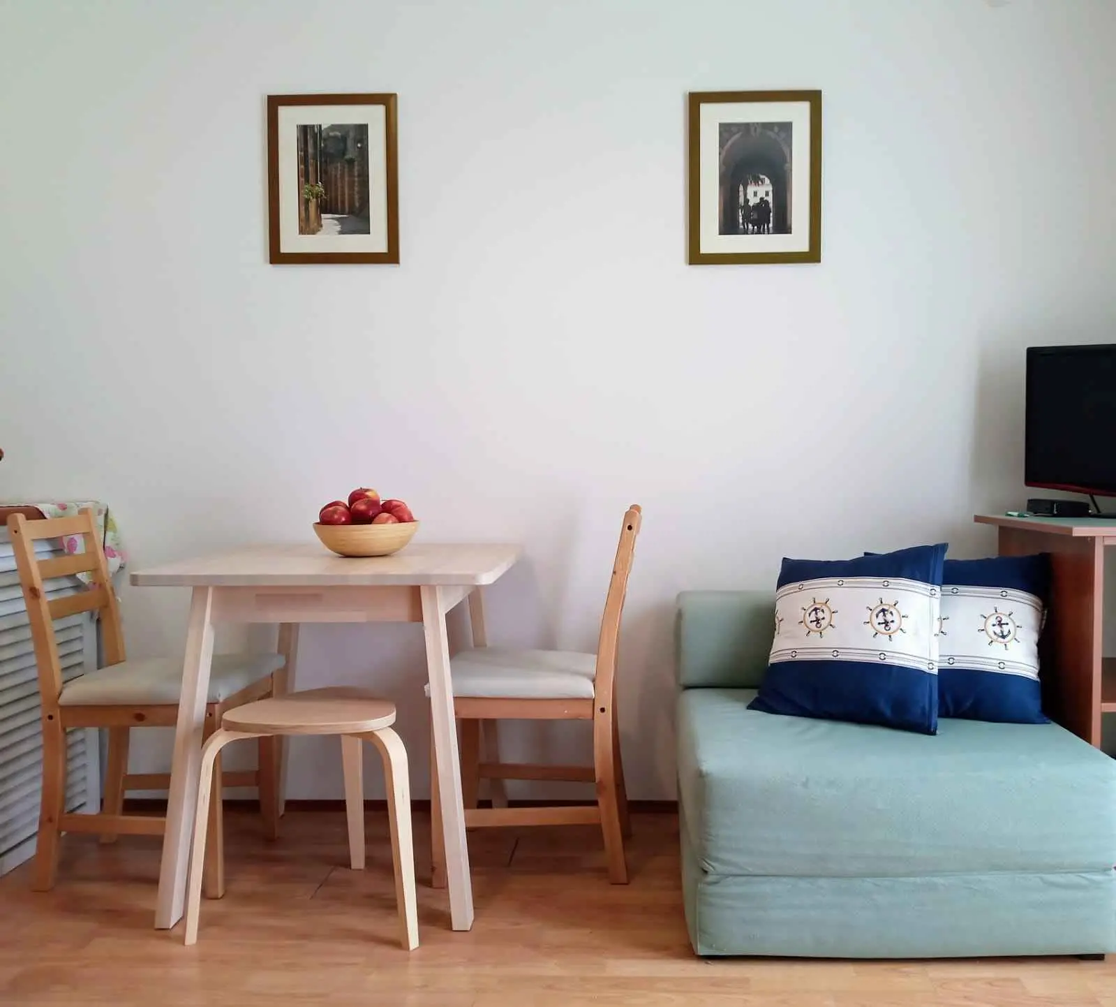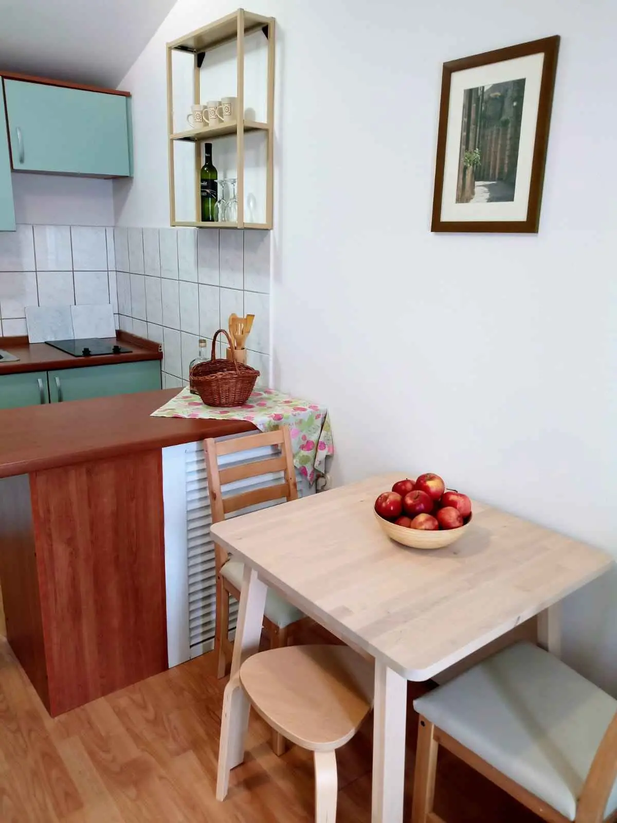 Apartmani se nalaze u maloj uvali Proboj, samo 70 metara udaljen od mora, i oko 100 metara do prve plaže. Udaljen je 4 km od prve trgovine u Košljunu i oko 25 km udaljeno od Novalje-Zrća te 66 km od zračne luke u Zadru. U sklopu apartmana je spavaća soba sa bračnim krevetom, kupaonica sa tučem te kuhinja i dnevni boravak sa krevetom na razvlačenje. U sklopu apartmana je i prekrasna terasa površine oko 12 kvadrata s pogledom na more. Apartman i samo mjesto idealno je za boravak obitelji s malom djecom, zbog blizine plaže, mira koji mjesto nudi i blizine okolnih uvala koje se mogu posjetiti čamcem. U sklopu najma apartmana postoji mogućnost iznajmljivanja veza za čamac za vrijeme boravka u apartmanu. Parkirno mjesto dostupno je uz obalu, samo 60 metara od apartmana.