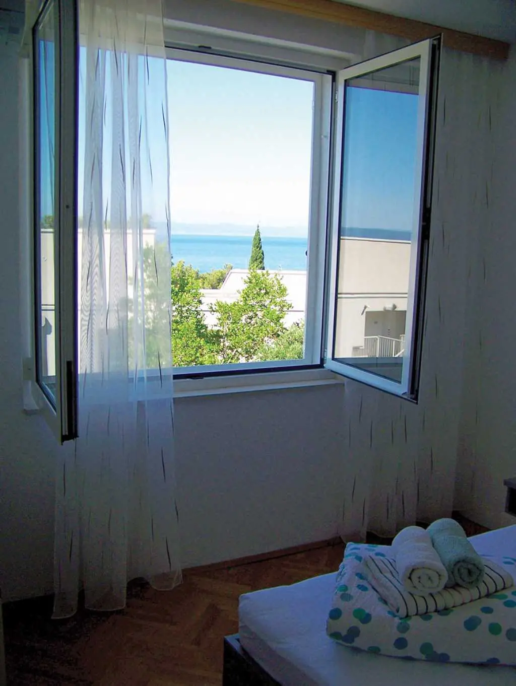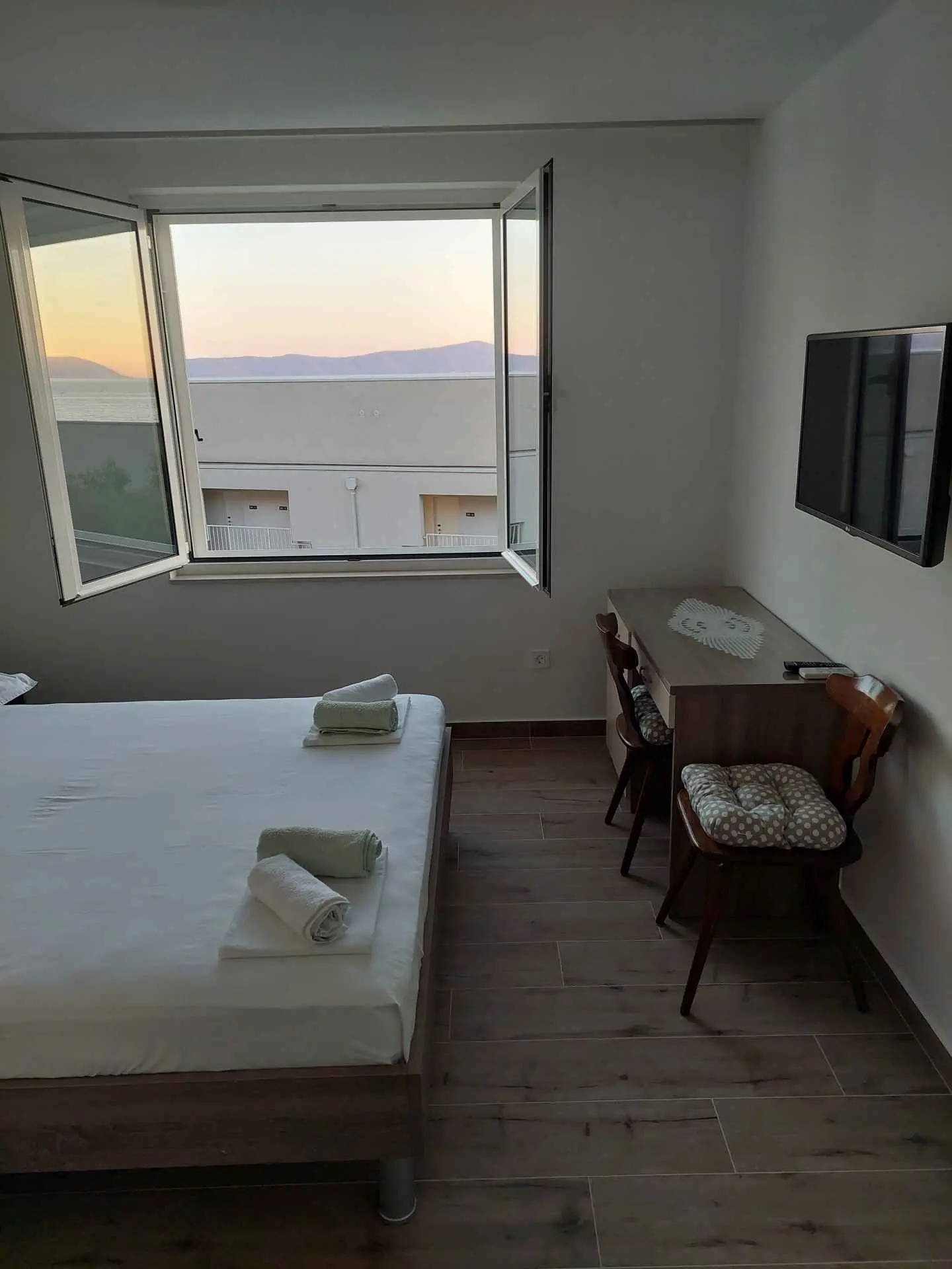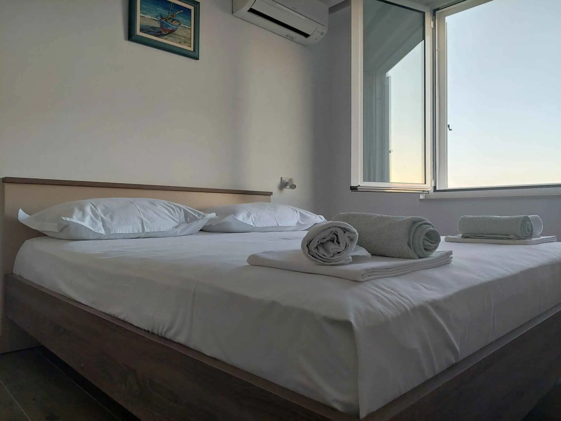 Naš apartman se nalazi u centru mjesta na mirnoj i tihoj lokaciji. Plaža je udaljena 70 m, a najbliža trgovina 50 m. Nudimo vam lijepo i čisto mjesto za boravak, opremljeno sa svime što je potrbno za odmor. Nudimo besplatan wi - fi, tv, dva klima uređaja sa zasebnim uravljačima, te osiguran parking. Kuhinja je opremljena sa štednjakom, pećnicom, hladnjakom malim zamrzivaćem i kuhalom za vodu. Također, ako vam što drugo zatreba, pokušat ćemo vam pomoći. Apartman ima zaseban ulaz i mali balkon sa kojega se pruža djelomičan pogled na more. Apartman je je za 4 osobe, ali može stati 5 osoba.