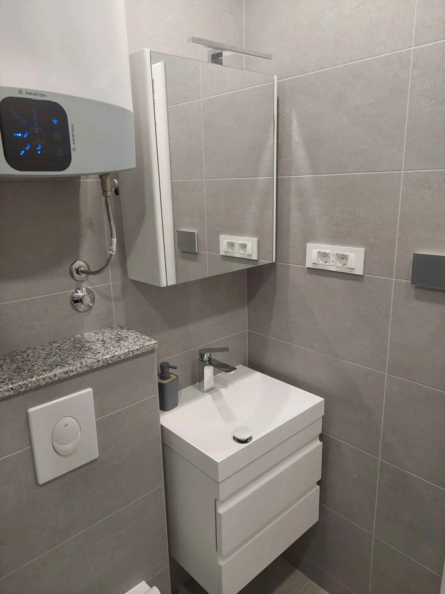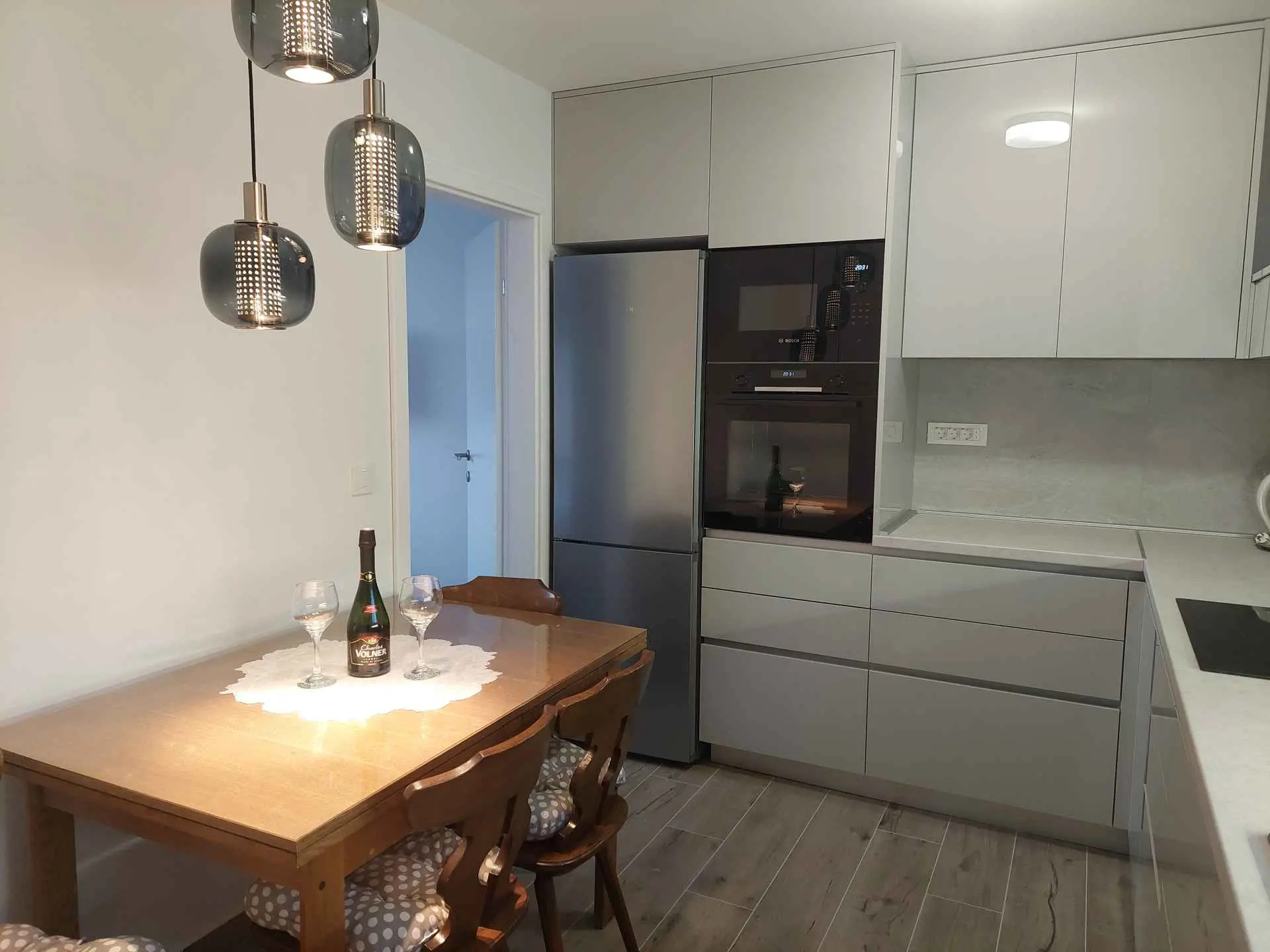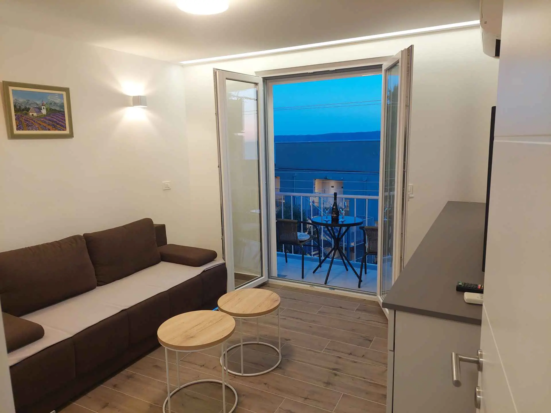 Naš apartman se nalazi u centru mjesta na mirnoj i tihoj lokaciji. Plaža je udaljena 70 m, a najbliža trgovina 50 m. Nudimo vam lijepo i čisto mjesto za boravak, opremljeno sa svime što je potrbno za odmor. Nudimo besplatan wi - fi, tv, dva klima uređaja sa zasebnim uravljačima, te osiguran parking. Kuhinja je opremljena sa štednjakom, pećnicom, hladnjakom malim zamrzivaćem i kuhalom za vodu. Također, ako vam što drugo zatreba, pokušat ćemo vam pomoći. Apartman ima zaseban ulaz i mali balkon sa kojega se pruža djelomičan pogled na more. Apartman je je za 4 osobe, ali može stati 5 osoba.