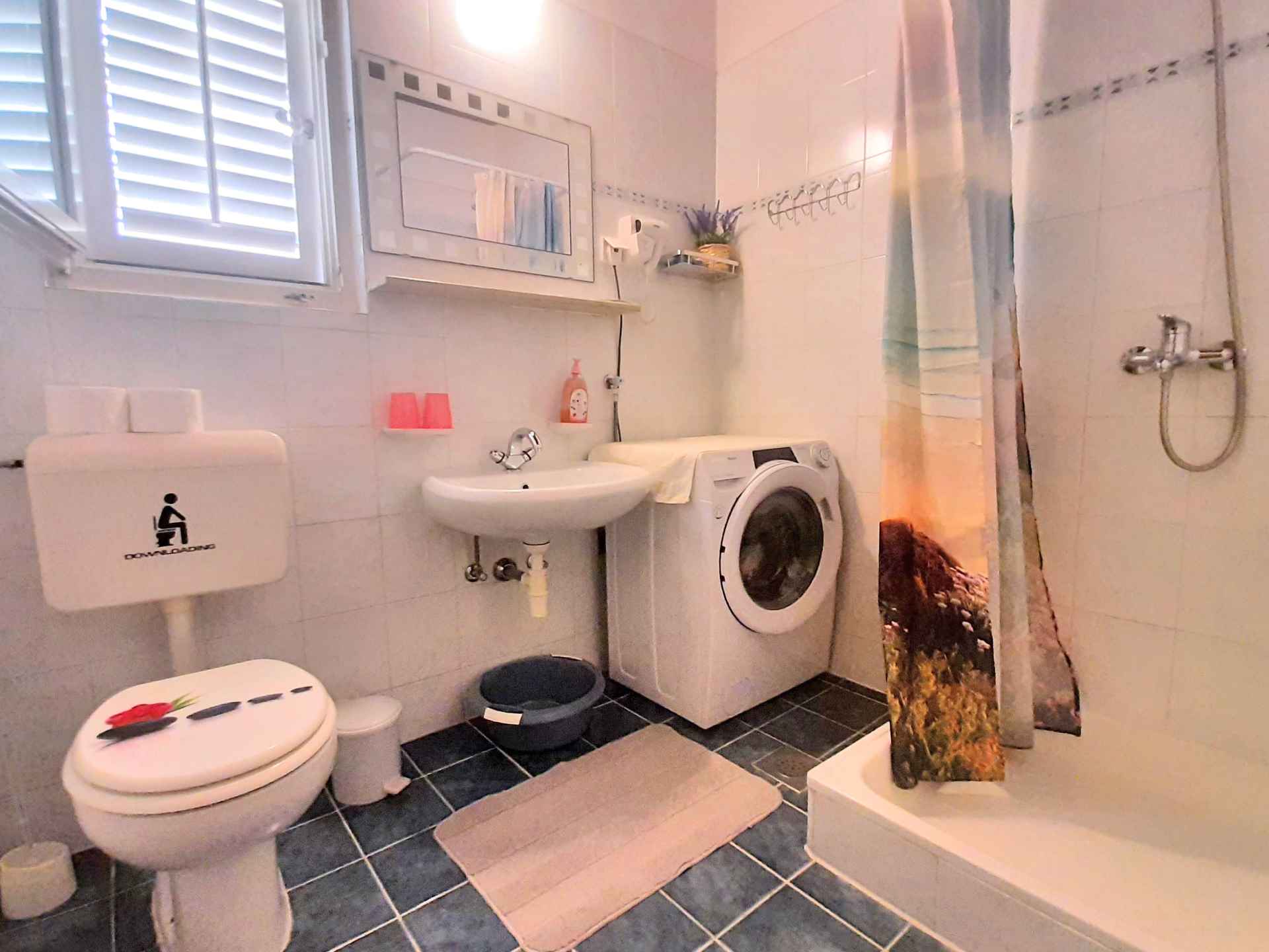 Kuća s 4 apartmana blizu mora, oko 450 m od mora i od centra grada (oko 5-8 minuta pješke, i bez korištenja automobila), s dvorištem i terasama u vrtu s grilom, privatni parking ispred kuće, prvi kat, s klimom, besplatbi WiFi (WLAN) internet, privatni sef u apartmanu, SAT TV. Jedan apartman tip B5 za 4-6 osoba, s 2 spavaće sobe i dnevnim boravkom. Jedan apartman tip B4 za 3-5 osoba, s 2 spavaće sobe. Jedan apartman tip A3 za 2-4 osoba, s 1 spavaćom sobom i dnevnim boravkom. Jedan apartman tip A3 za 2-3 osoba, s 1 spavaćom sobom i dnevnim boravkom.