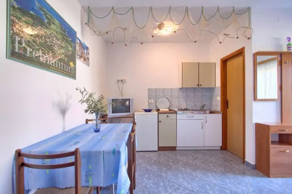 Naša obiteljska kuća nalazi se na mirnoj lokaciji blizu centra Premanture. Od trgovine je udaljena oko 100 m, a od centra sela oko 300 m. More je udaljeno oko 400 m, a u blizini se nalazi rt. Kamenjak, park prirode, sa preko 20 km obale i predivnih plaža. Objekt je star 7 godina i ima 5 smještajnih jedinica, 4 studija i jedan apartman. Svaki studijo i apartman je opremljen sa klima uređajem i SAT/TV, posuđem te posteljinom. Svaki studijo i apartman imaju svoju terasu sa stolom i stolicama. Kuća ima vlastito dvorište, parking je osiguran unutar dvorišta, a moguća je upotreba roštilja.
