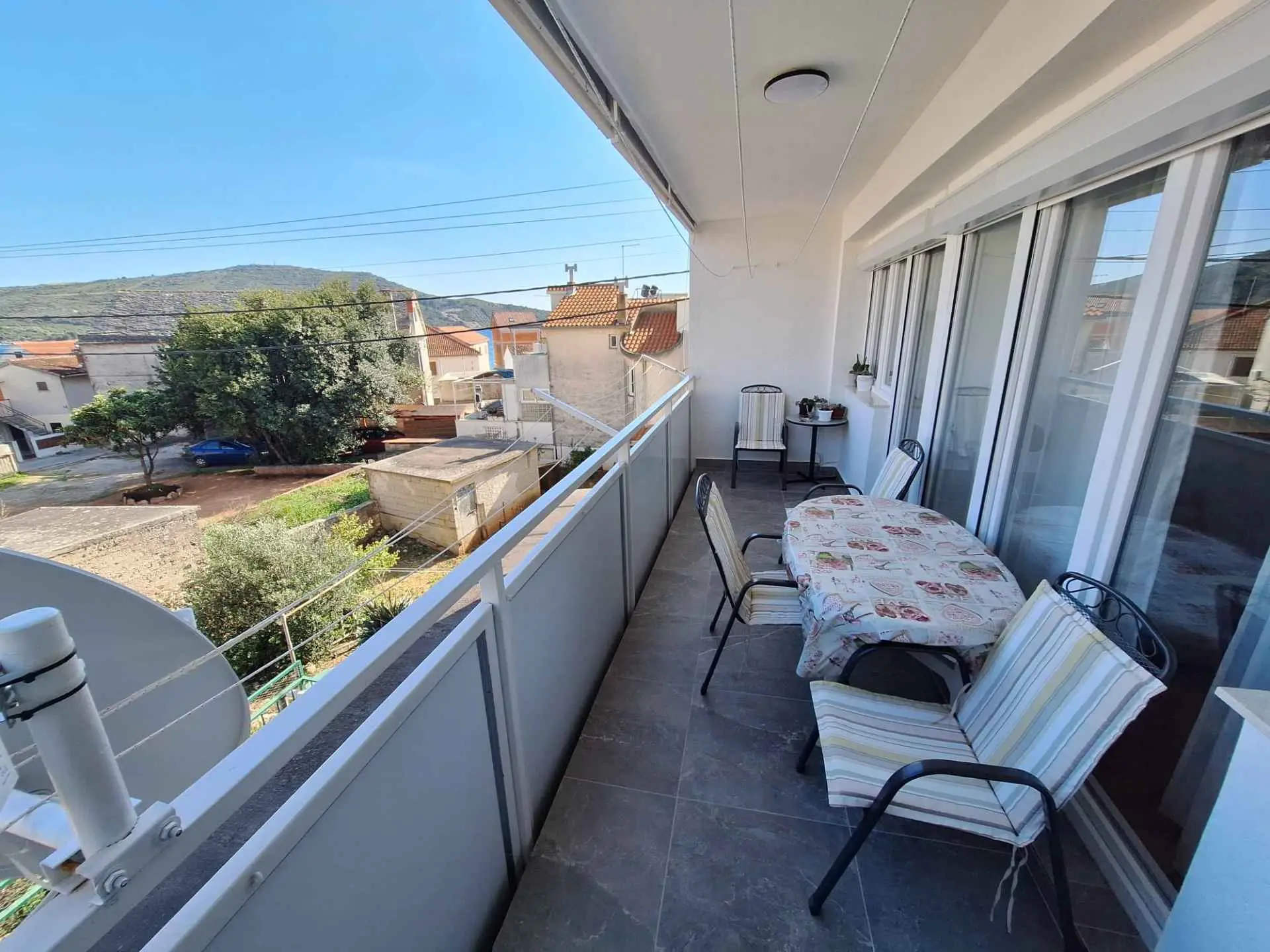 Apartman Doris (4+2 osoba, 85 m2) se nalazi u neposrednoj blizini samog centra Primoštena i udaljen je nepunih 50 metara od plaže. Nalazi se na prvom katu zgrade i sastoji se od kuhinje i blagavaonice, odvojenog velikog dnevnog boravka, dviju spavaćih soba, kupatila, wc-a i velikog balkona sa otvorenim pogledom. Minimalan boravak u apartmanu su 7 noći. Pušenje dozvoljeno.
