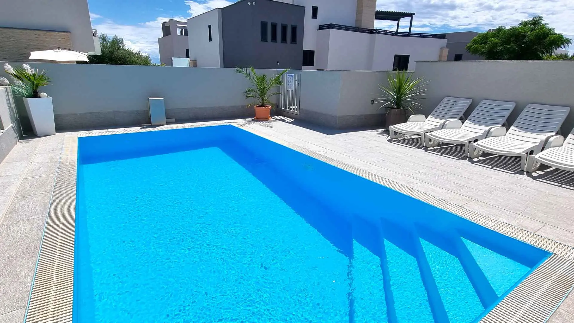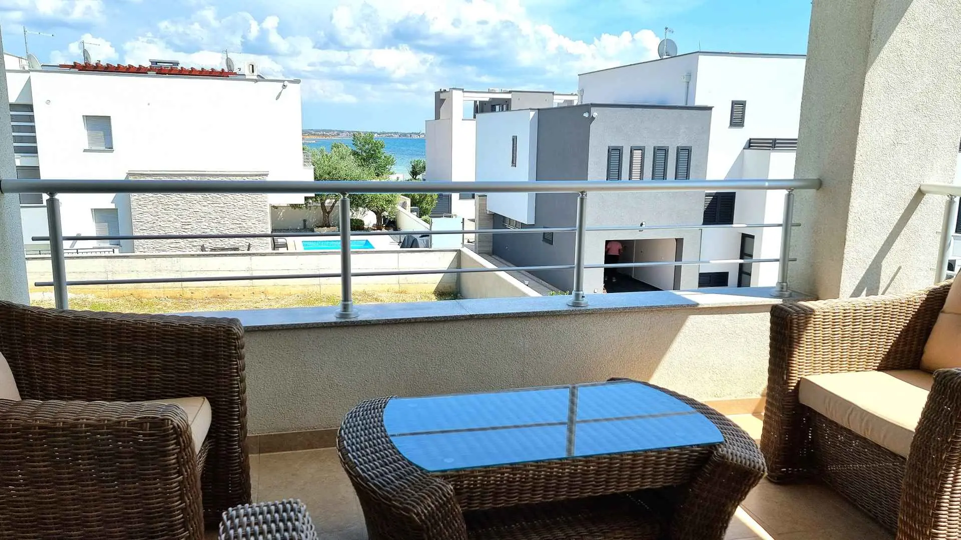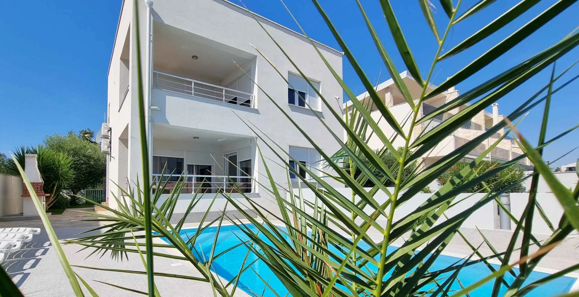 Kuća za odmor je sagrađena 2016. godine i nalazi se u sjevernoj Dalmaciji, na samoj obali Jadranskog mora u Privlaci, 16 km od grada Zadra, oko 250 metara od plaže i sa djelimicnim pogledom na more. Vila nudi sve pogodnosti možete poželjeti. Kuća ima 160 kvadratnih metara stambenog prostora, a sastoji se od dva odvojena stana. Prvi apartman se nalazi u prizemlju i sadrži dvije spavaće sobe, kupaonicu, nišu i dnevni boravak s izlazom na terasu s pogledom na more. Drugi stan je jedan kat gore, posjeduje takodjer dvije spavace sobe, veliki dnevni boravak sa trpezarijom i kuhinjom te terasu sa pogledom na more. Potpuno opremljene kuhinje, sve kupaonice i otvoreni dnevni boravak. U dvorištu su na raspolaganju dva parkinga za naše goste. U vrtu se nalazi bazen te otvoreni tuš s hladnom-toplom vodom. Kuća sa dva odvojena stana, max. 8 osoba, klima-uređaj, satelitska TV, natkrivena terasa / balkon /, bazen, vrt, roštilj, bežični internet, parking u dvorištu. Luksuzna nova kuća za odmor s prekrasnim pogledom na more i lijepom okruženju u malom mjestu Privlaka. Kuća je idealna za užitak, odmor i opuštanje... Područje je poznato po svojim prekrasnim pješčanim plažama i uvalama. Plaže su uglavnom prekrivene sitnim pijeskom i vrlo plitke, što je posebno cijenjeno od strane obitelji s malom djecom. Osim toga, plaže su daleko od glavnih prometnica i tako osiguravaju mir i samoću a to za odmor puno znači. Čist zrak i ljekovito crno blato u Privlaci je vrlo privlačno za ljude koji imaju zdravstvenih problema, kao što su astma, reumatizam i artritis.
