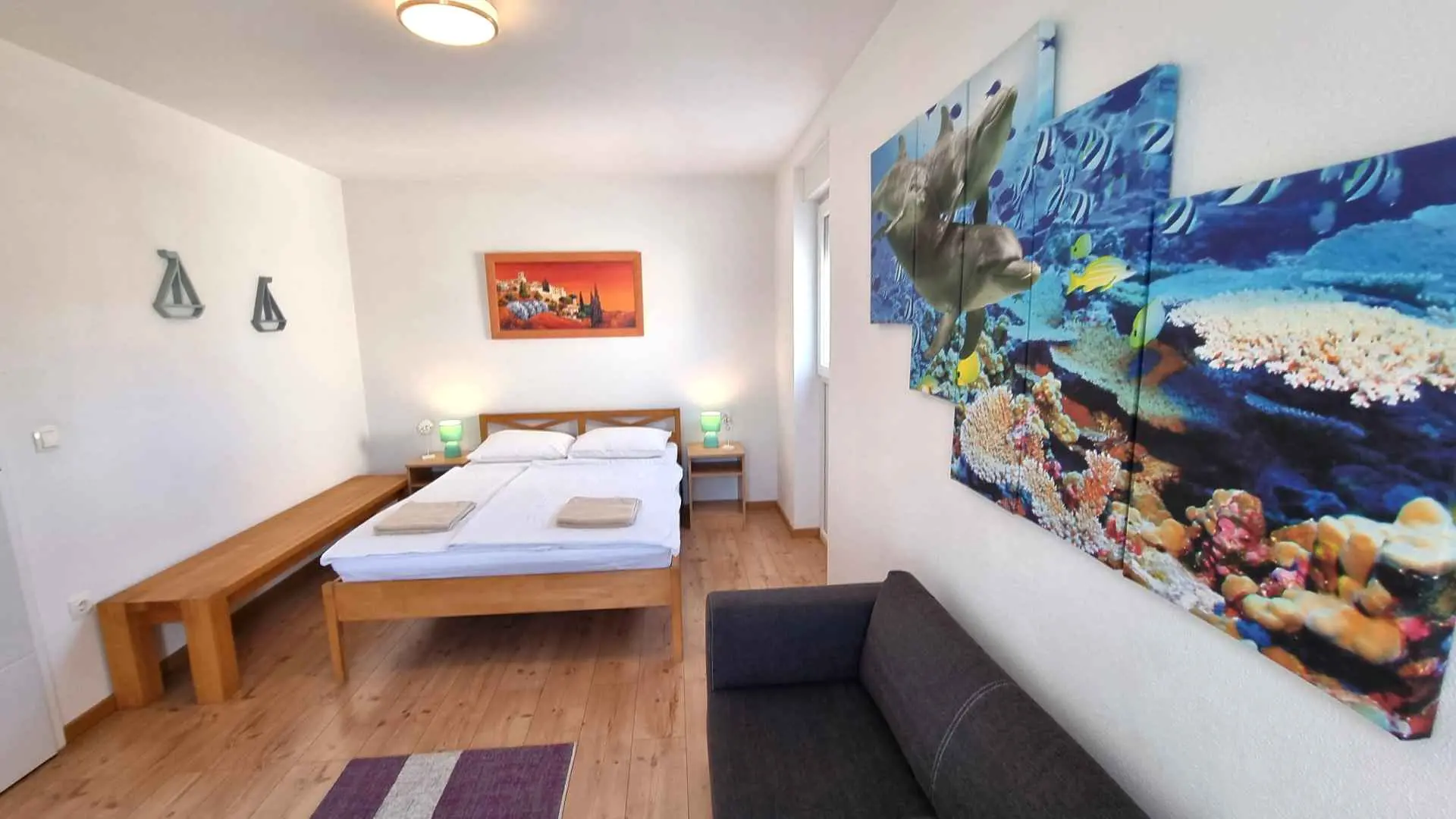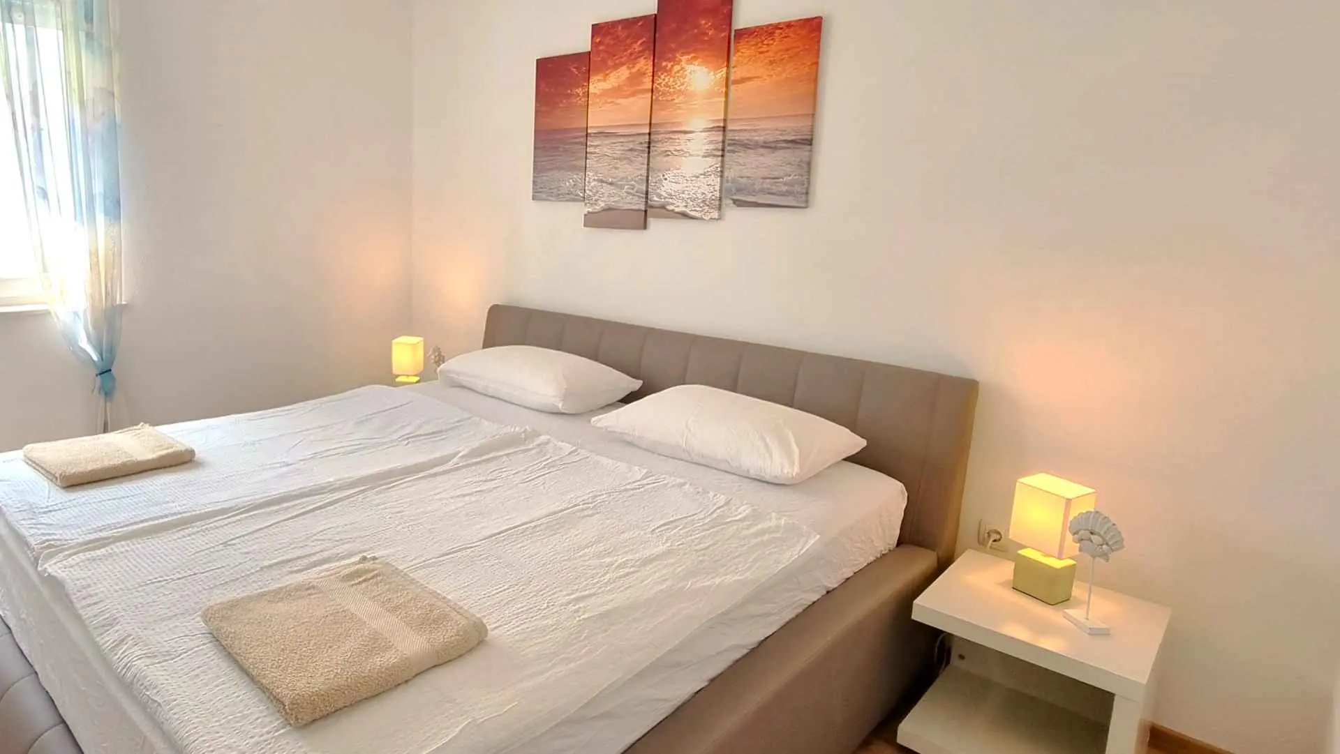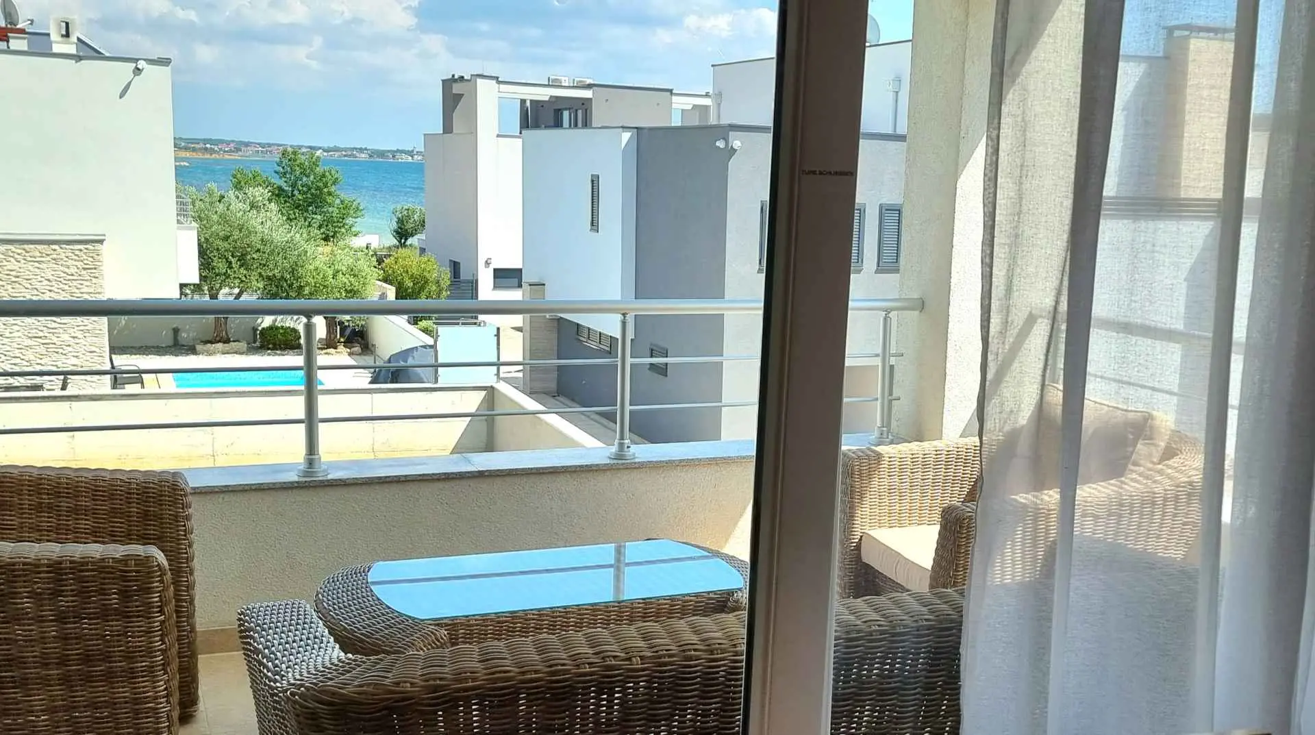 Kuća za odmor je sagrađena 2016. godine i nalazi se u sjevernoj Dalmaciji, na samoj obali Jadranskog mora u Privlaci, 16 km od grada Zadra, oko 250 metara od plaže i sa djelimicnim pogledom na more. Vila nudi sve pogodnosti možete poželjeti. Kuća ima 160 kvadratnih metara stambenog prostora, a sastoji se od dva odvojena stana. Prvi apartman se nalazi u prizemlju i sadrži dvije spavaće sobe, kupaonicu, nišu i dnevni boravak s izlazom na terasu s pogledom na more. Drugi stan je jedan kat gore, posjeduje takodjer dvije spavace sobe, veliki dnevni boravak sa trpezarijom i kuhinjom te terasu sa pogledom na more. Potpuno opremljene kuhinje, sve kupaonice i otvoreni dnevni boravak. U dvorištu su na raspolaganju dva parkinga za naše goste. U vrtu se nalazi bazen te otvoreni tuš s hladnom-toplom vodom. Kuća sa dva odvojena stana, max. 8 osoba, klima-uređaj, satelitska TV, natkrivena terasa / balkon /, bazen, vrt, roštilj, bežični internet, parking u dvorištu. Luksuzna nova kuća za odmor s prekrasnim pogledom na more i lijepom okruženju u malom mjestu Privlaka. Kuća je idealna za užitak, odmor i opuštanje... Područje je poznato po svojim prekrasnim pješčanim plažama i uvalama. Plaže su uglavnom prekrivene sitnim pijeskom i vrlo plitke, što je posebno cijenjeno od strane obitelji s malom djecom. Osim toga, plaže su daleko od glavnih prometnica i tako osiguravaju mir i samoću a to za odmor puno znači. Čist zrak i ljekovito crno blato u Privlaci je vrlo privlačno za ljude koji imaju zdravstvenih problema, kao što su astma, reumatizam i artritis.