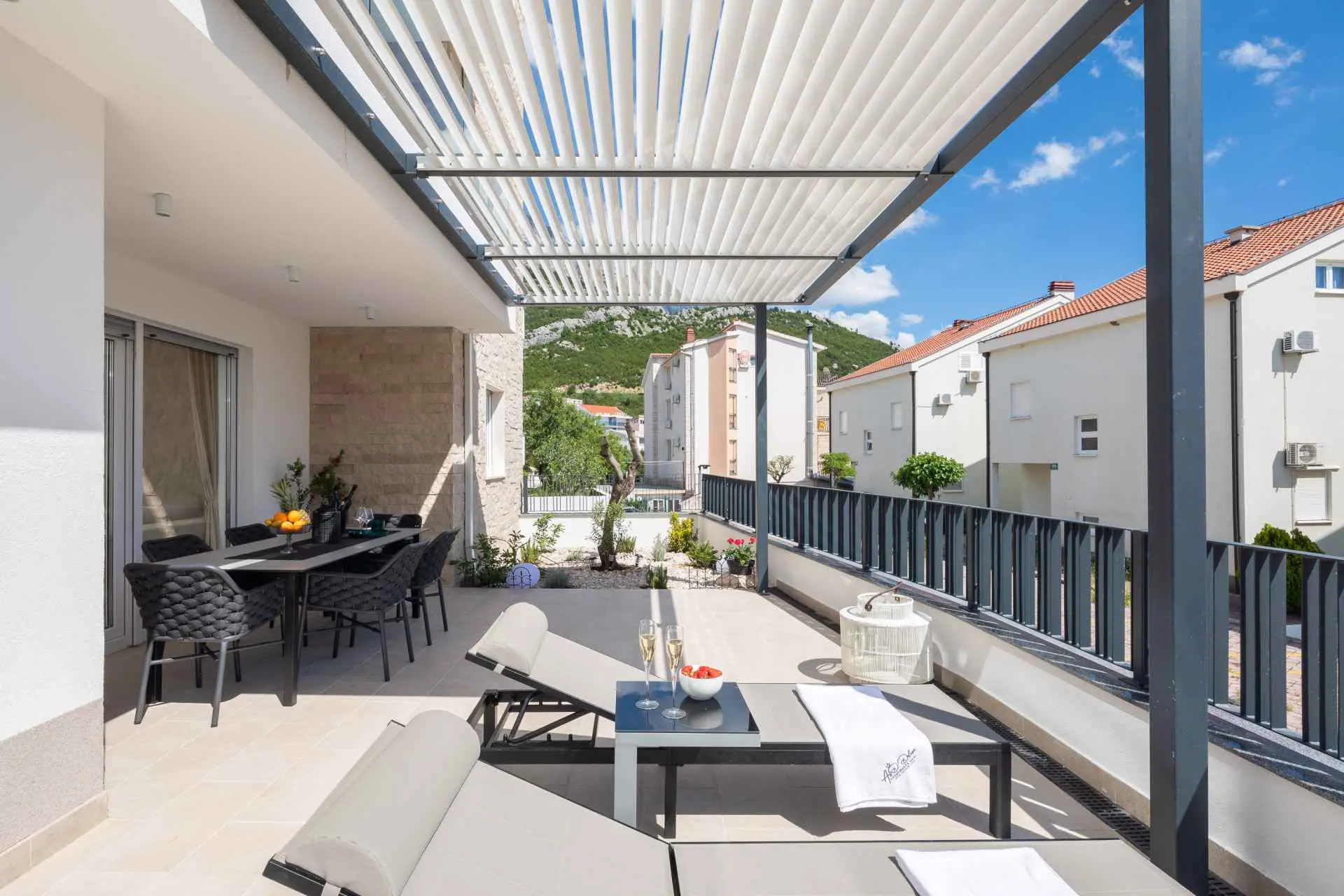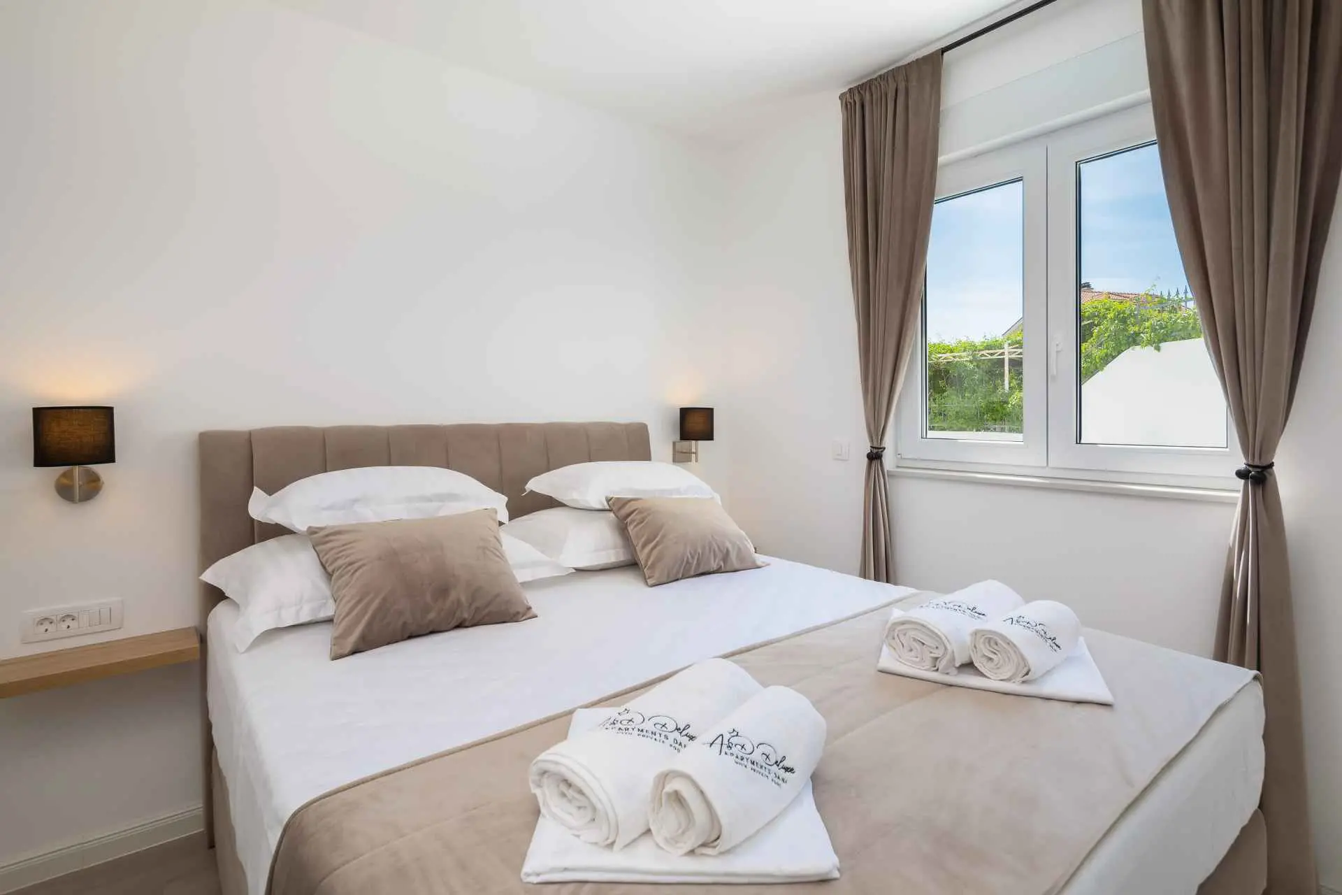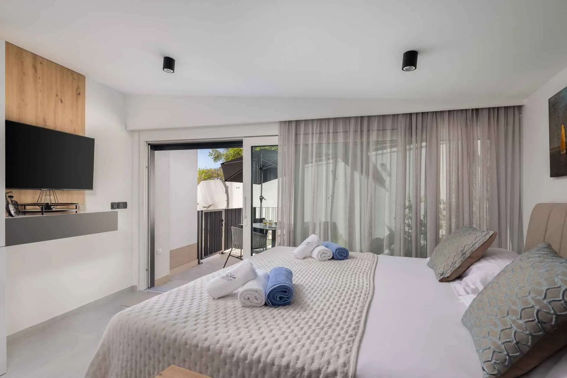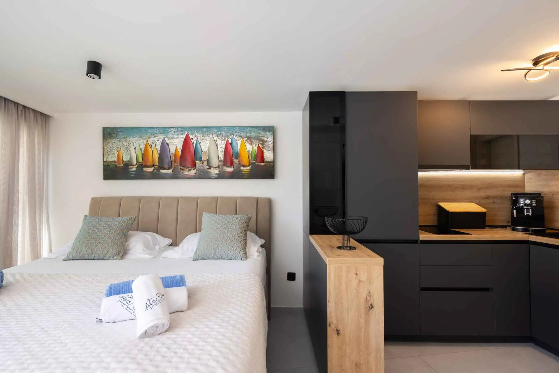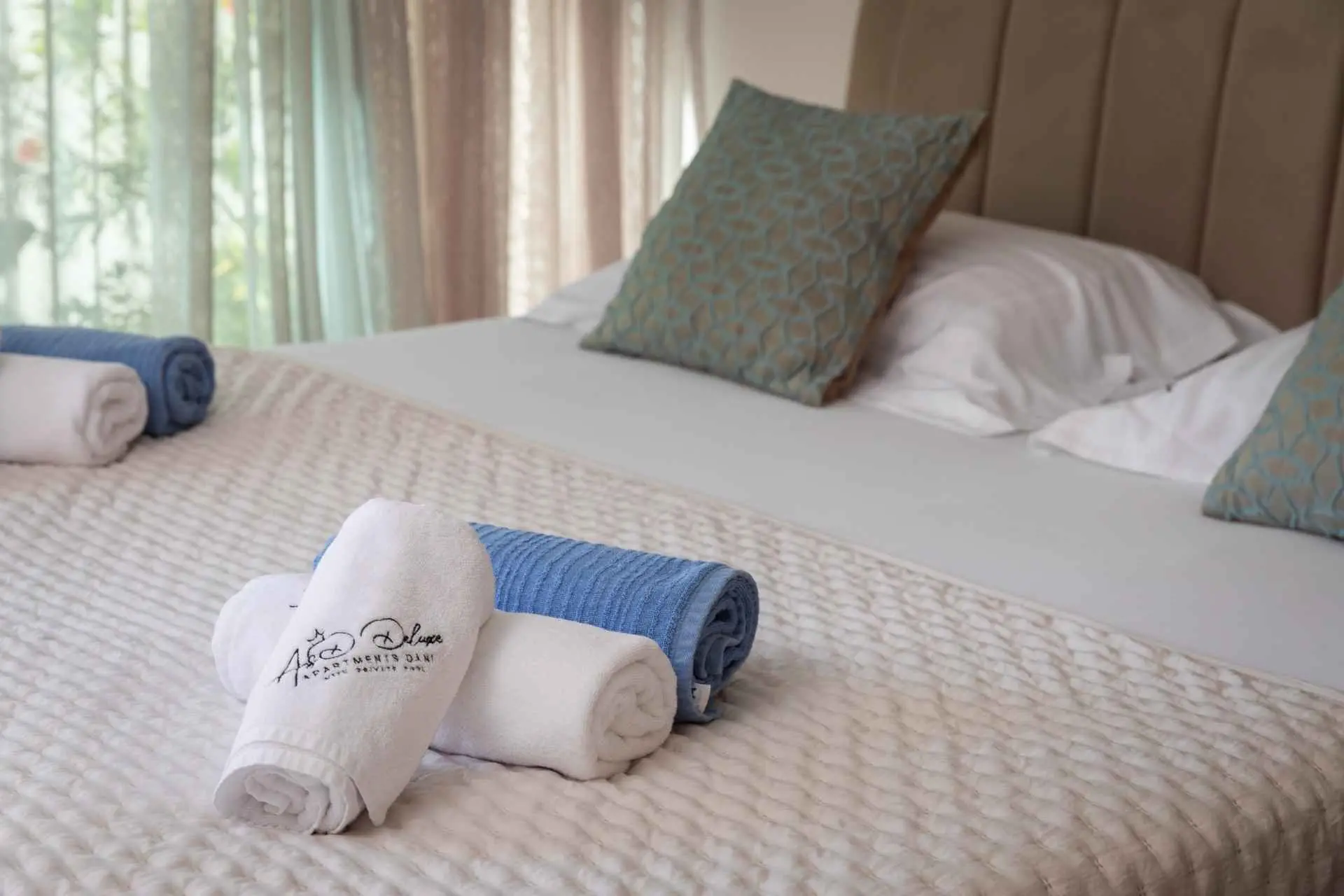 Dobrodošli u A&D Deluxe apartmane. Naš objekt nudi tri elegantna i pomno dizajnirana apartmana za vaš boravak. Uživajte u privatnosti vlastitog balkona ili terase i uživajte u okolnoj ljepoti. Naši apartmani imaju potpuno opremljene kuhinje s aparatom za kavu i perilicom posuđa. Moderne kupaonice s perilicama rublja dodaju dodatnu razinu udobnosti. Osvježite se u bazenu s ležaljkama i suncobranima koji su na raspolaganju našim gostima. Besplatni privatni parking je dostupan ispred objekta. Plaža je udaljena 300 metara. Otkrijte savršen spoj luksuza, udobnosti i pogodnosti u A&D Deluxe Apartments.