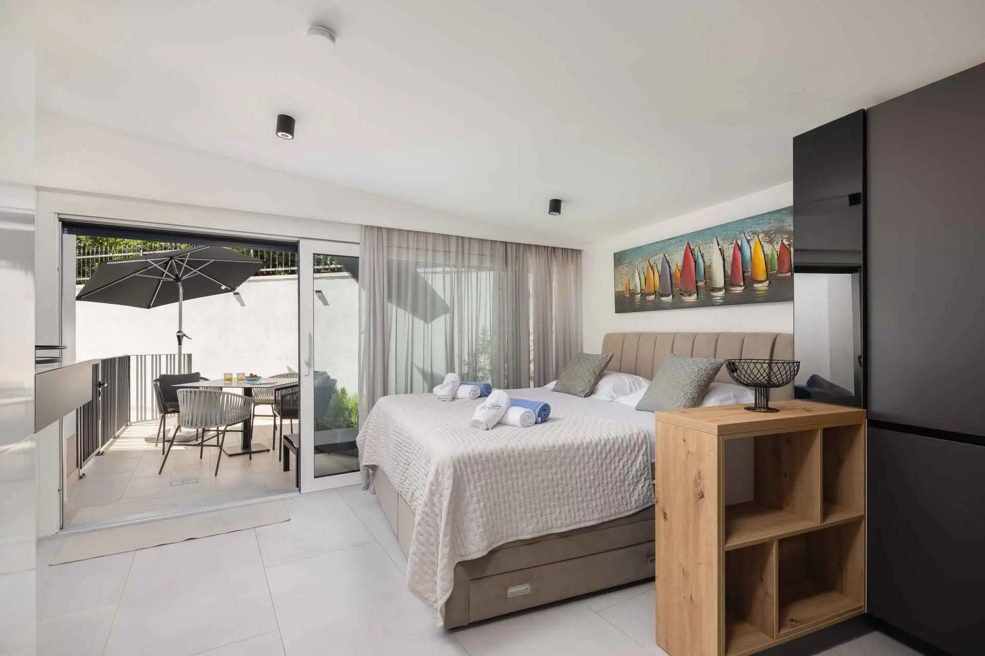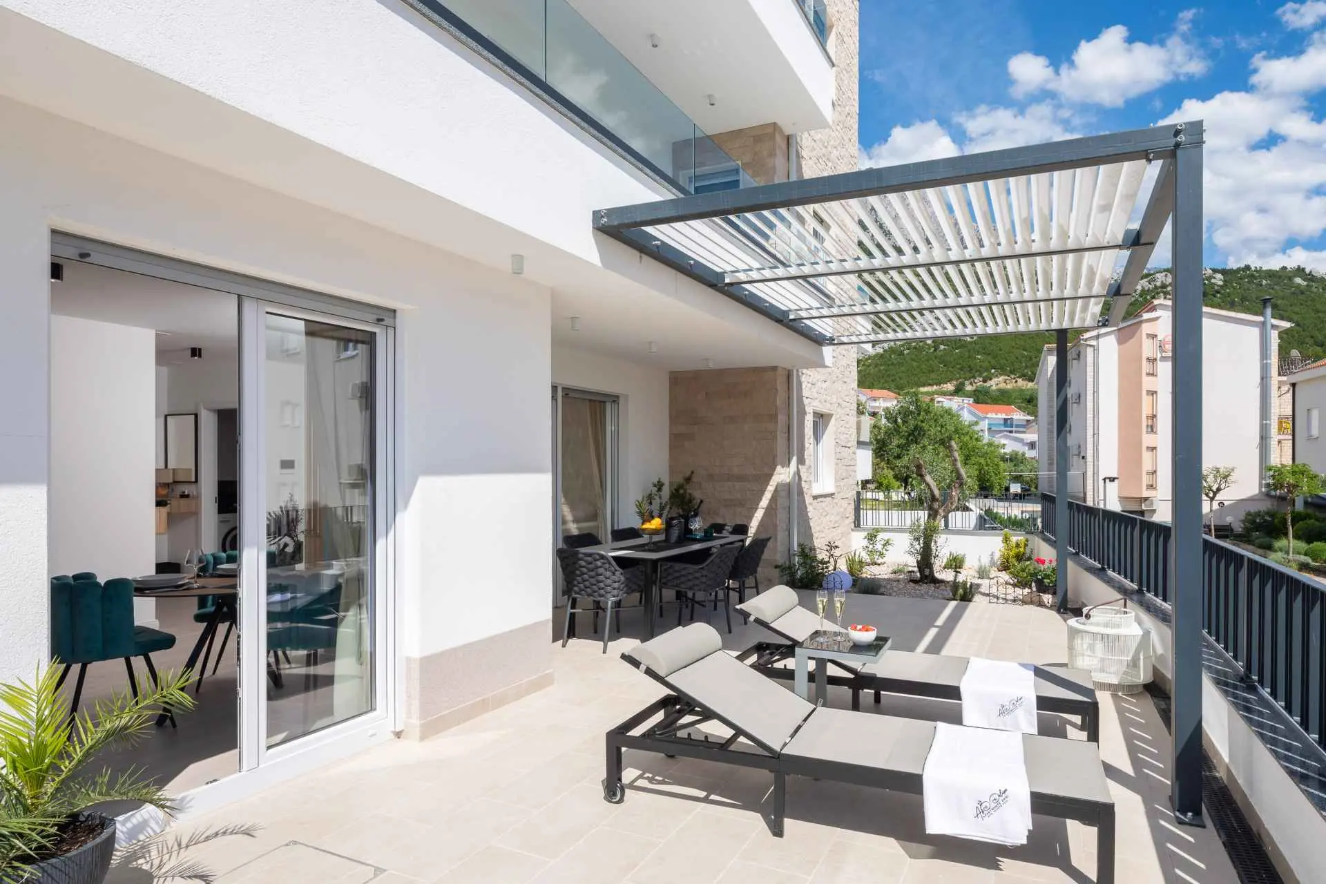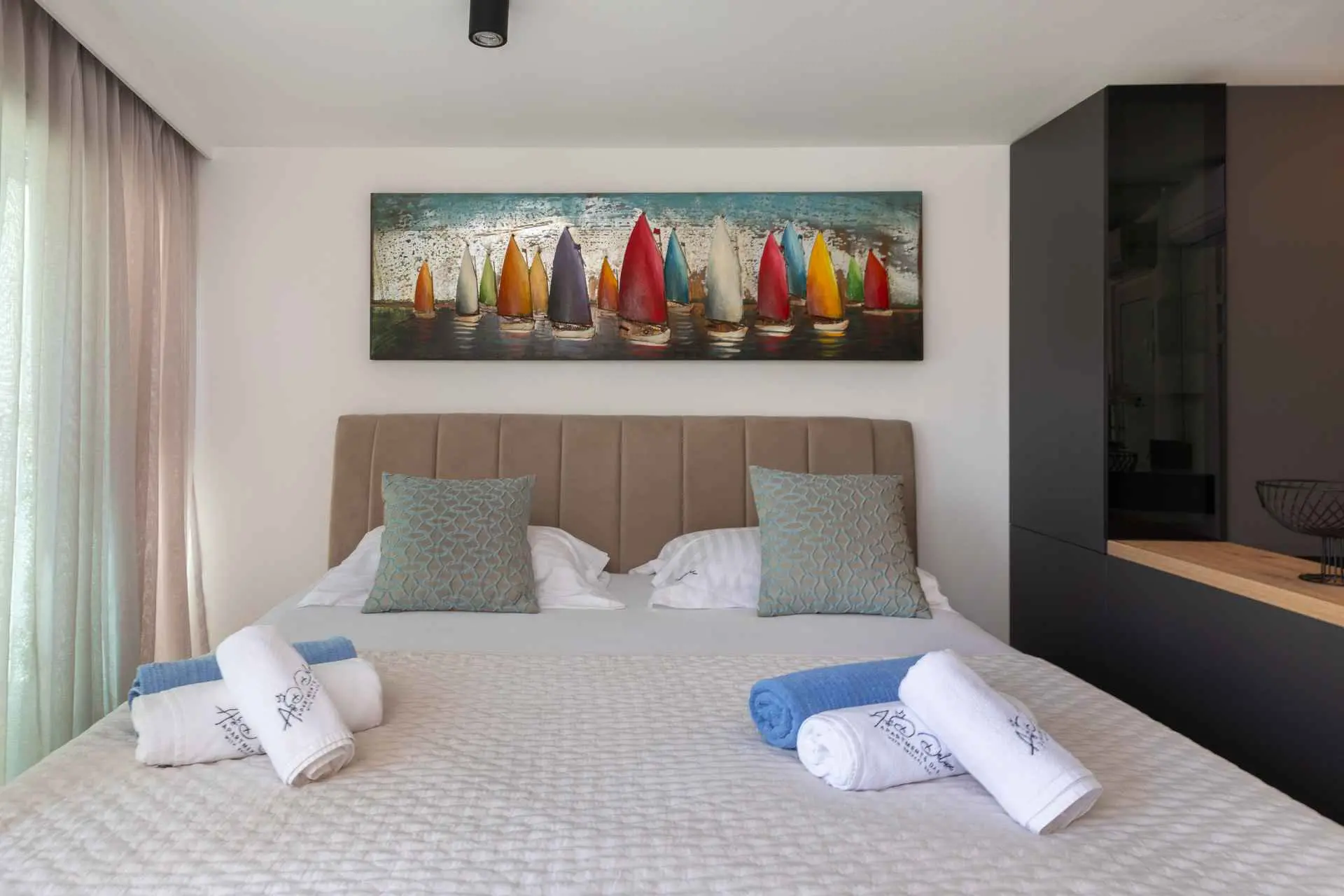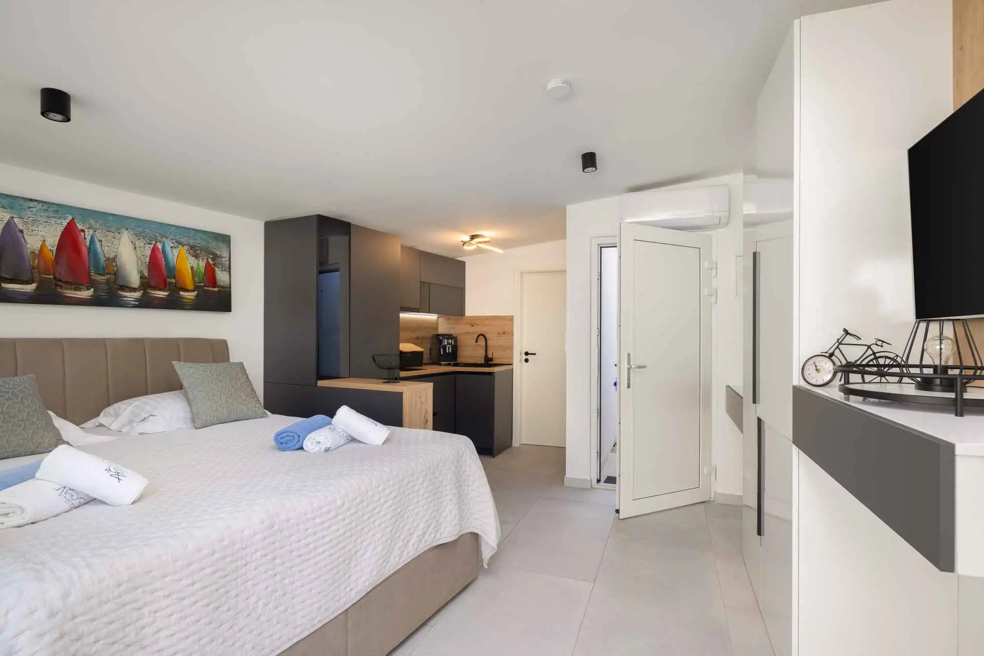 Dobrodošli u A&D Deluxe apartmane. Naš objekt nudi tri elegantna i pomno dizajnirana apartmana za vaš boravak. Uživajte u privatnosti vlastitog balkona ili terase i uživajte u okolnoj ljepoti. Naši apartmani imaju potpuno opremljene kuhinje s aparatom za kavu i perilicom posuđa. Moderne kupaonice s perilicama rublja dodaju dodatnu razinu udobnosti. Osvježite se u bazenu s ležaljkama i suncobranima koji su na raspolaganju našim gostima. Besplatni privatni parking je dostupan ispred objekta. Plaža je udaljena 300 metara. Otkrijte savršen spoj luksuza, udobnosti i pogodnosti u A&D Deluxe Apartments.