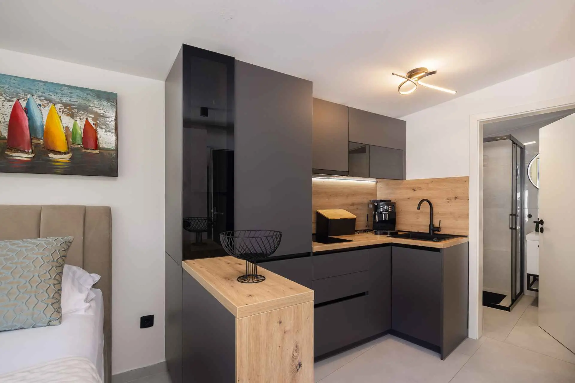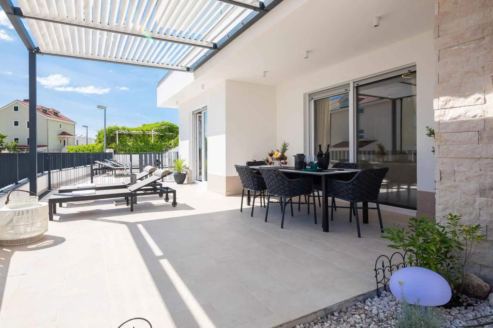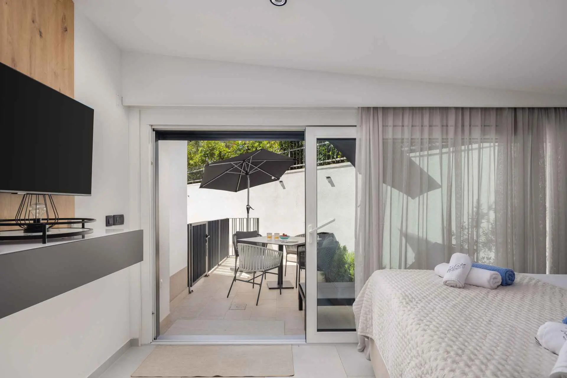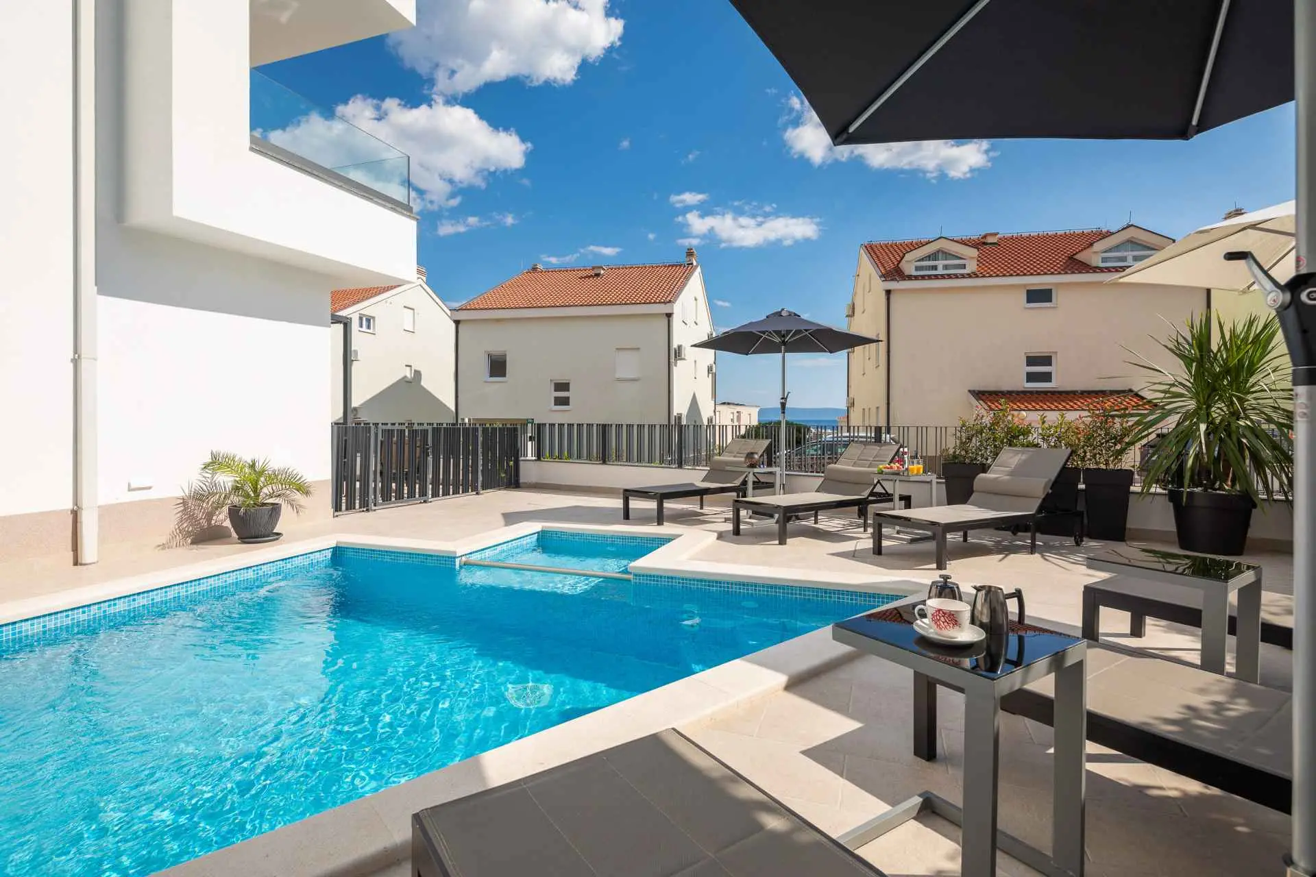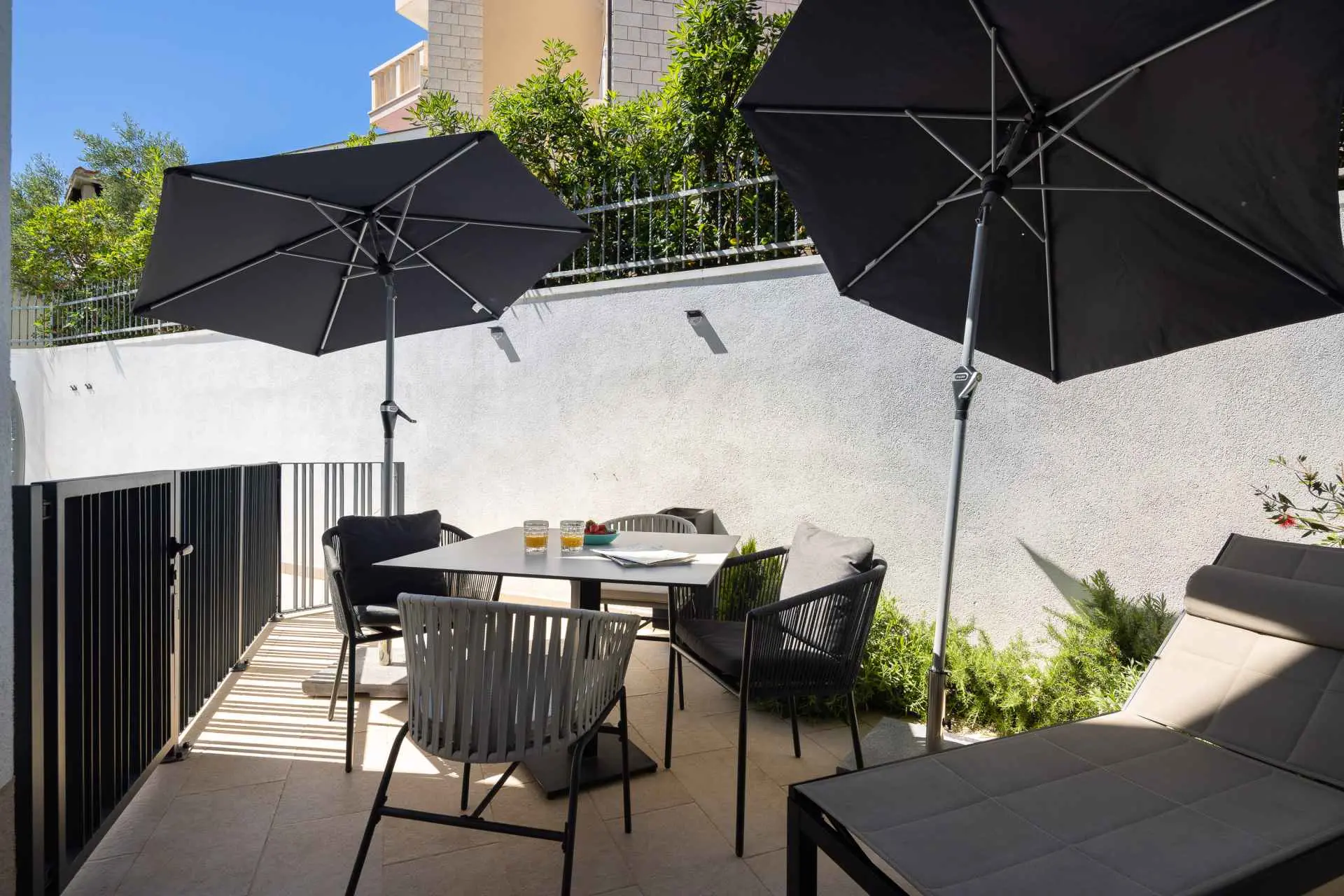 Dobrodošli u A&D Deluxe apartmane. Naš objekt nudi tri elegantna i pomno dizajnirana apartmana za vaš boravak. Uživajte u privatnosti vlastitog balkona ili terase i uživajte u okolnoj ljepoti. Naši apartmani imaju potpuno opremljene kuhinje s aparatom za kavu i perilicom posuđa. Moderne kupaonice s perilicama rublja dodaju dodatnu razinu udobnosti. Osvježite se u bazenu s ležaljkama i suncobranima koji su na raspolaganju našim gostima. Besplatni privatni parking je dostupan ispred objekta. Plaža je udaljena 300 metara. Otkrijte savršen spoj luksuza, udobnosti i pogodnosti u A&D Deluxe Apartments.