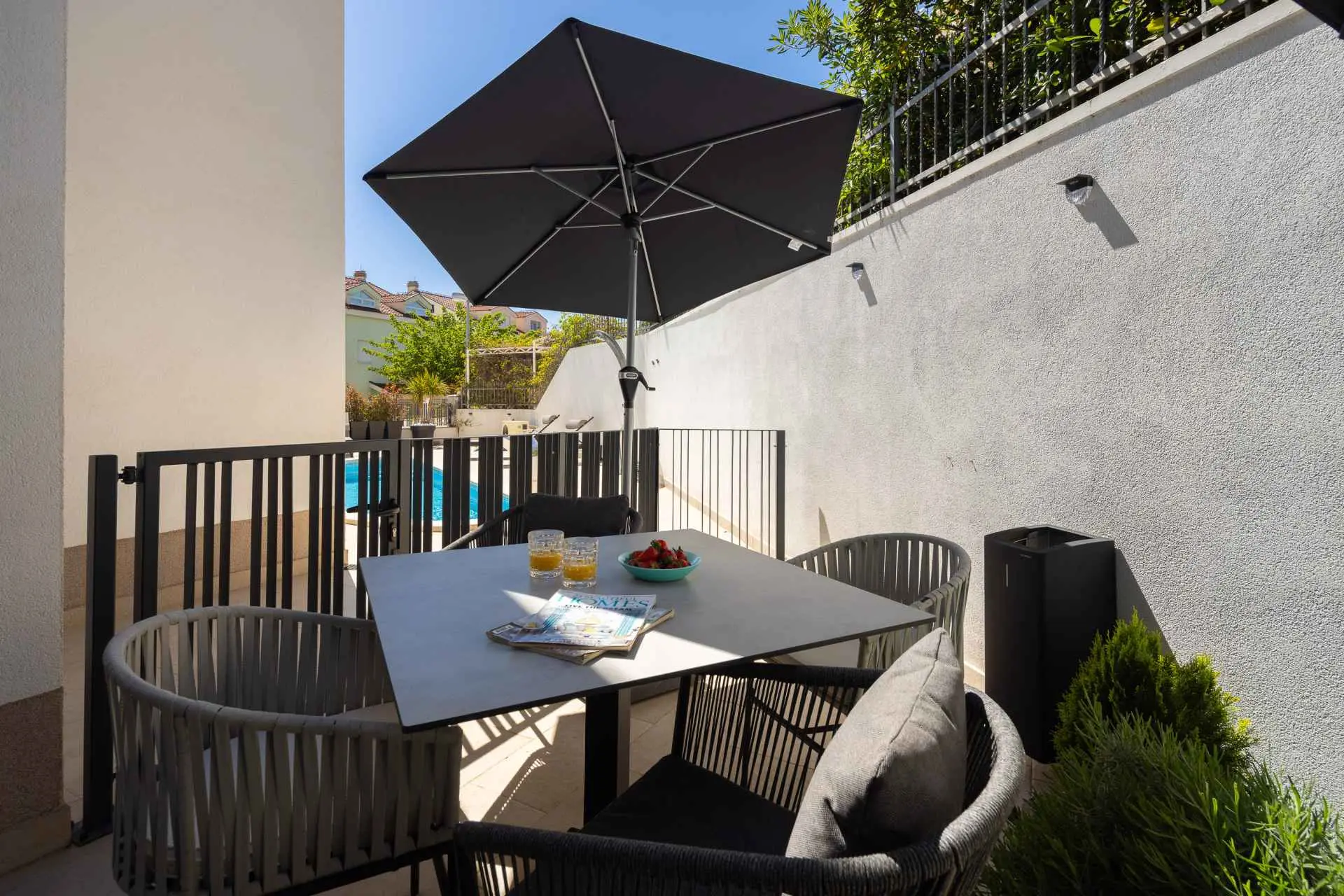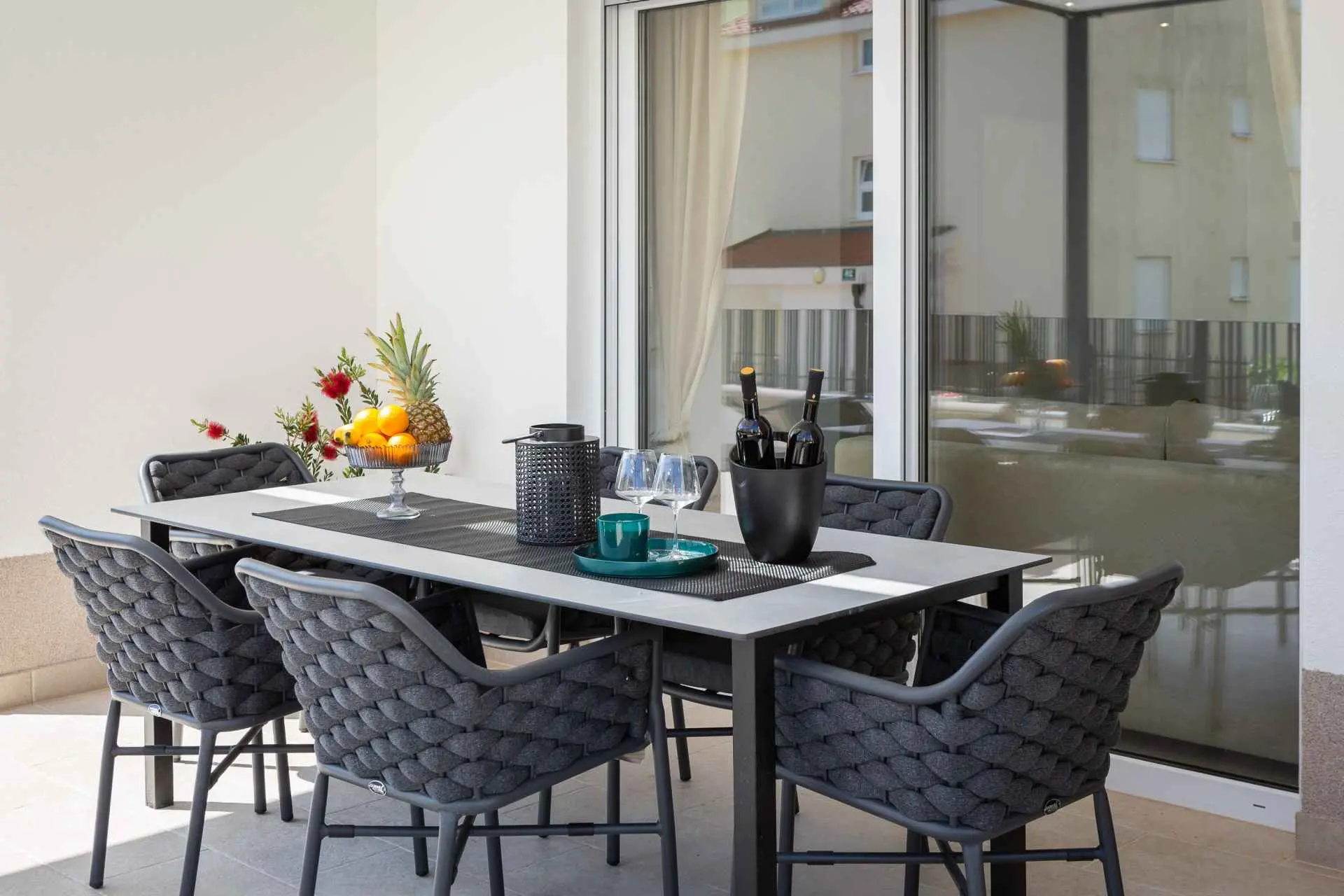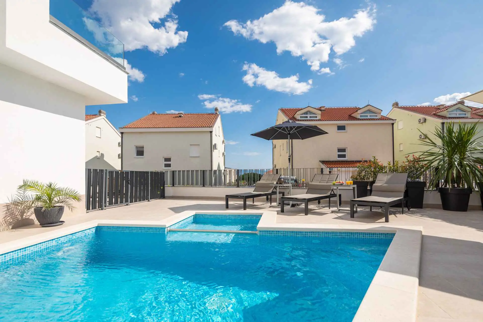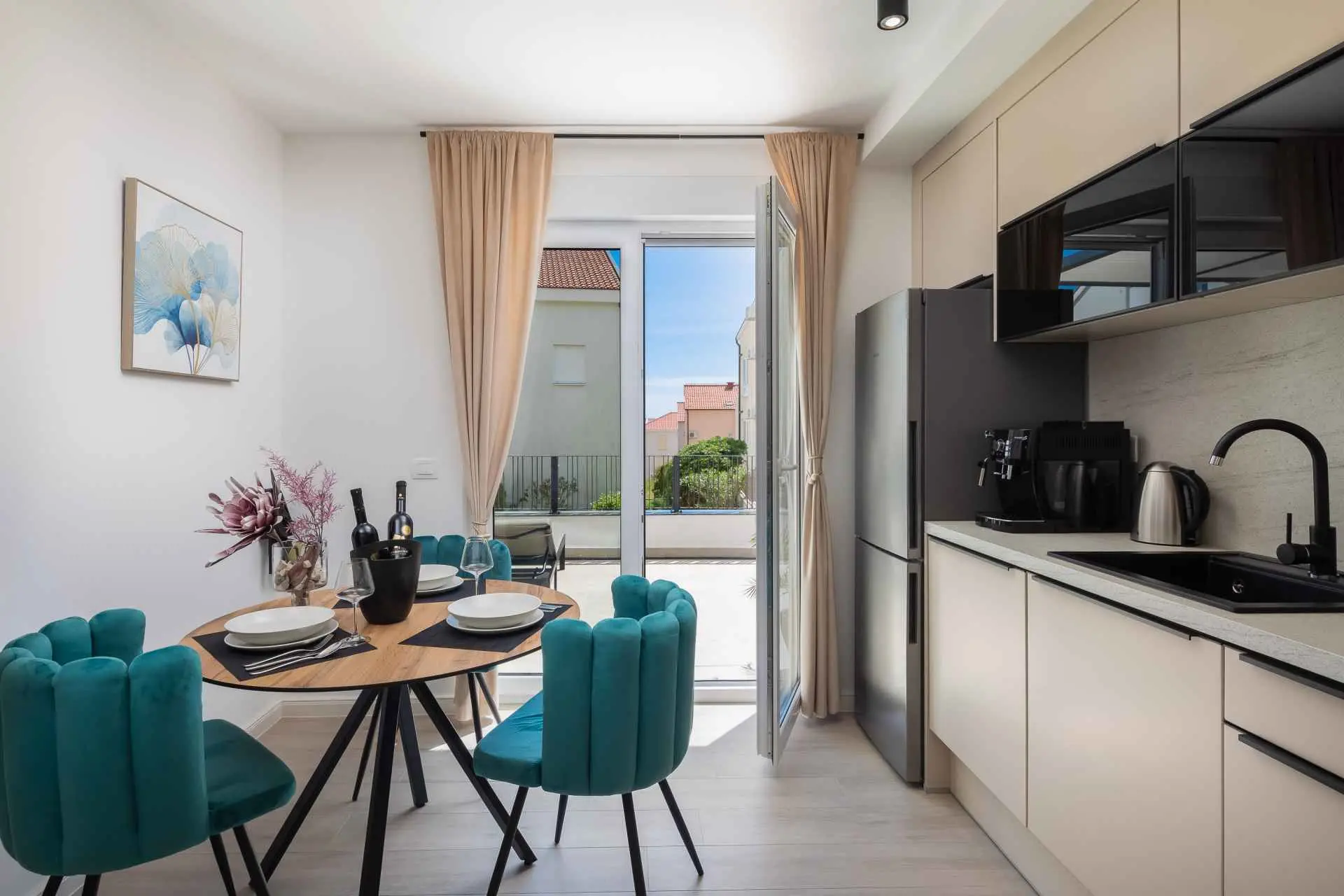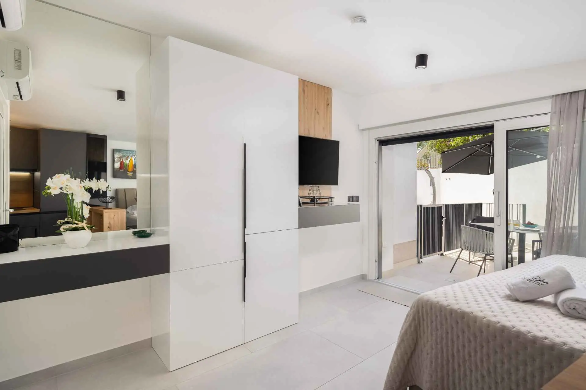 Dobrodošli u A&D Deluxe apartmane. Naš objekt nudi tri elegantna i pomno dizajnirana apartmana za vaš boravak. Uživajte u privatnosti vlastitog balkona ili terase i uživajte u okolnoj ljepoti. Naši apartmani imaju potpuno opremljene kuhinje s aparatom za kavu i perilicom posuđa. Moderne kupaonice s perilicama rublja dodaju dodatnu razinu udobnosti. Osvježite se u bazenu s ležaljkama i suncobranima koji su na raspolaganju našim gostima. Besplatni privatni parking je dostupan ispred objekta. Plaža je udaljena 300 metara. Otkrijte savršen spoj luksuza, udobnosti i pogodnosti u A&D Deluxe Apartments.