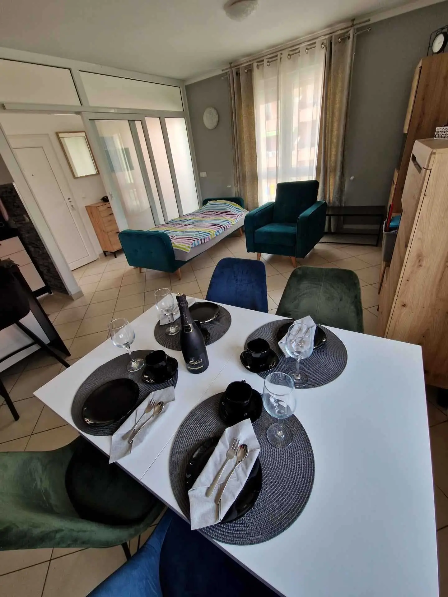 Potpuno opremljen stan sa svim potrebnim kućanskim aparatima, dvije prostrane terase za uživanja u sunčanim danima i dvije spavaće sobe za odmor. Blizina centra grada, Shopping centra te lijepih plaza. U ponudi imamo uz odgovarajuću naknadu i električne bicikle koji se mogu sukladno Vašim željama dostaviti ispred smještaja.