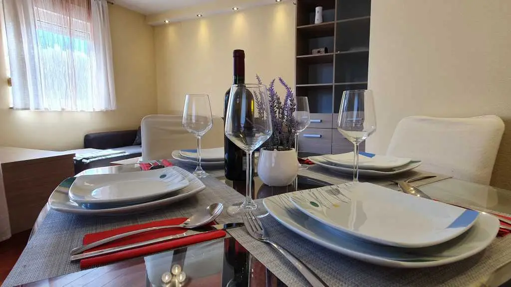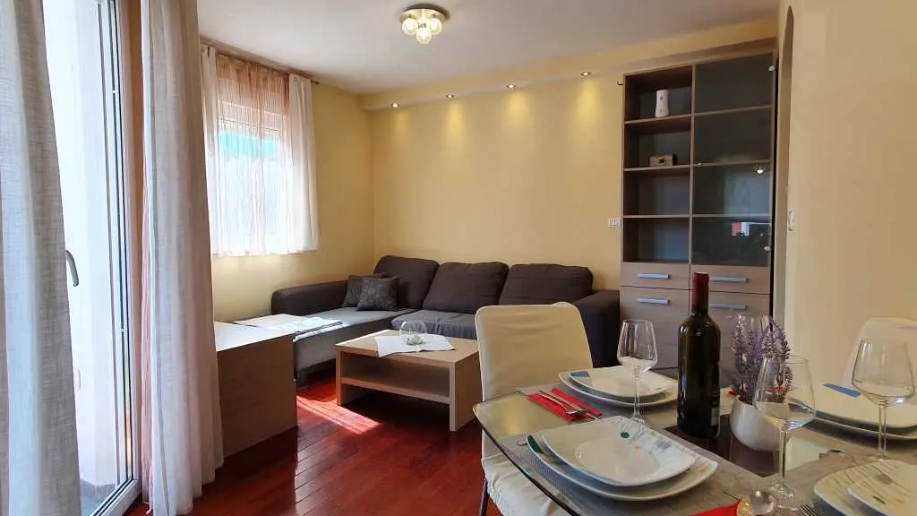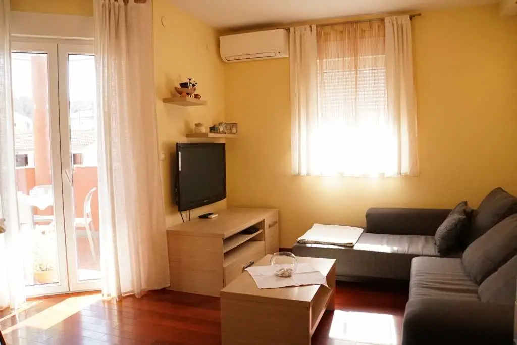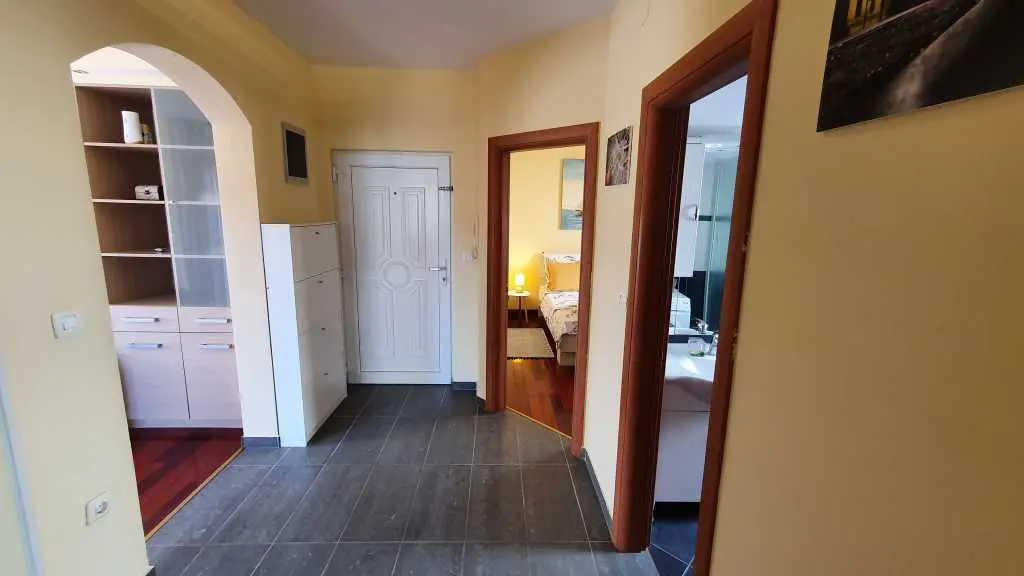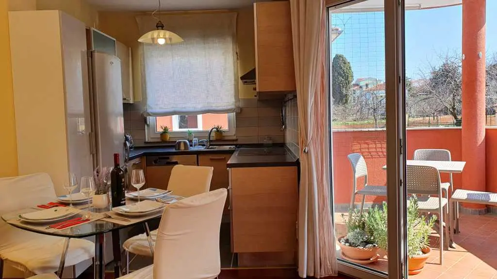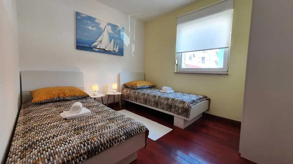 Istria 4 you apartman za četiri osobe se nalazi u Dolinci, mirnom dijelu grada Pule koji omogućuje uživanje i opuštajući odmor. Smješten je u visokom prizemlju malene stambene zgrade, te je zbog toga vrlo pogodan za obitelji sa malom djecom ili osobe starije dobi. Apartman se sastoji od dvije spavaće sobe, kuhinje, dnevnog boravka sa blagovaonicom, kupatila sa tuš kadom (fen i perilica rublja) hodnikom i prostranom terasom. Jedna spavaća sobe uz garderobni ormar ima krevet za dvoje veličine 160x200. U drugoj su sobi, uz garderobni ormar, dva kreveta dimenzije 90x200, a koje po vašoj želji koju navedete u rezervaciji možemo spojiti u jedan krevet od 180x200. Kuhinja je u potpunosti opremljena potrebnim kućanskim aparatima, te sadrži perilicu suđa, štednjak sa pećnicom, hladnjak, kuhalo za filter kavu, toster, kuhalo za vodu, mikrovalnu pećnicu. Gostima je u prostoru apartmana dostupan WI-FI, te se u dnevnom boravku nalazi i TV. Prostor apartmana je u potpunosti klimatiziran. Javni besplatni parking je dostupan oko zgrade, a autobusno stajalište se nalazi na 200 m od apartmana. Dobrodošli su samo mali kućni ljubimci, a koji se plaćaju 7 EUR po danu. U blizini pješice dostupno se nalaze trgovina, mesnica, te poznati pulski restoran koji će vas ugodno iznenaditi ukusnim istarskim specijalitetima po vrlo pristupačnim cijenama. Apartman je smješten na 3 minute automobilom do centra grada u kojem možete istražiti brojne znamenitosti Pule (npr. pulski amfiteatar Arena, Dvojna vrata, Augustov hram,… te velika zelena tržnica, market, banka, pošta, benzinska stanica, ljekarna i ambulanta. Također, na udaljenosti 3 km nalazi se i shopping centar City Mall sa brojnim renomiranim trgovinama, te trgovački lanci Lidl, Plodine, te benzinska crpka. Autobusni i željeznički kolodvor udaljeni su 4 km, Zračna luka Pula 9 km. Najbliža plaža se nalazi 5 minuta automobilom (3,2 km) u Pješčanoj uvali gdje se nalazi lijepa plaža, brojni restorani, najam pedalina, daska za surfanje, aquapark u moru. Park prirode Rt Kamenjak svakako morate posjetiti i uživati na malim skrivenim plažama brojnih uvala, a do njega ćete doci za 10-tak minuta automobilom. Na sličnoj udaljenosti su i ostale turističke zanimljivosti na području Pule i šire okolice (npr. Nacionalni park Brijuni, …). Također, smještaj apartmana vam omogućava dnevne izlete po cijeloj Istri i upoznavanje ostalih gradova Istre, povijesti, kulture, prirodnih ljepota, domaće kuhinje. U apartmanu gosti imaju razne turističke prospekte i karte Pule i Istre, a koje će vam olakšati otkrivanje ljepota i zanimljivosti ovog područja. Živimo u Puli na 10 minuta vožnje automobilom do apartmana, te ćemo uvijek vrlo rado odgovoriti na vaše upite telefonom, e-mailom ili porukom i biti dostupni za sva pitanja i pomoć. Govorimo hrvatski, engleski i talijanski. Dobrodošli! Radujemo se vašem dolasku!
