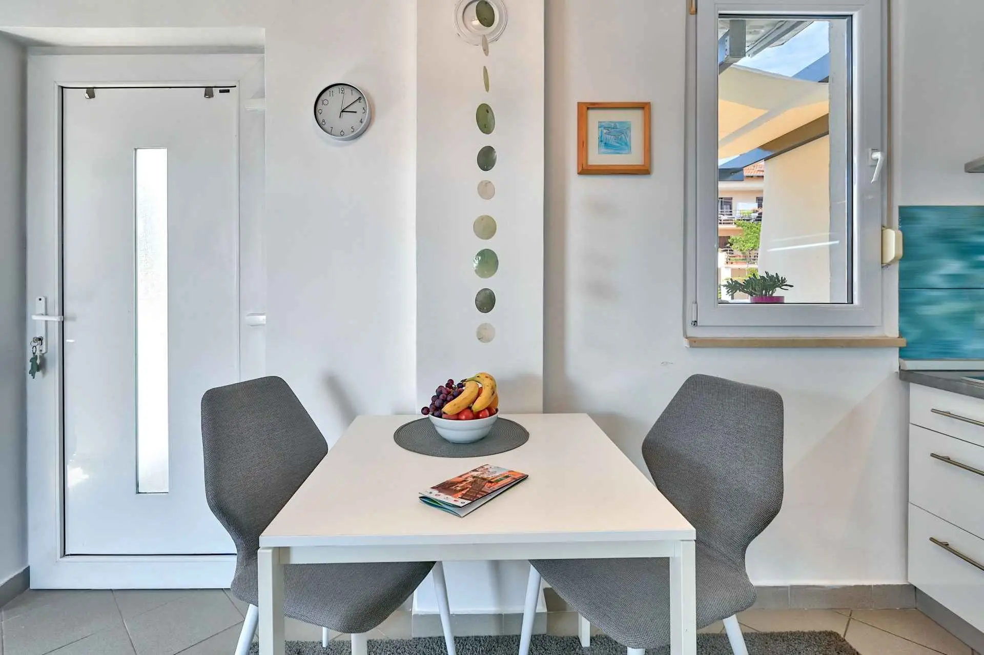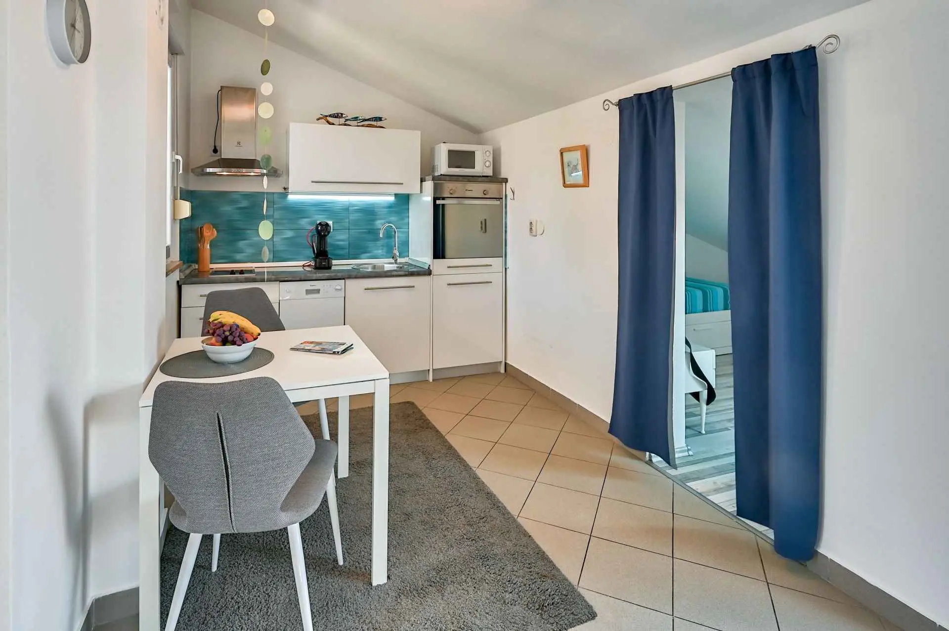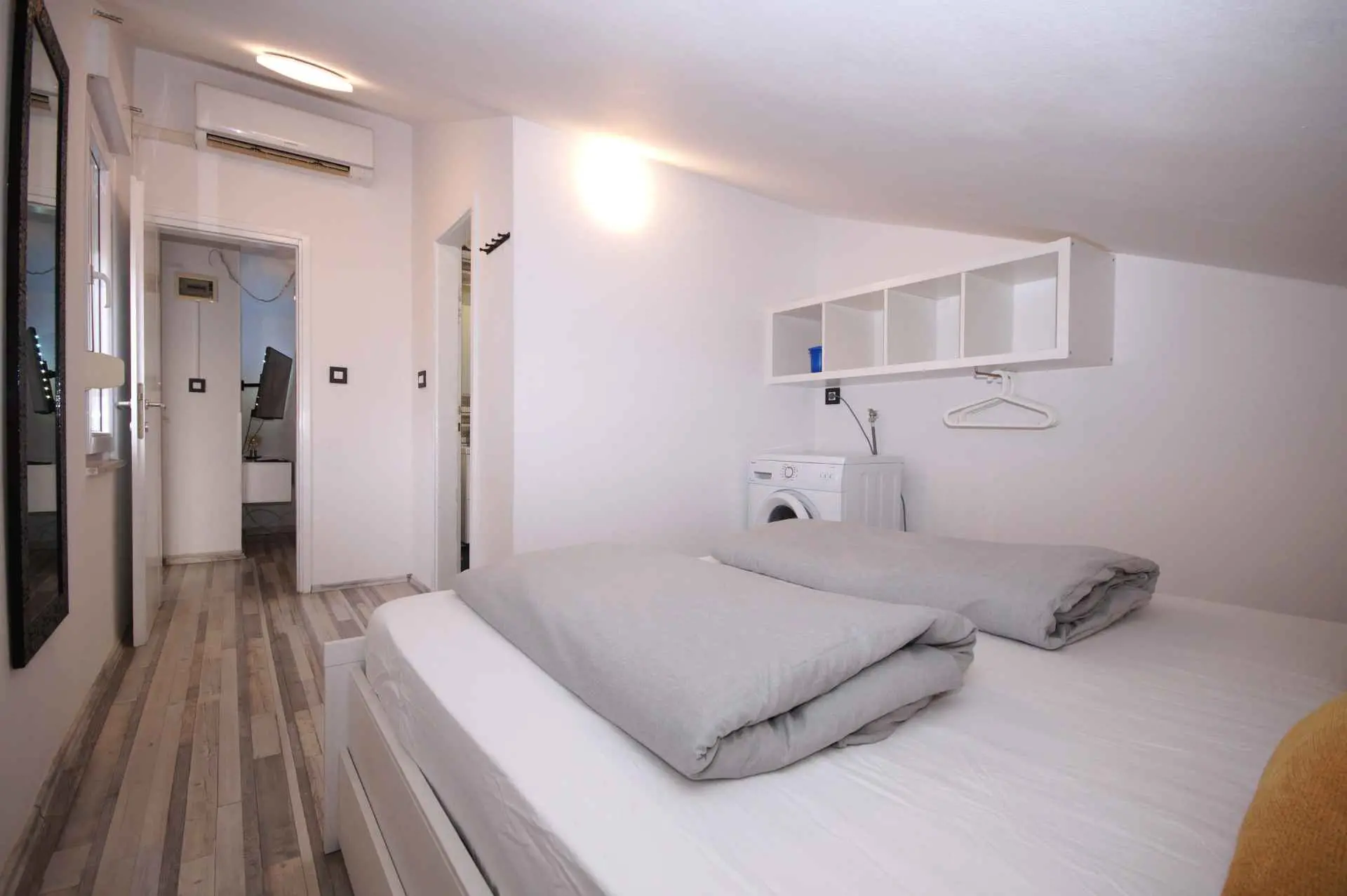 Ovo je naš šarmantni penthouse apartman za do 3 osobe. Apartman je dostupan tijekom cijele godine. Apartman se nalazi u centru mjesta, prekrasne plaže su udaljene oko 500m i samo nekoliko minuta hoda. Apartman je opremljen klima uređajem, TV-om, DVD playerom, flat-rate ADSL Wireless. Potpuno opremljena kuhinja s tosterom i aparatom za sendviče, spavaća soba i kupaonica s tušem. Krovna terasa je jednostavno preslatka ... ukupna površina je oko 50 četvornih metara. U neposrednoj blizini apartmana naći ćete sve što vam je potrebno: oko 200-800 metara udaljena je tržnica, trgovine, banka, mjenjačnica, pošta, ljekarna, autobusni kolodvor, a bolnica je oko 900 metara od apartmana. Dječji krevetić dostupan..