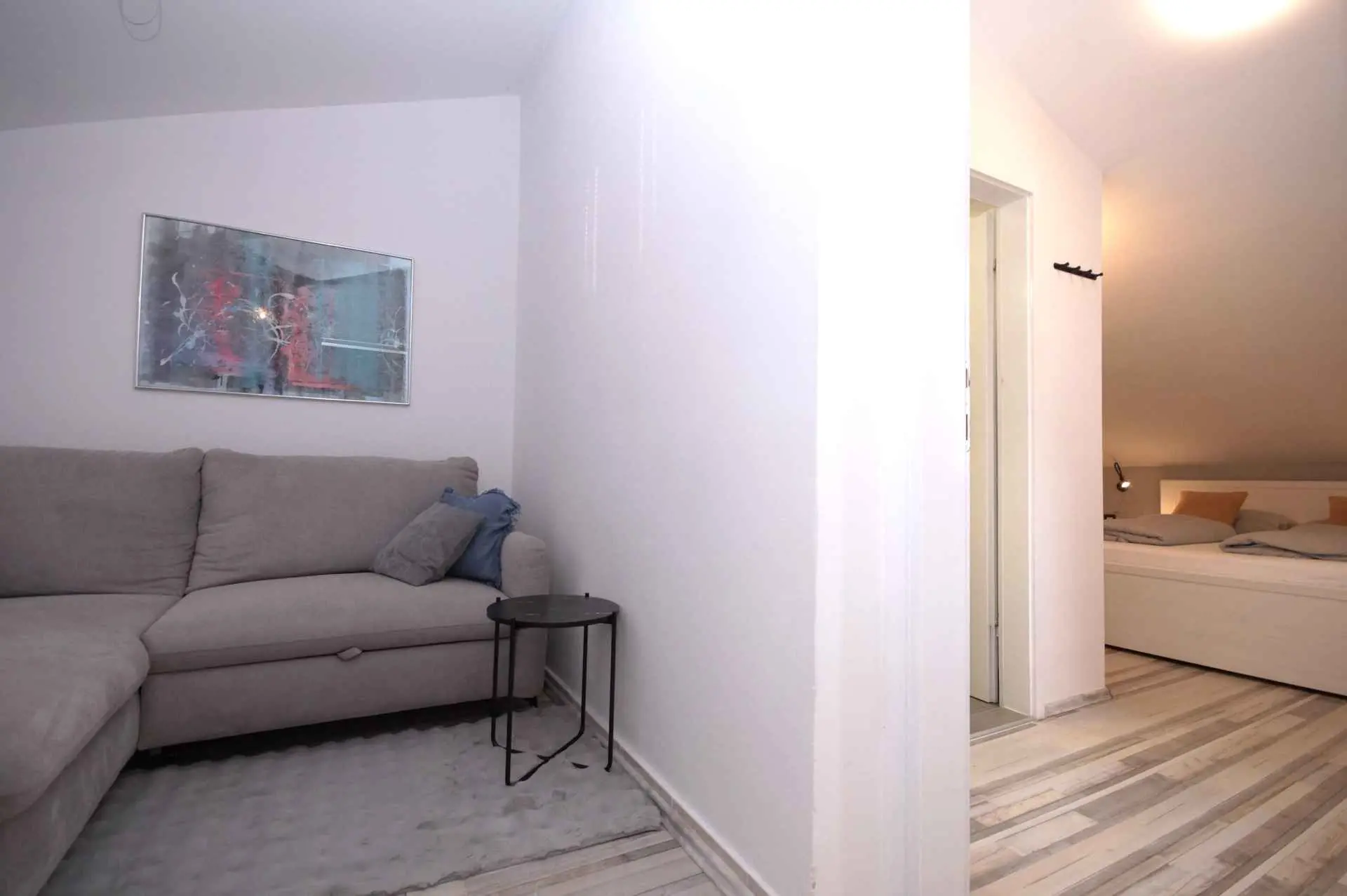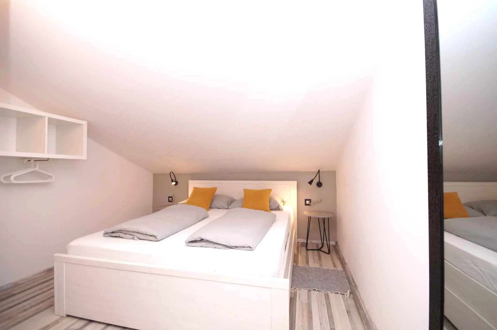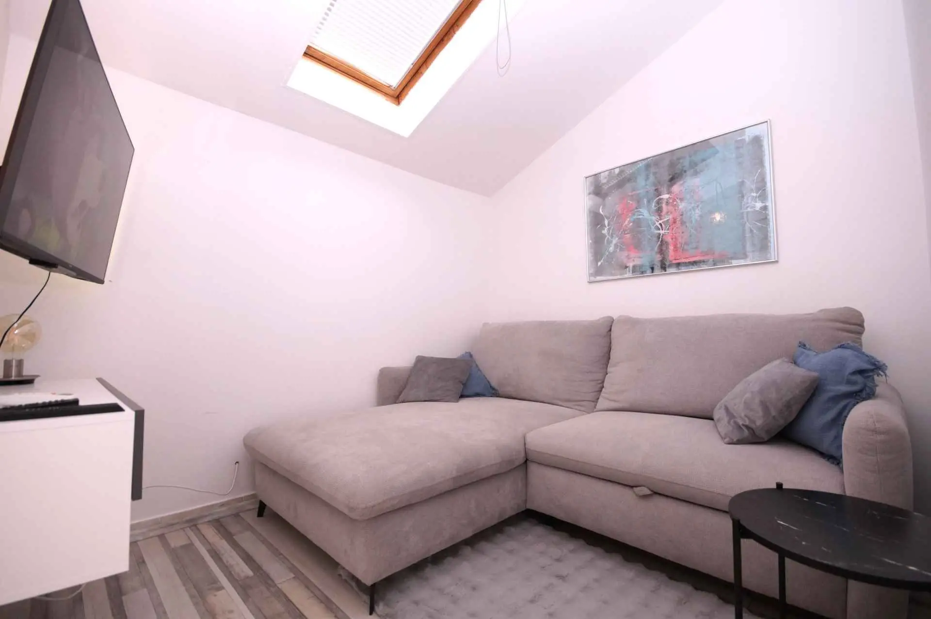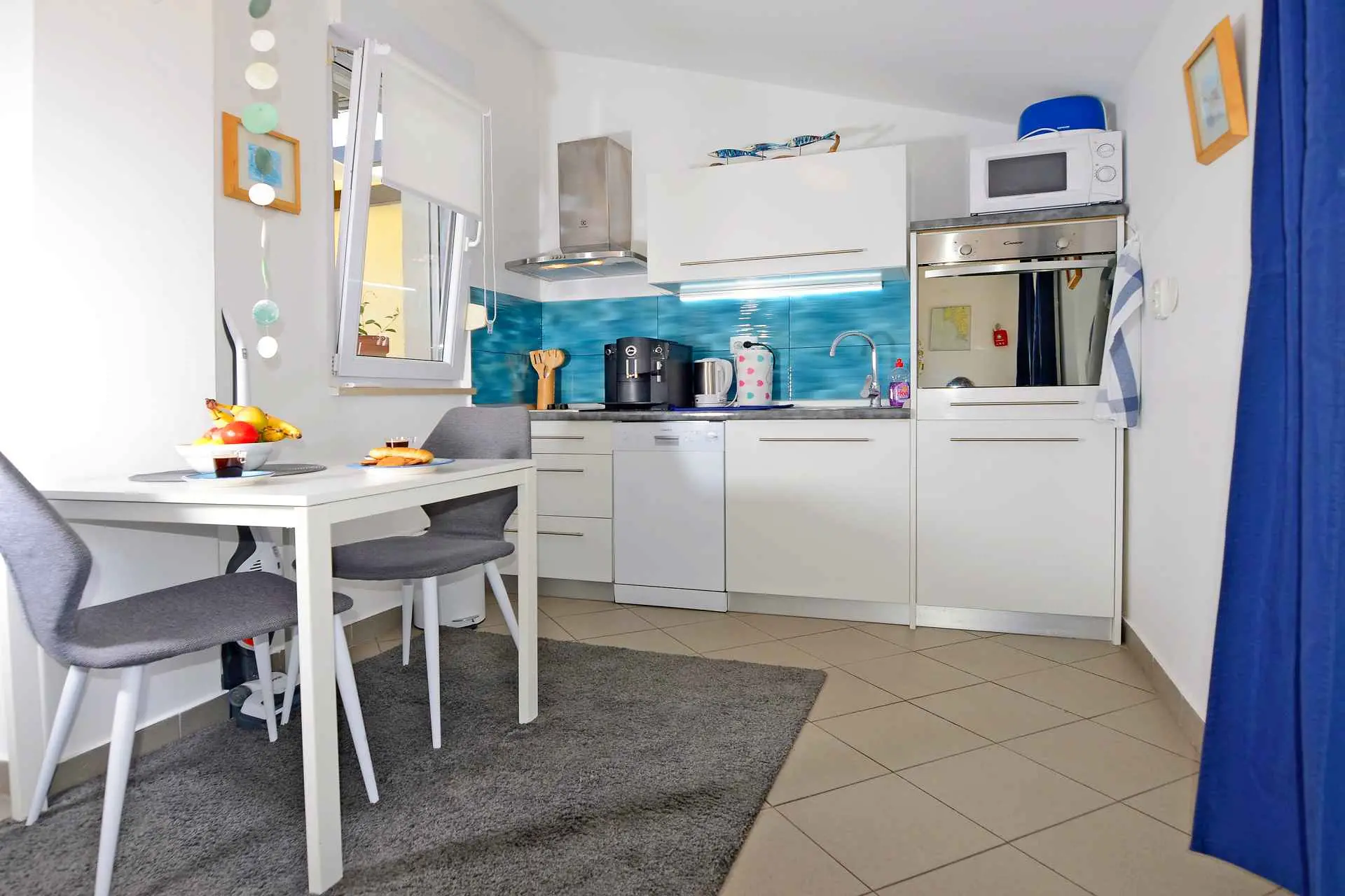 Ovo je naš šarmantni penthouse apartman za do 3 osobe. Apartman je dostupan tijekom cijele godine. Apartman se nalazi u centru mjesta, prekrasne plaže su udaljene oko 500m i samo nekoliko minuta hoda. Apartman je opremljen klima uređajem, TV-om, DVD playerom, flat-rate ADSL Wireless. Potpuno opremljena kuhinja s tosterom i aparatom za sendviče, spavaća soba i kupaonica s tušem. Krovna terasa je jednostavno preslatka ... ukupna površina je oko 50 četvornih metara. U neposrednoj blizini apartmana naći ćete sve što vam je potrebno: oko 200-800 metara udaljena je tržnica, trgovine, banka, mjenjačnica, pošta, ljekarna, autobusni kolodvor, a bolnica je oko 900 metara od apartmana. Dječji krevetić dostupan..