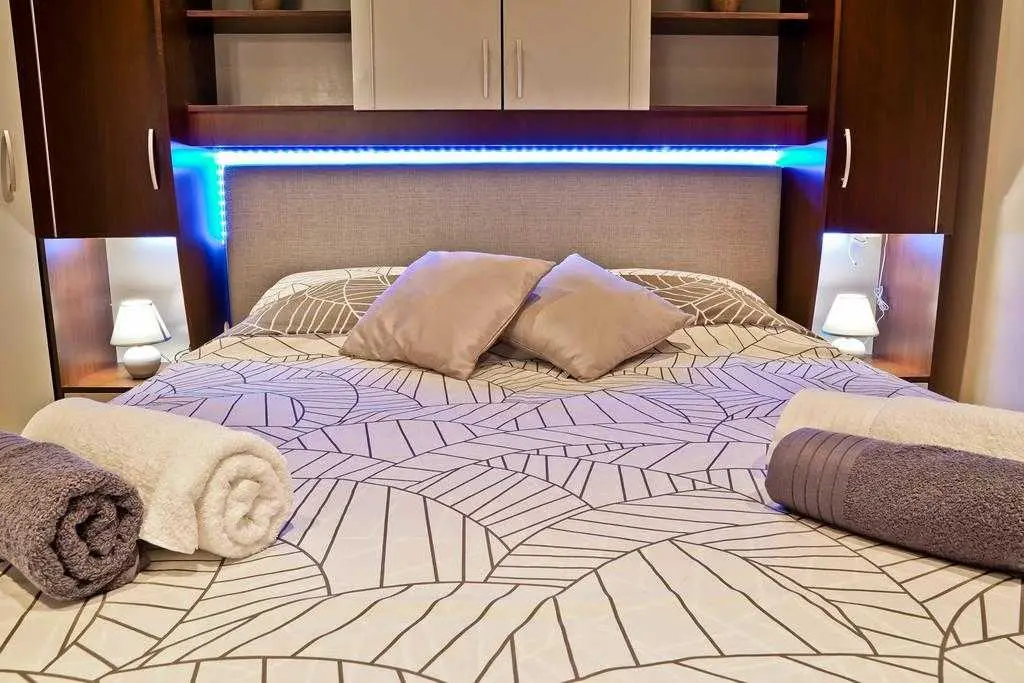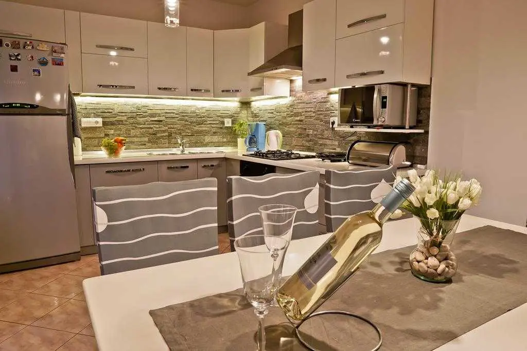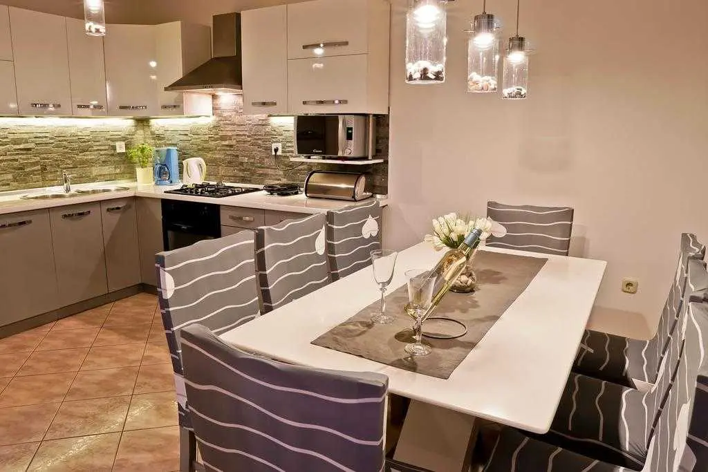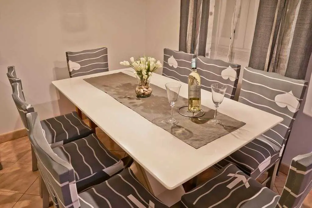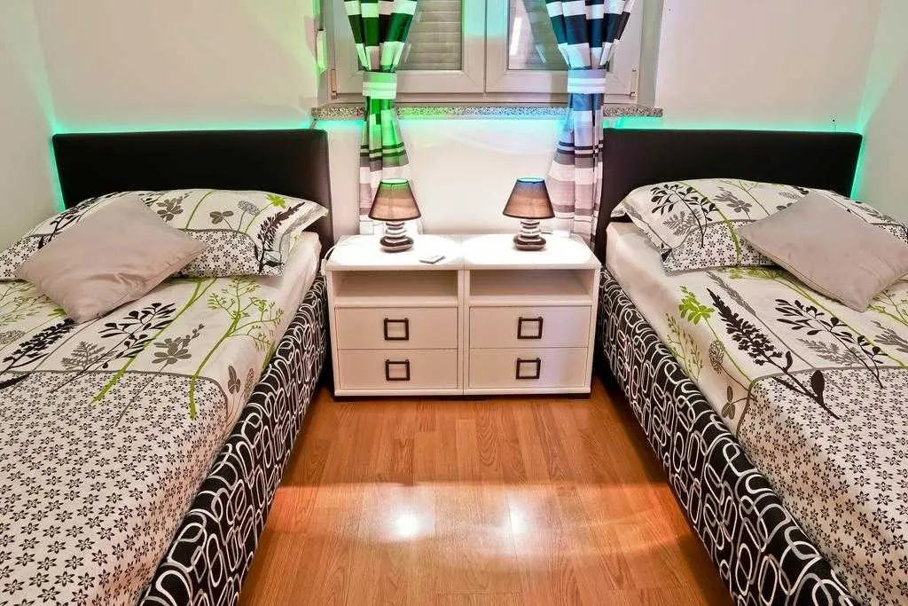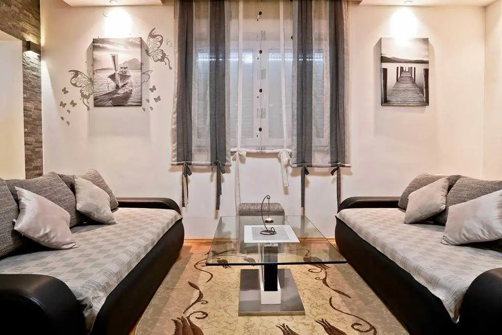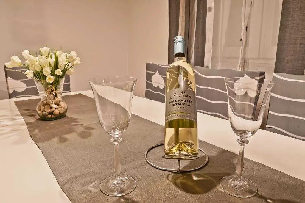 Apartman se nalazi u predgrađu Pule, u prizemlju obiteljske kuće na tihoj i mirnoj lokaciji. Obogaćen je dodatnim sadržajima u vanjskom prostoru- besplatan, ograđen parking na posjedu, dječje igralište s ljuljačkama i trampolinom, prostor za sjedenje u hladovini, zelenilo i moderno uređena okućnica, konoba s roštiljem i drvenim klupama za sjedenje i objedovanje. Unutrašnjost apartmana je moderno i funkcionalno uređena. Sastoji se od tri sobe, dva kupatila, hodnika ,dnevnog boravka, kuhinje, blagavaone i terase. Posteljina i ručnici uključeni su u cijenu. Na zahtjev možete dobiti dječji krevetić. Centar grada (gdje možete pogledati znamenitosti kao što su Zlatna vrata, Augustov hram, Arena..) kao i prve plaže udaljeni su samo 4 km od apartmana. Trgovina s namirnicama nalazi se u blizini (200m). Pula citty mall shoping centar samo 2 km od apartmana. Paintball i Adrenalin park udaljeni su 3 km.