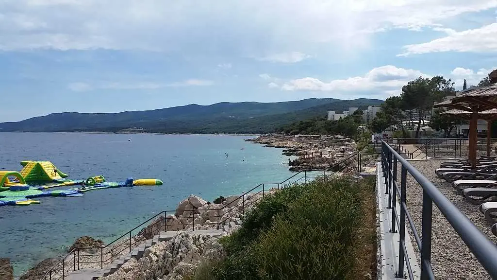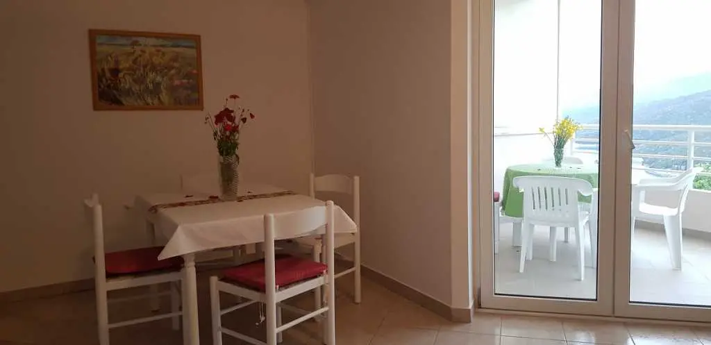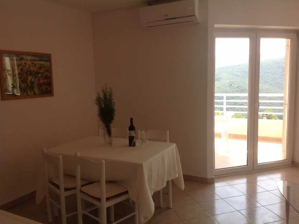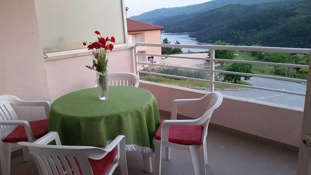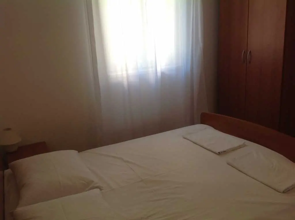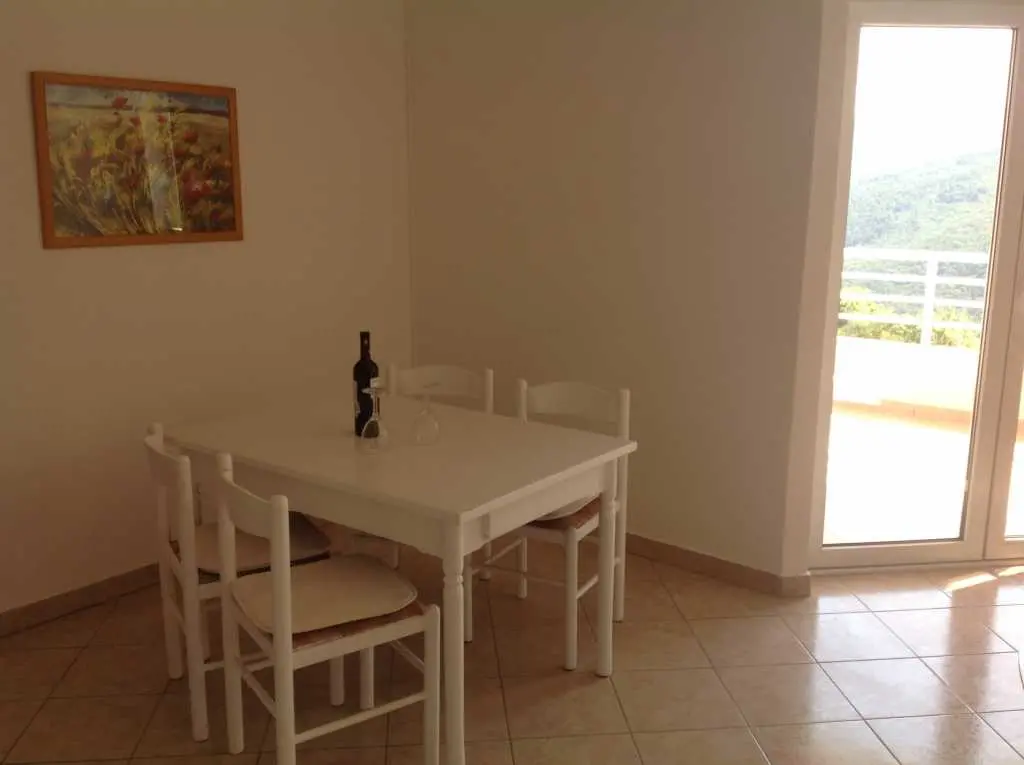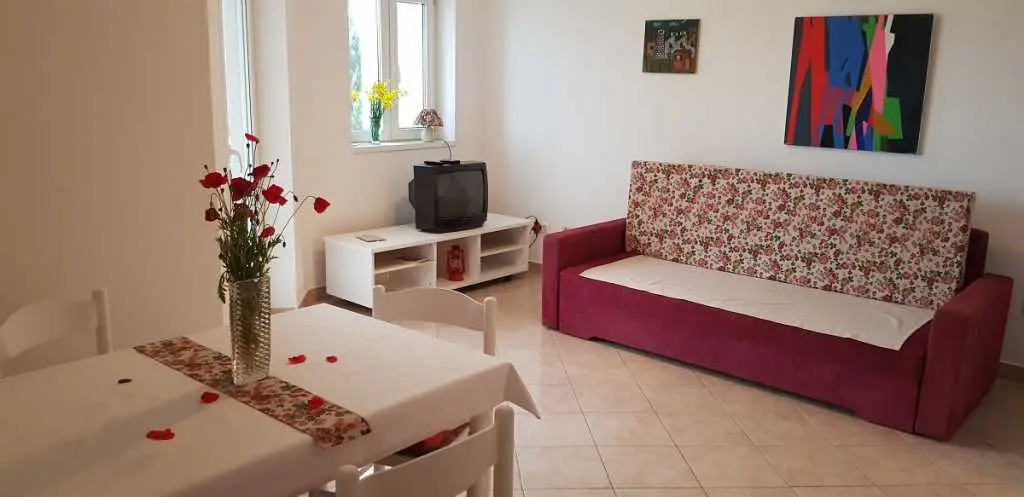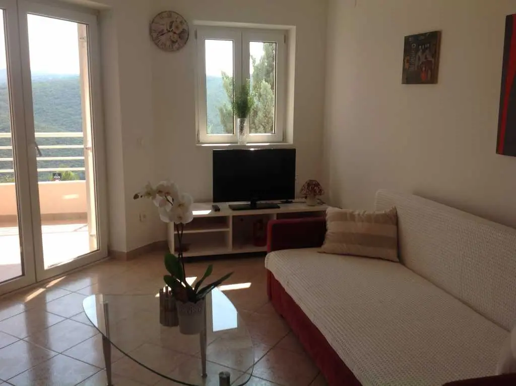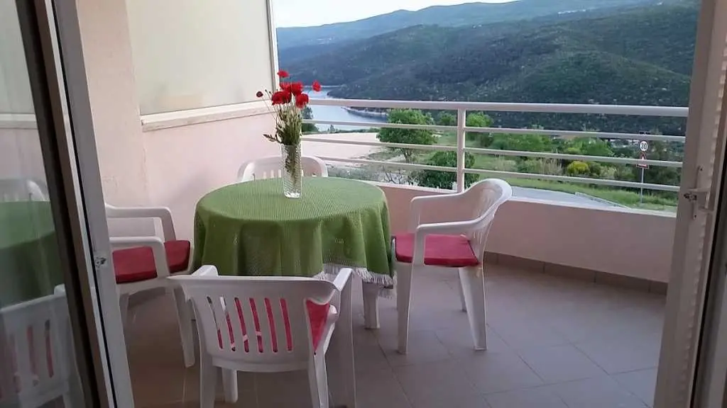 Apartman se nalazi na cc. 800 metara od mora. Put do mora je kroz borovu šumu i opuštajući i relaksirajući uz mio mirise borovine i lavande da je za poželjeti ići pješke. Apartman ima dvije spavaće sobe s bračnim krevetima, predsoblje, kupaonu, boravak s kuhinjom te terasom s pogledom na more i borovu šumu. Orijentacija apartmana je sjever-jug te je ugodno u ljetnim mjesecima. U zimskim mjesecima je topao i izoliran s drugim stanovima. Opremljen je klimom, kuhanje je na plin i struju. Ima jedno do dva parkirna mjesta. Pogodan za četiri osobe a po potrebi može i šest osoba pri čemu je razvlači sjedeća garnitura u boravku. S terase je divan pogled na more i na otok Cres i Lošinj. Cijena apartmana ovisi o tome da li trebate u vrijeme pred sezone, sezone ili u pod sezoni. Plaže su prekrasne uz biserno čisto more i opremljenim plažama uz oblutke i ležaljke, slastičarne, bazene uz more, te zanimljivosti za djecu i druženje uz niz kulturnih zbivanja za djecu i odrasle.