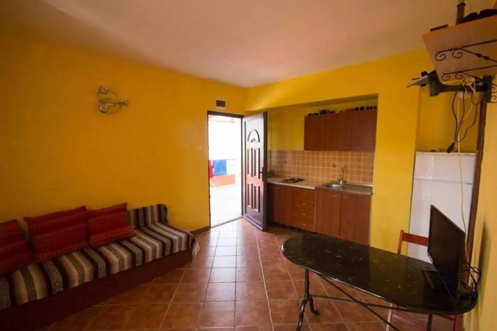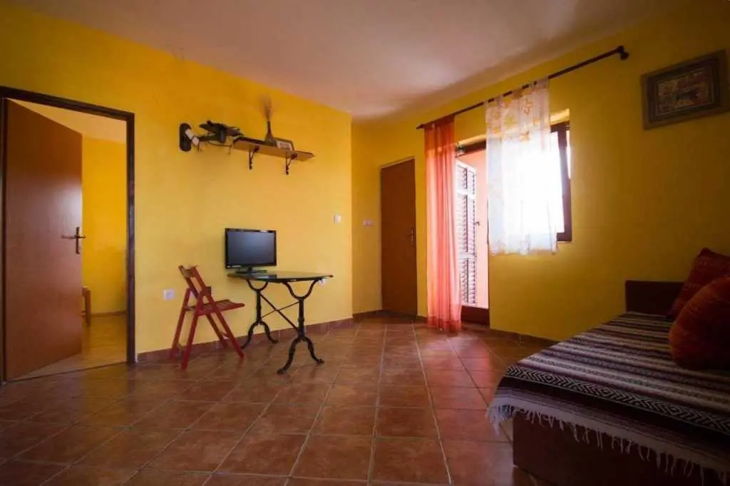 Kuća se nalazi u prvom redu do mora i ima perfektan pogled na plažu i zadivljujuci pogled na planinu Velebit koja se nalazi s druge strane morskog kanala. Kuća je novosagrađena sa svim potrebnim sadržajima za moderno i udobno stanovanje. Ljubazni domaćini ce se potruditi da se osjećate kao u svojoj kući. Apartman jedan i dva sastoje se od spavaće sobe s bračnim krevetom, dnevnim boravkom sa kaućem na razvlačenje, dovoljno velikim za dvije odrasle osobe (180x200), potpuno opremljenom kuhinjom te kupatila balkona i terase. Apartman 3 sastoji se od spavaće sobe s bračnim krevetom i dnevnog boravka s krevetom na razvlacenje, kuhinje, kupatila i terase. Inace Razanac je pitoreskno turisticko - ribarsko mjesto. S puno prekrasnih plaza i starom borovom sumom. U samom mjestu mozete nabaviti bomace voce i povrce, vino i tek ulovljenu ribu. U samom mjestu je stara utvrda iz turskog doba, crkva i nekoliko cafe barova i taverni. Takoder posta, apoteka, ambulanta, internet marketi itd.