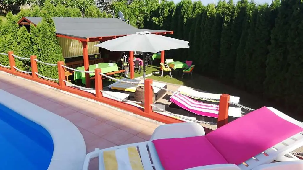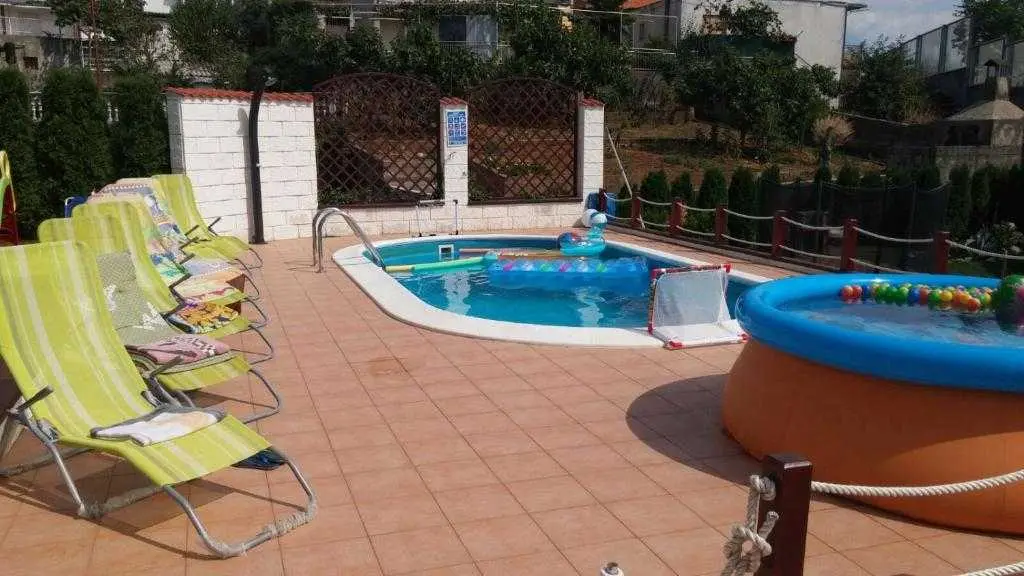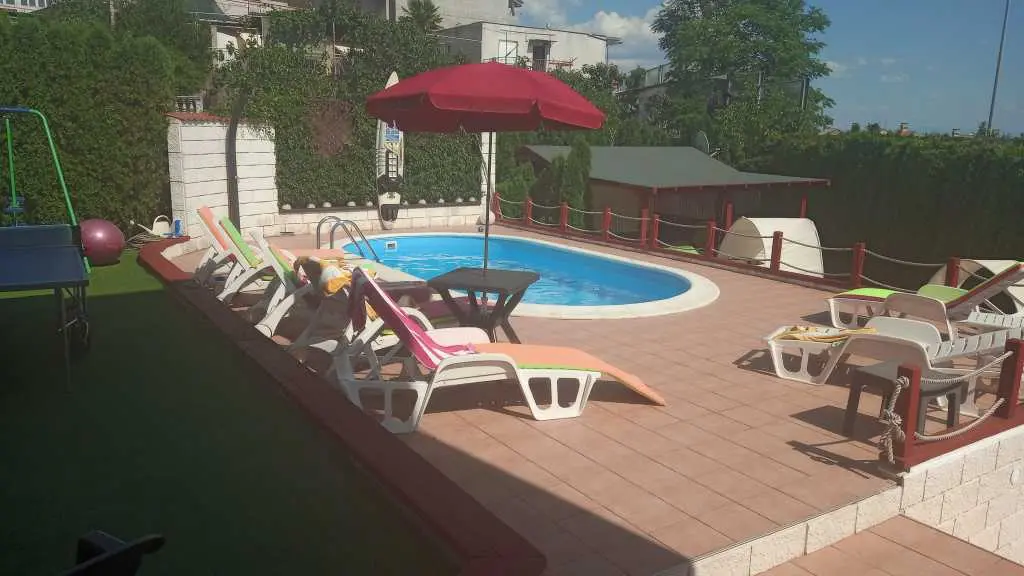 Privatna kuća sa 4 opremljena apartmana, okućnicomi bazenom. Nalazi se u blizini autobusne stanice, plaže, restorana i svih drugih sadržaja potrebnih za bezbrižni odmor. Dobrodošli!